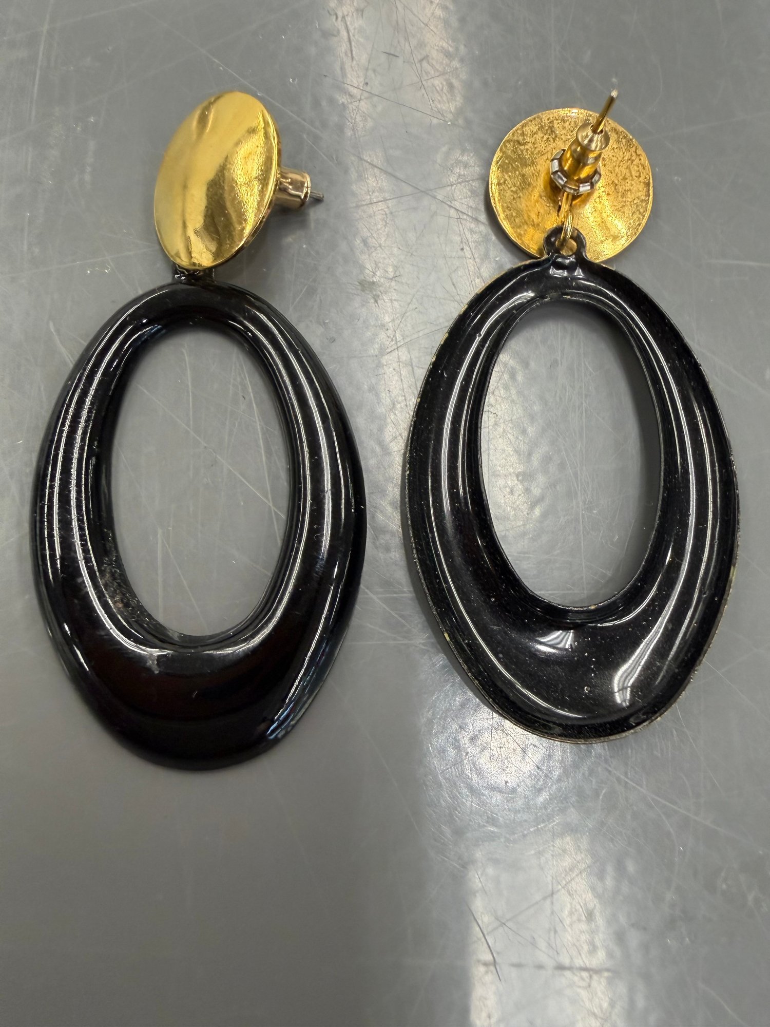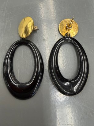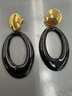 1980s Gold Tone And Black Enamel Statement Earrings