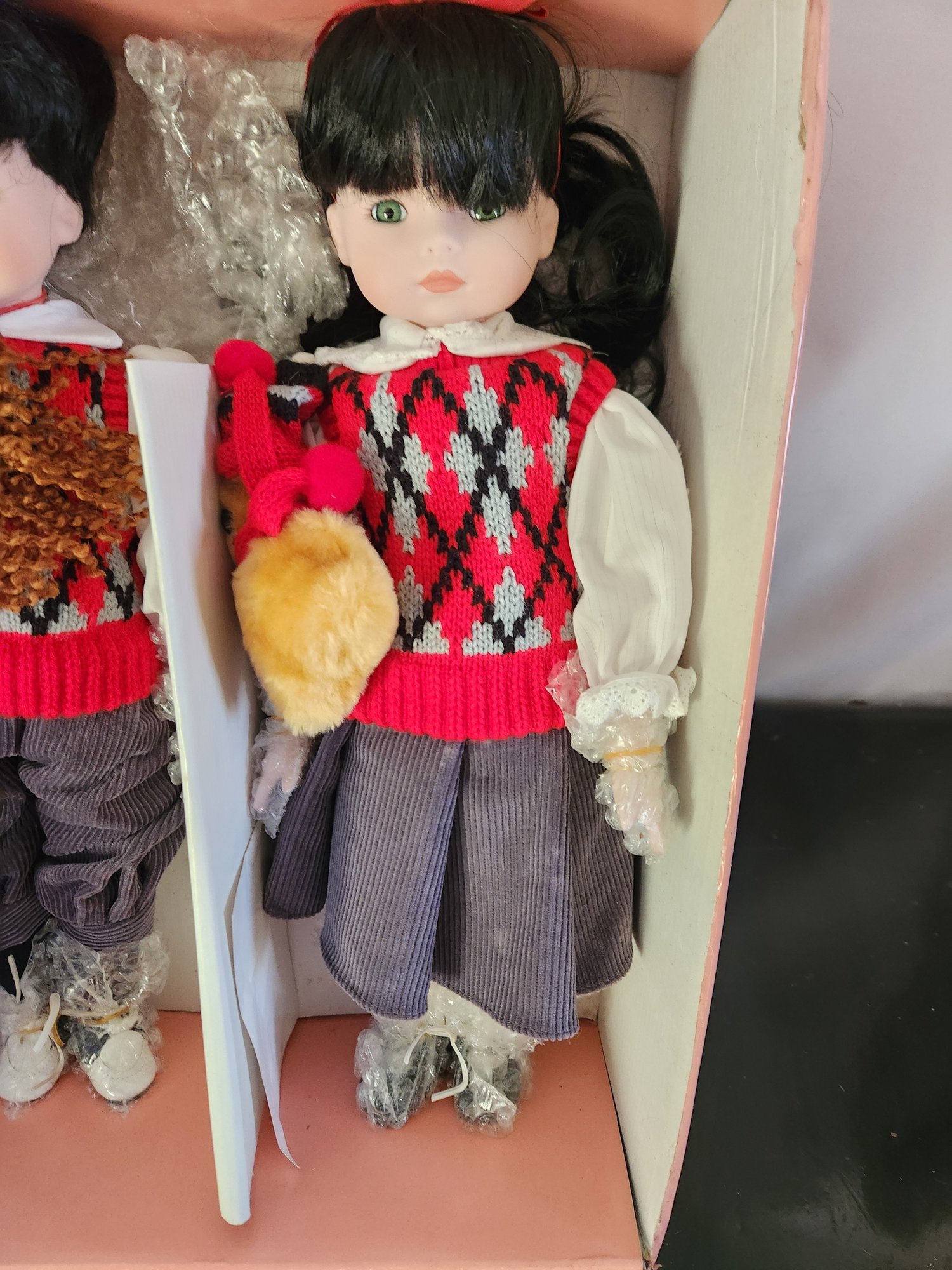1989 hand crafted porcelain dolls in original box. See photos for better description
