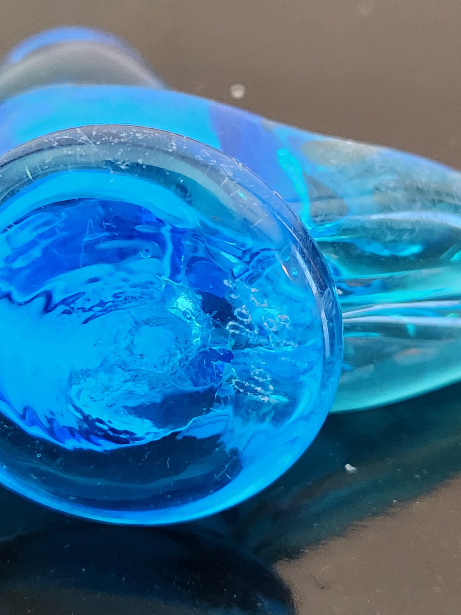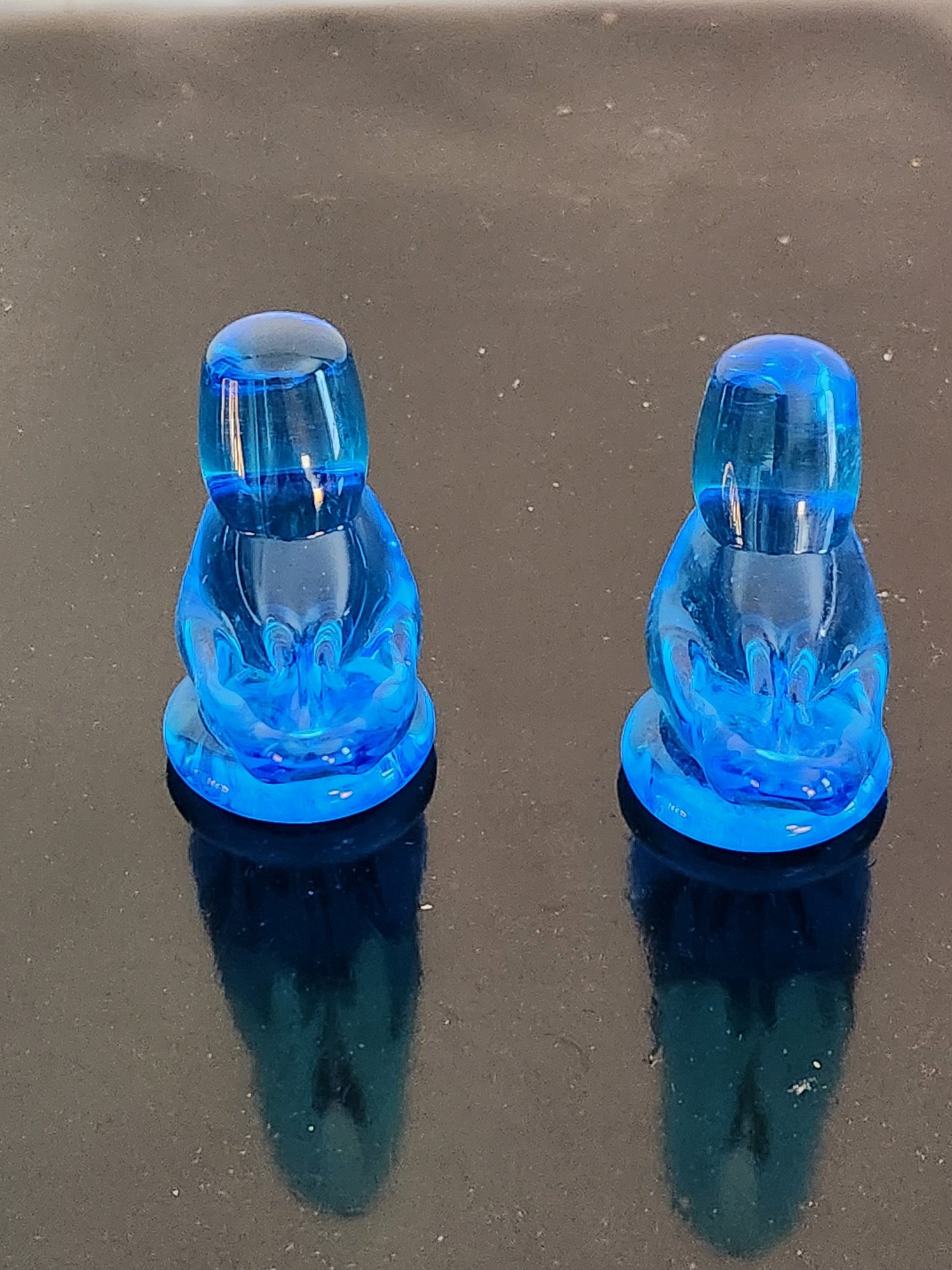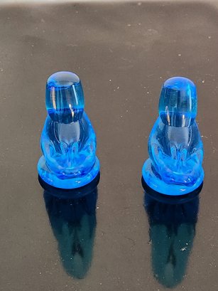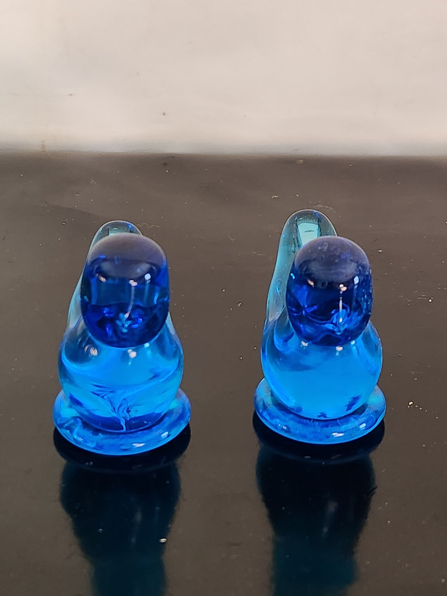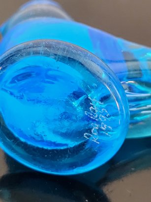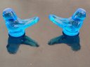 Hand blown blue glass birds signed by artist