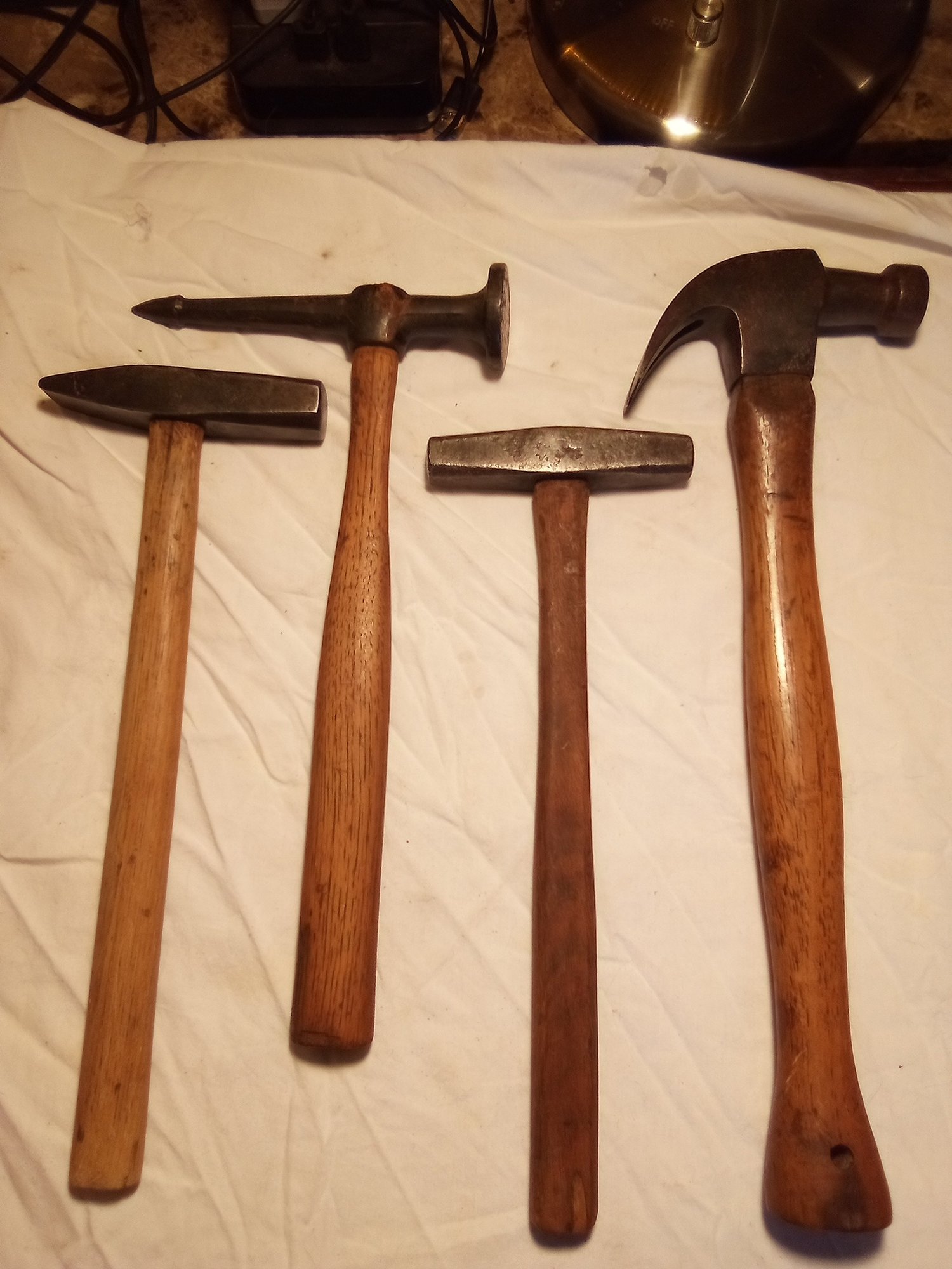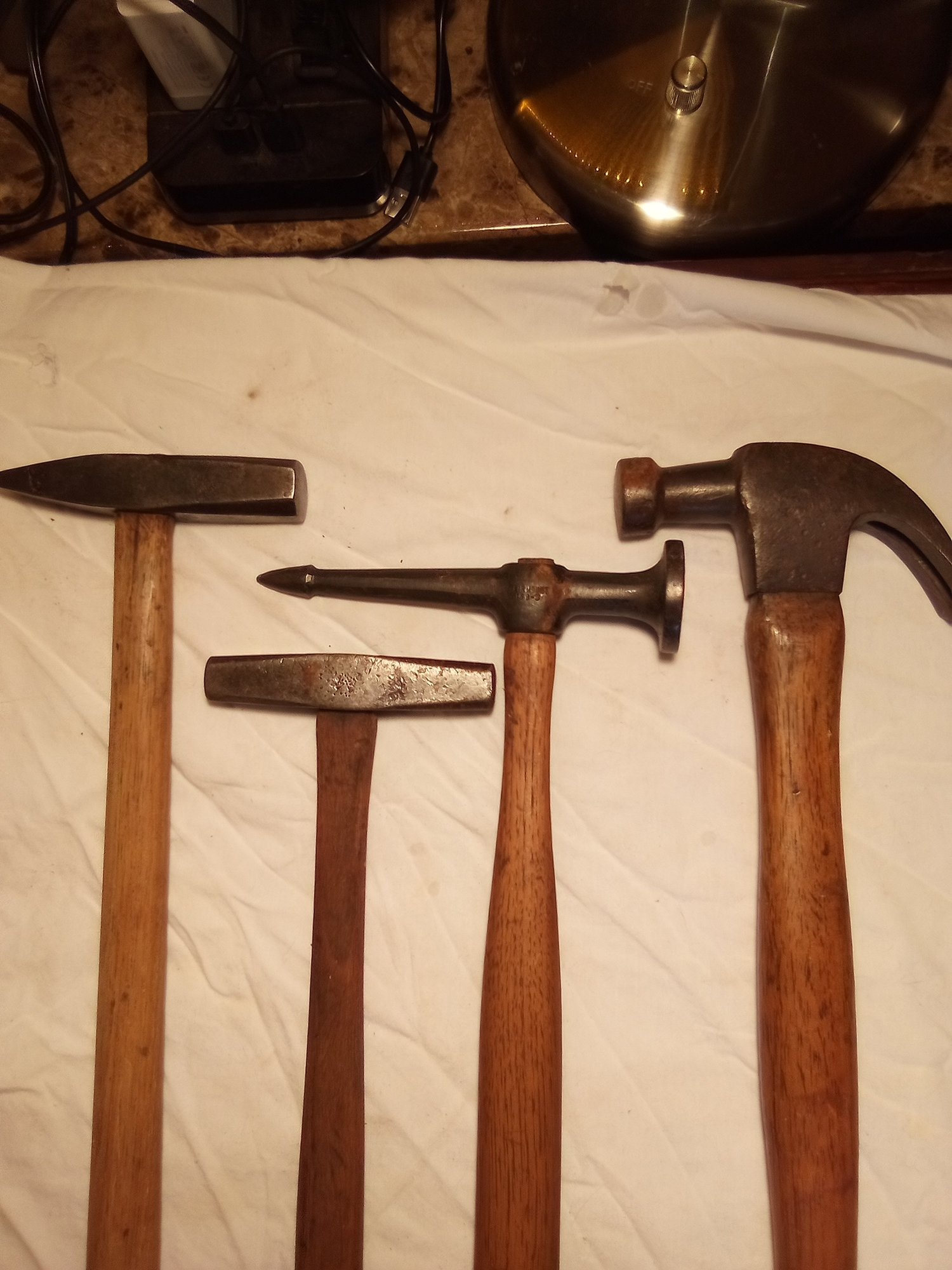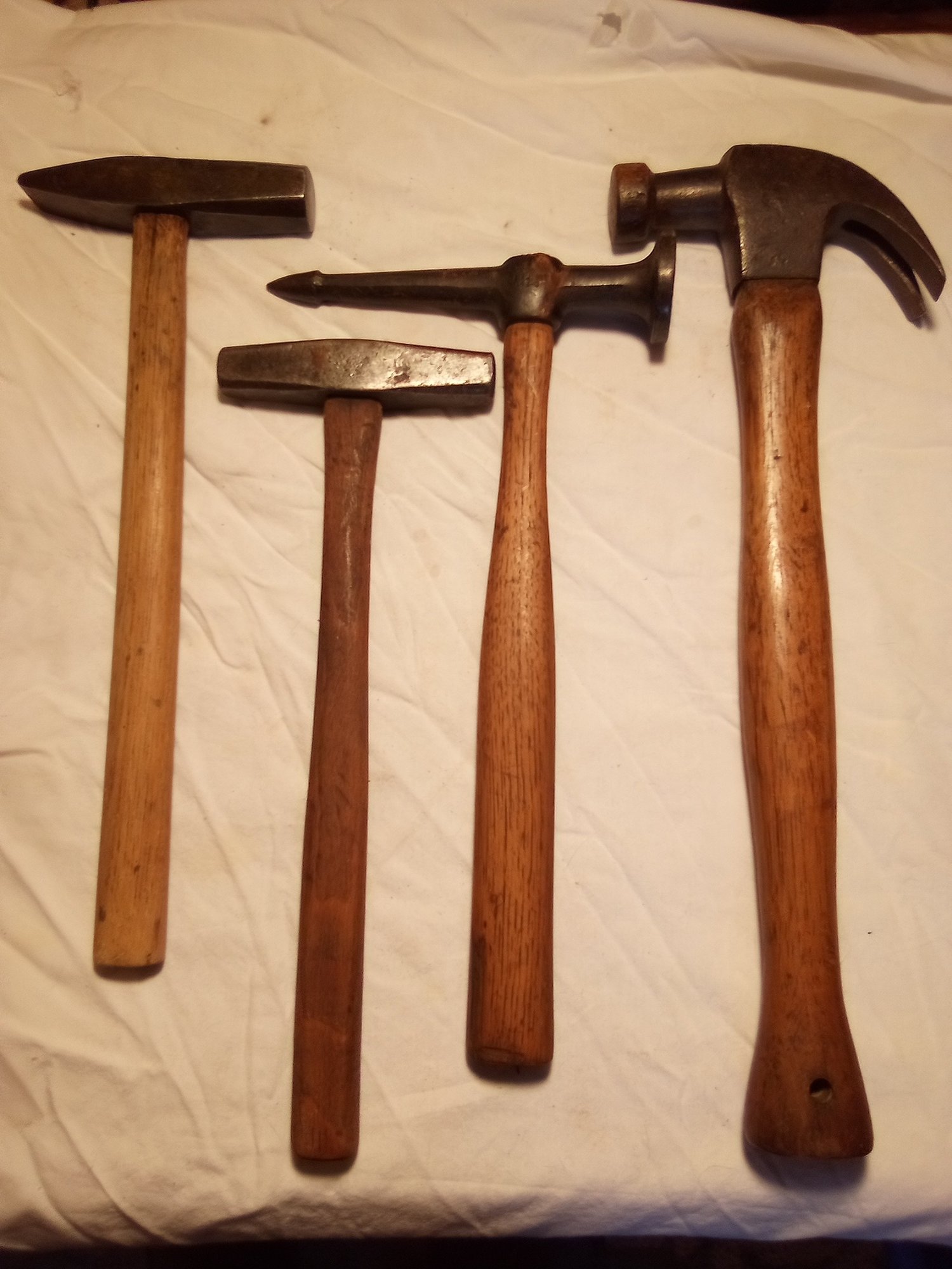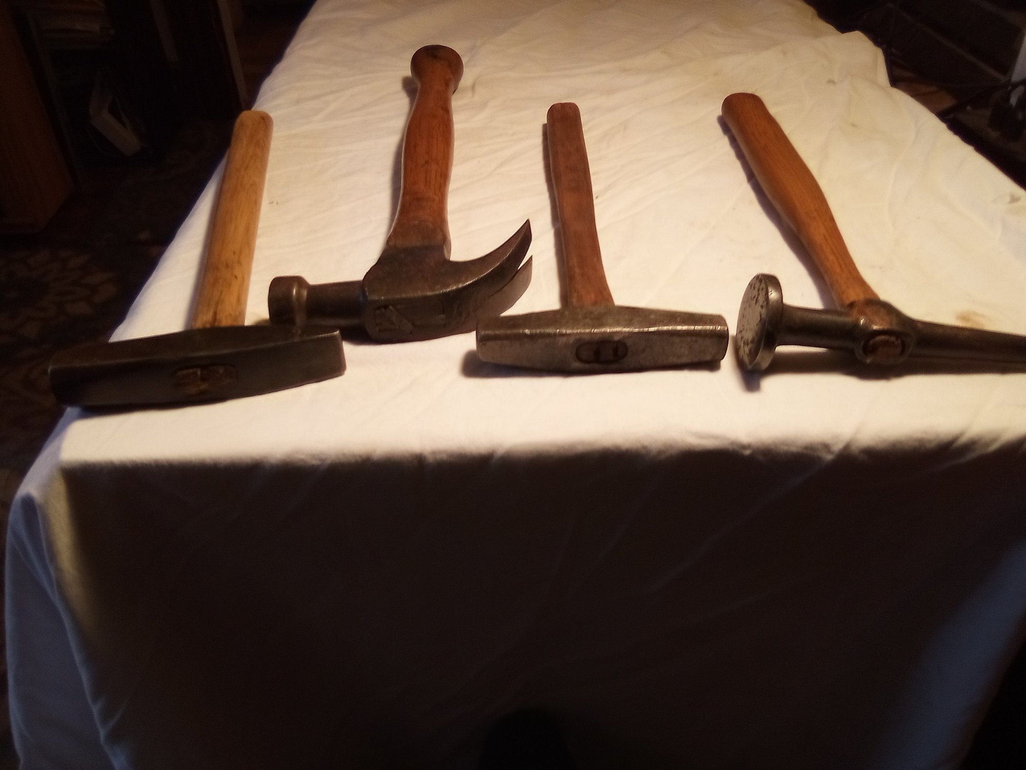 2 Tack Hammers 1 Claw Hammer 1 Vintage Mechanic Hammer