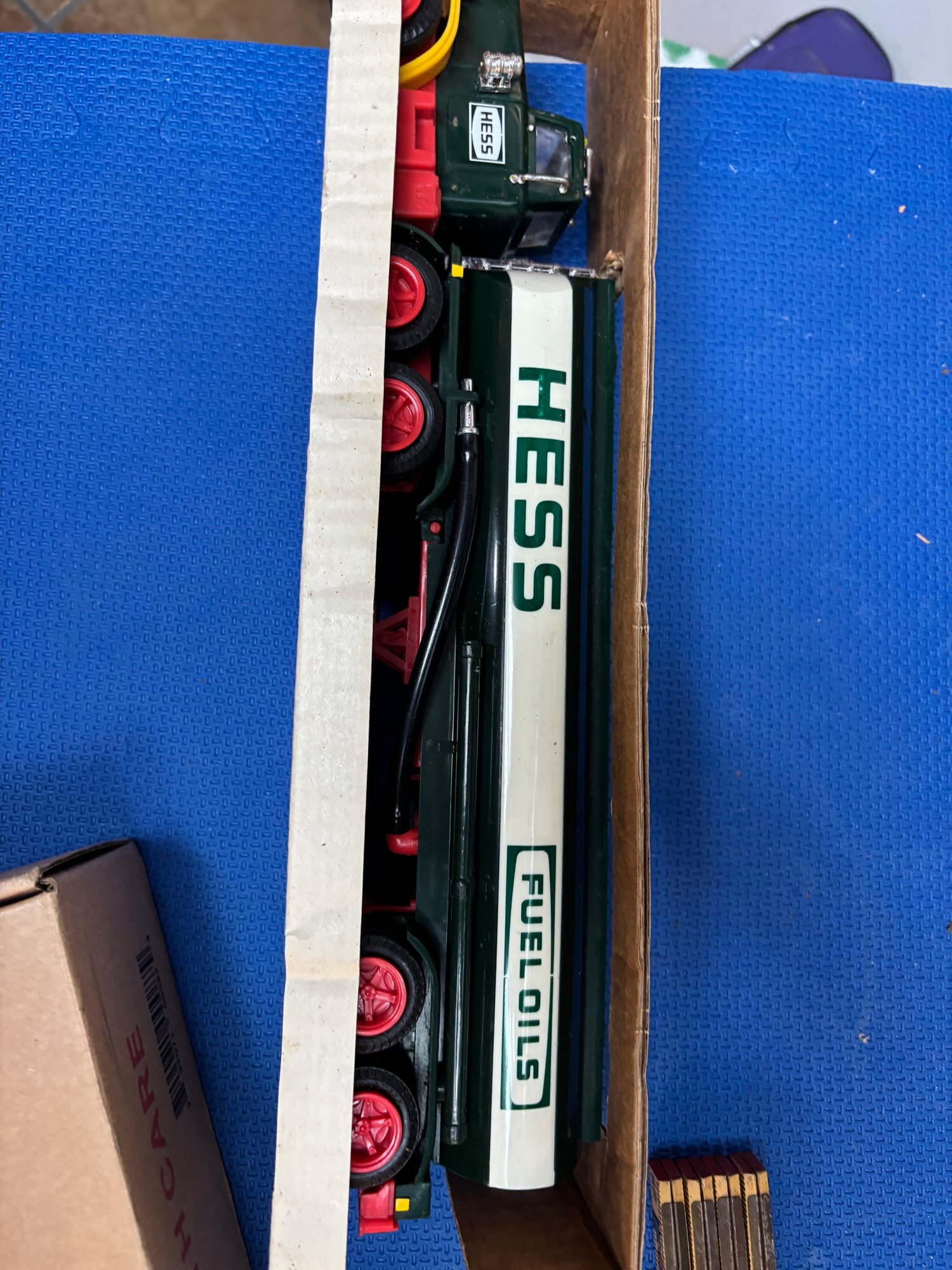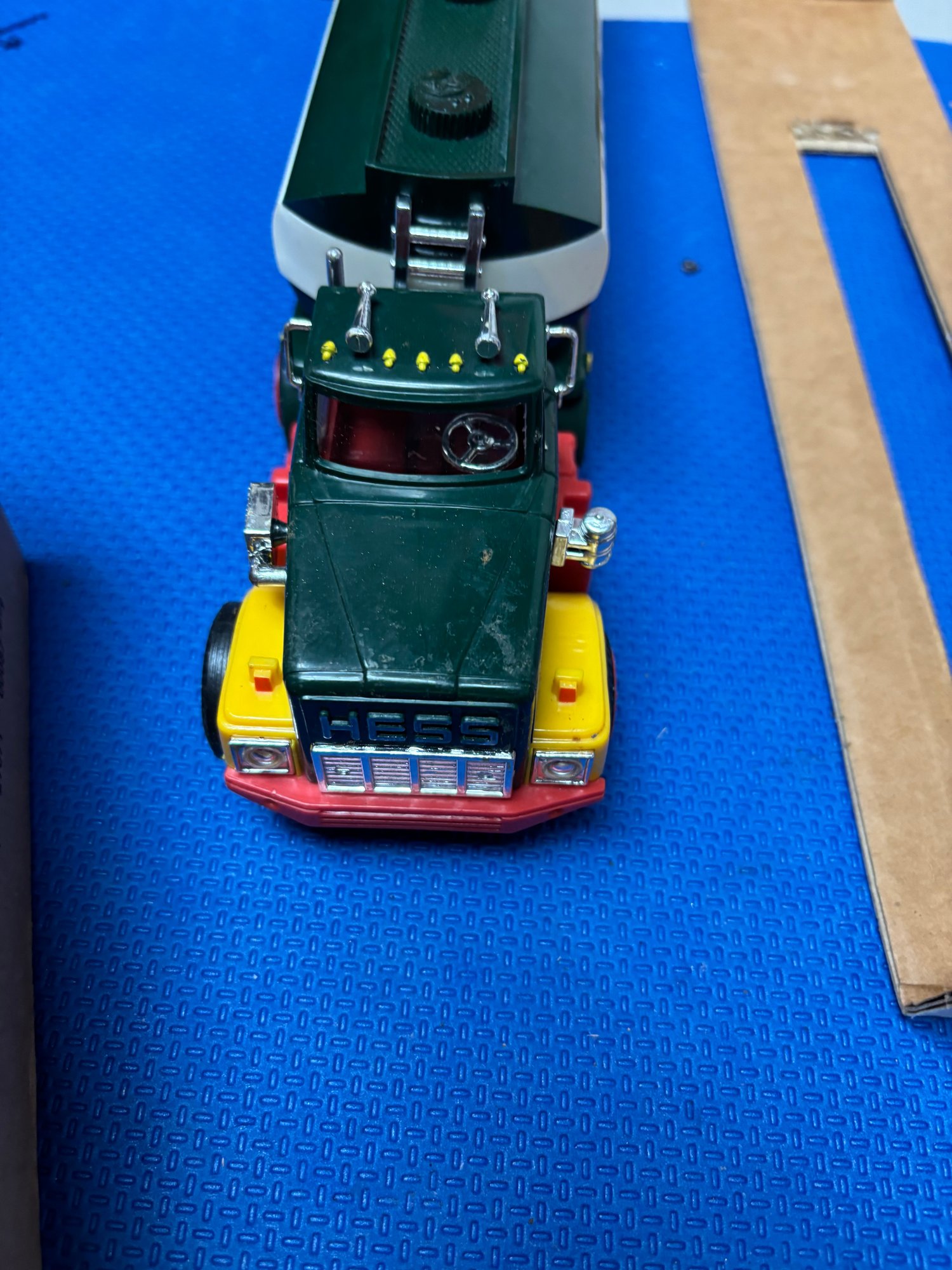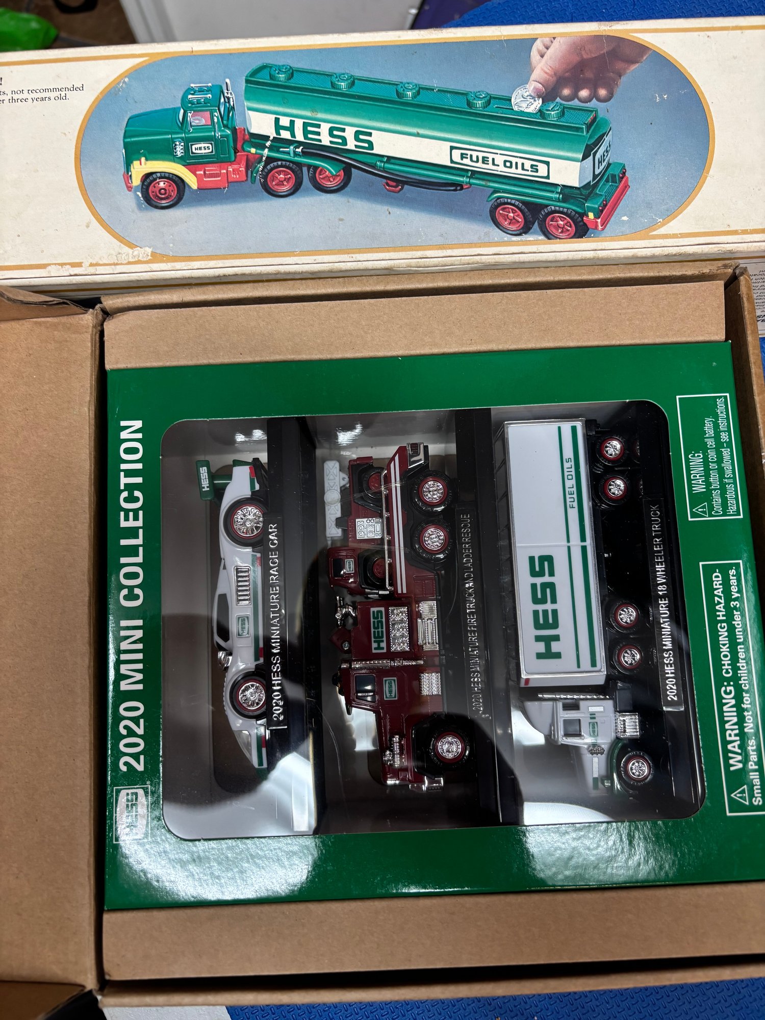 hess truck mini 2020 new in box, full size Hess tanker new vintage box has mold vehicle is in very good shape