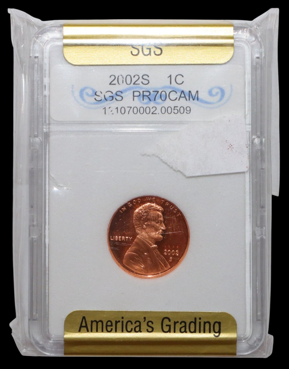 2002-S Lincoln One cent coin iC SGS PR70CAM America's Grading