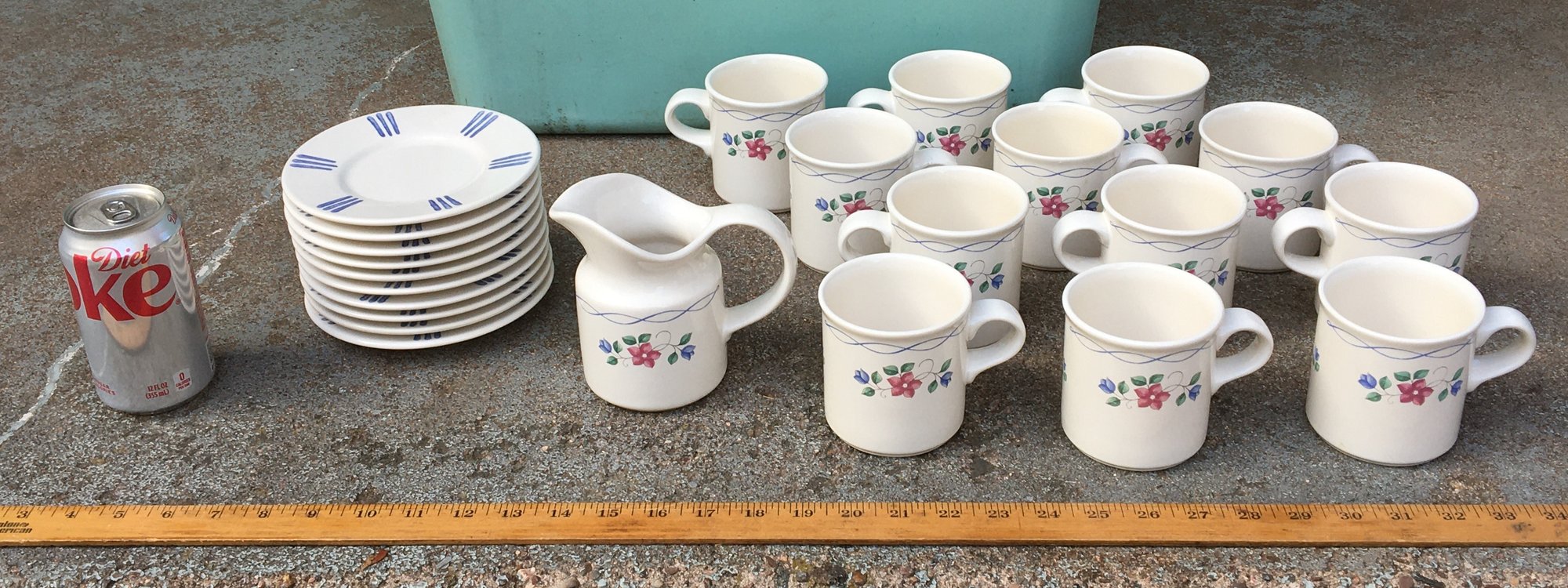 23 Piece Set of Pfaltzgraff Bonnie Brae Collection Tableware - Creamer, Cups, Saucers - Clean Condition, No chips or Cracks. - See photos for overall condition and size.
