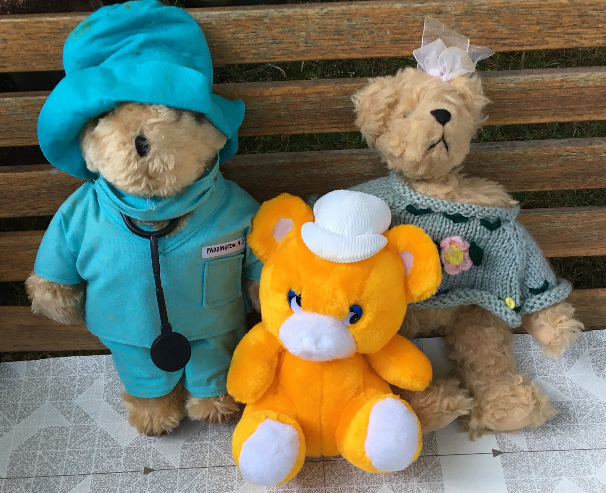 Lot of 3 Little Plush Bears! - A Paddington MD Doctor Bear (marks on Hat), a Dan Brechner 60s Bear (Excellent condition) and a Ganz Cottage Collectibles Bear (Loose Head). - See Photos for size and overall condition.