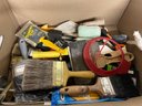 3rd Painters Box Lot With Lots Of Brushes Plus Small Saw, Pencils Etc.