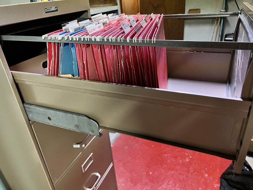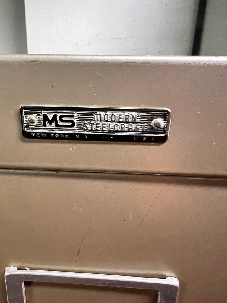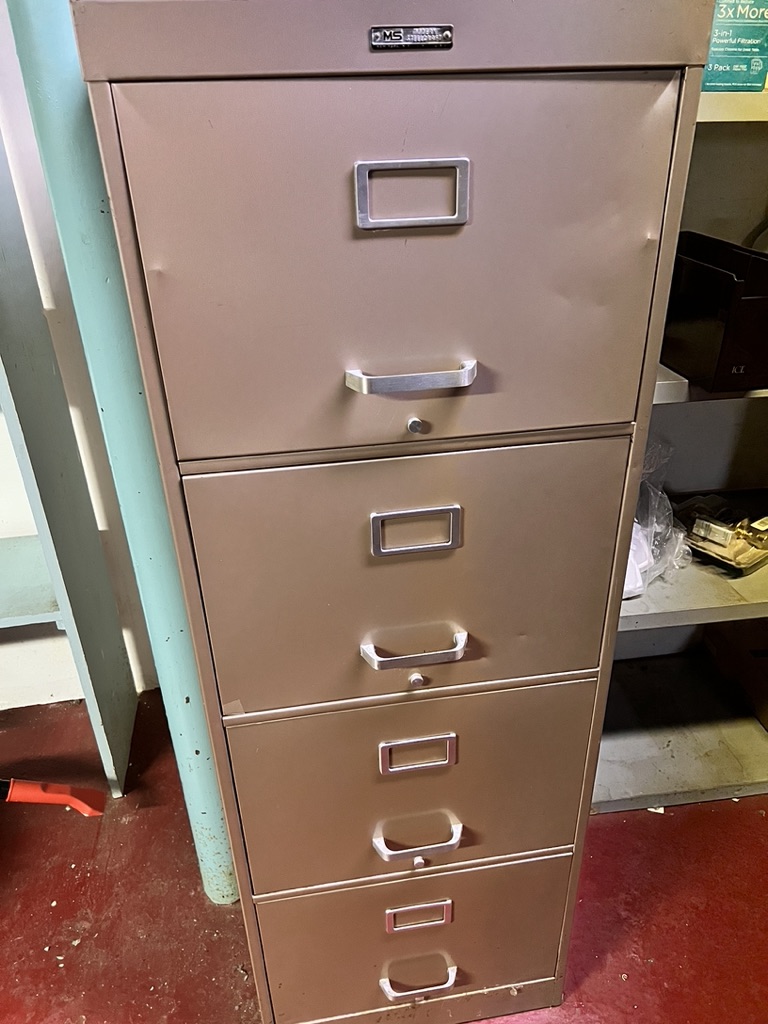4 drawer file cabinet by modern steelcraft, with files ready to use