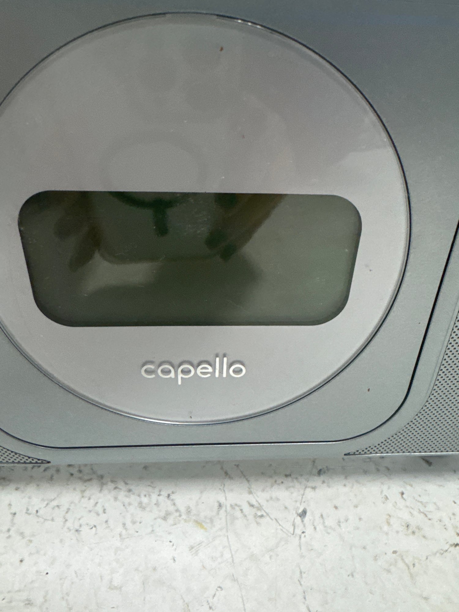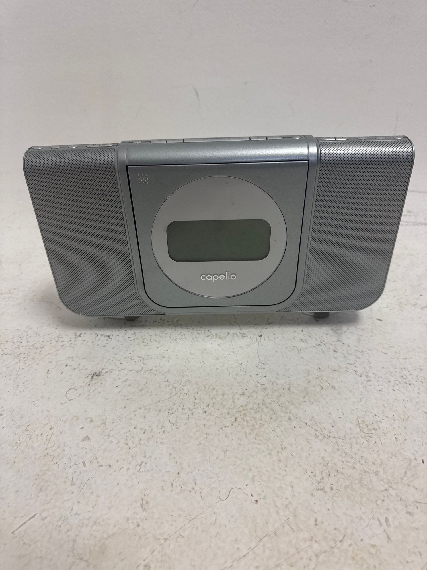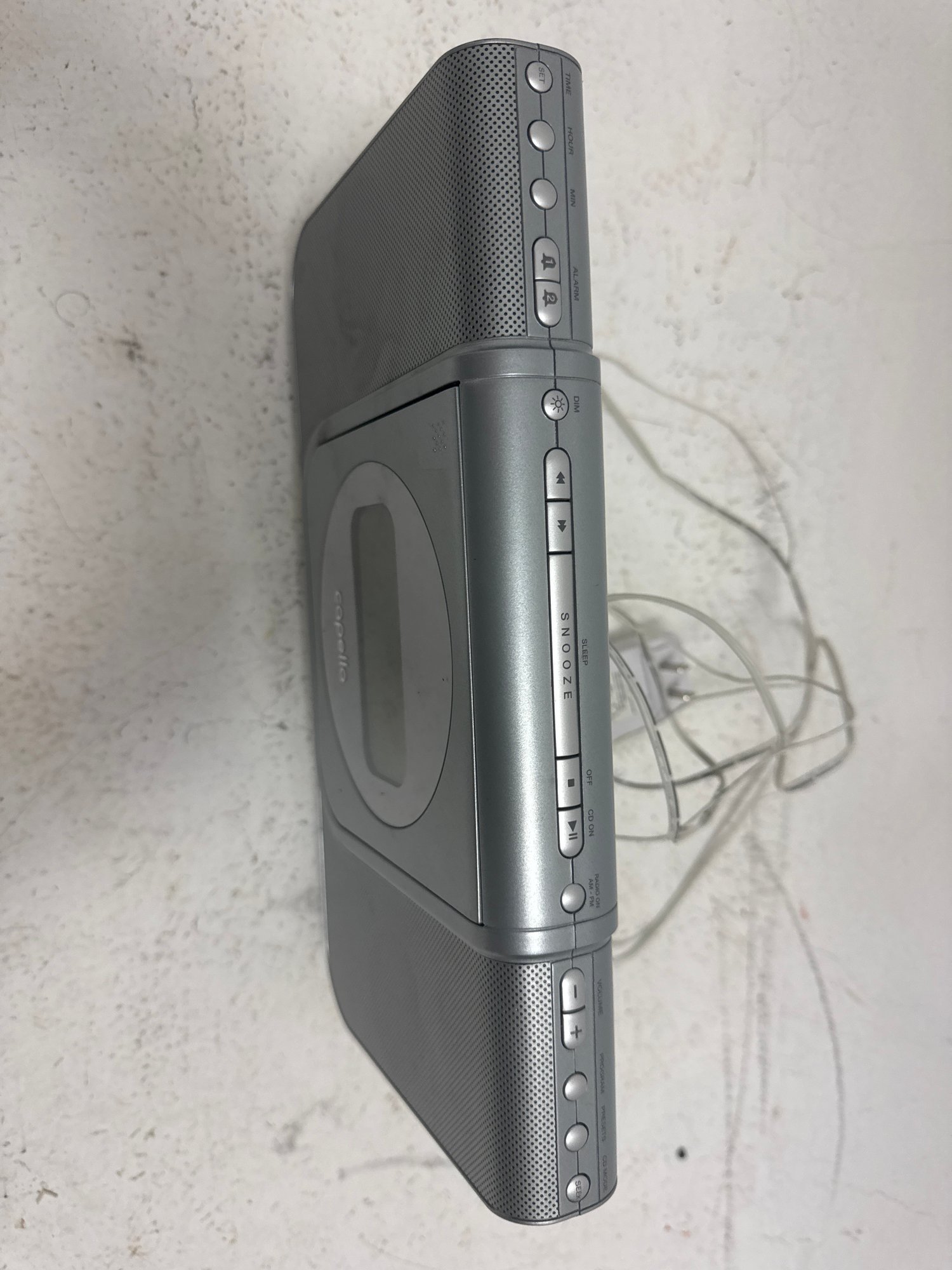 A Gray Capello CR25 CD Dual Alarm Clock Radio.