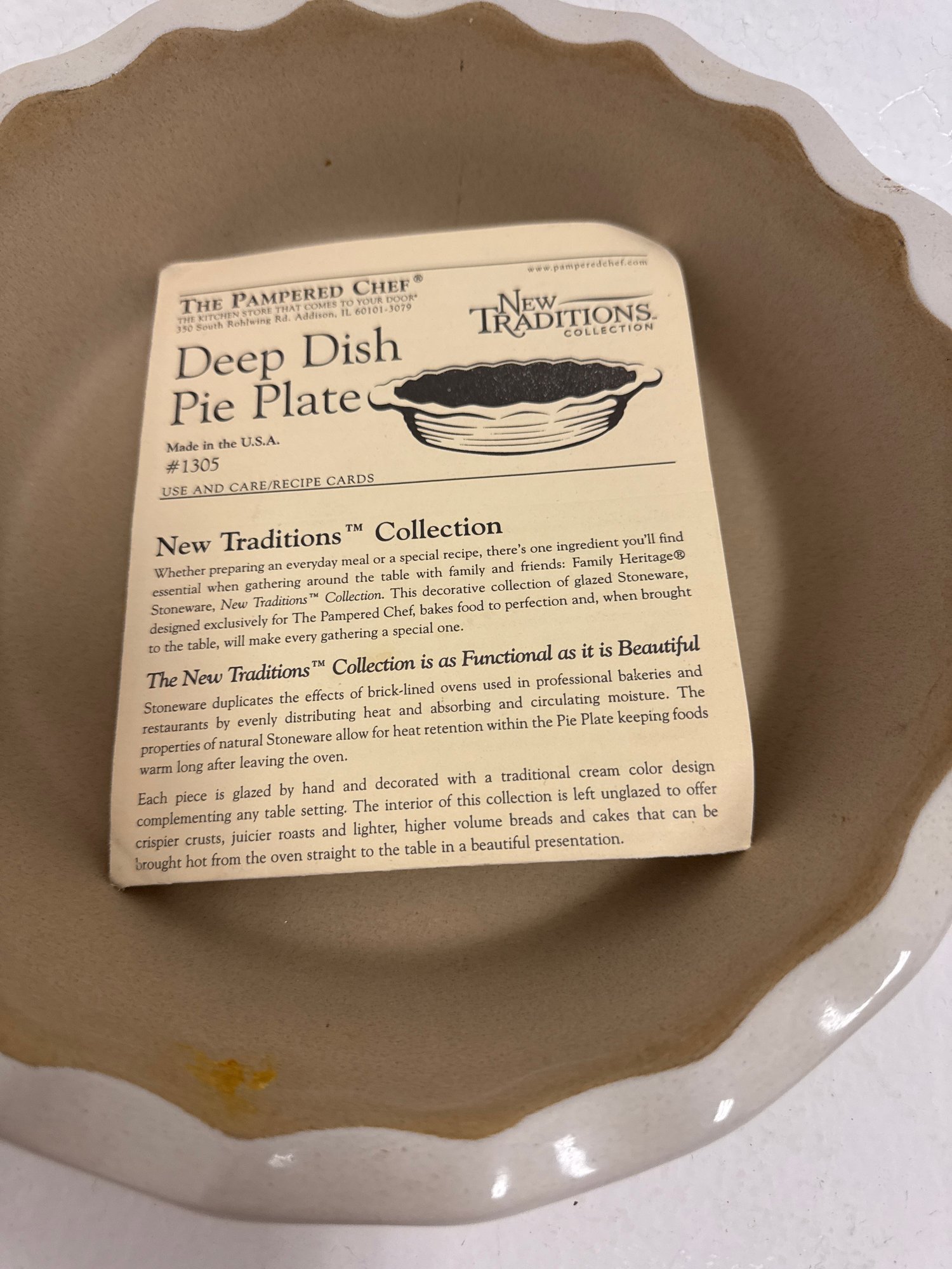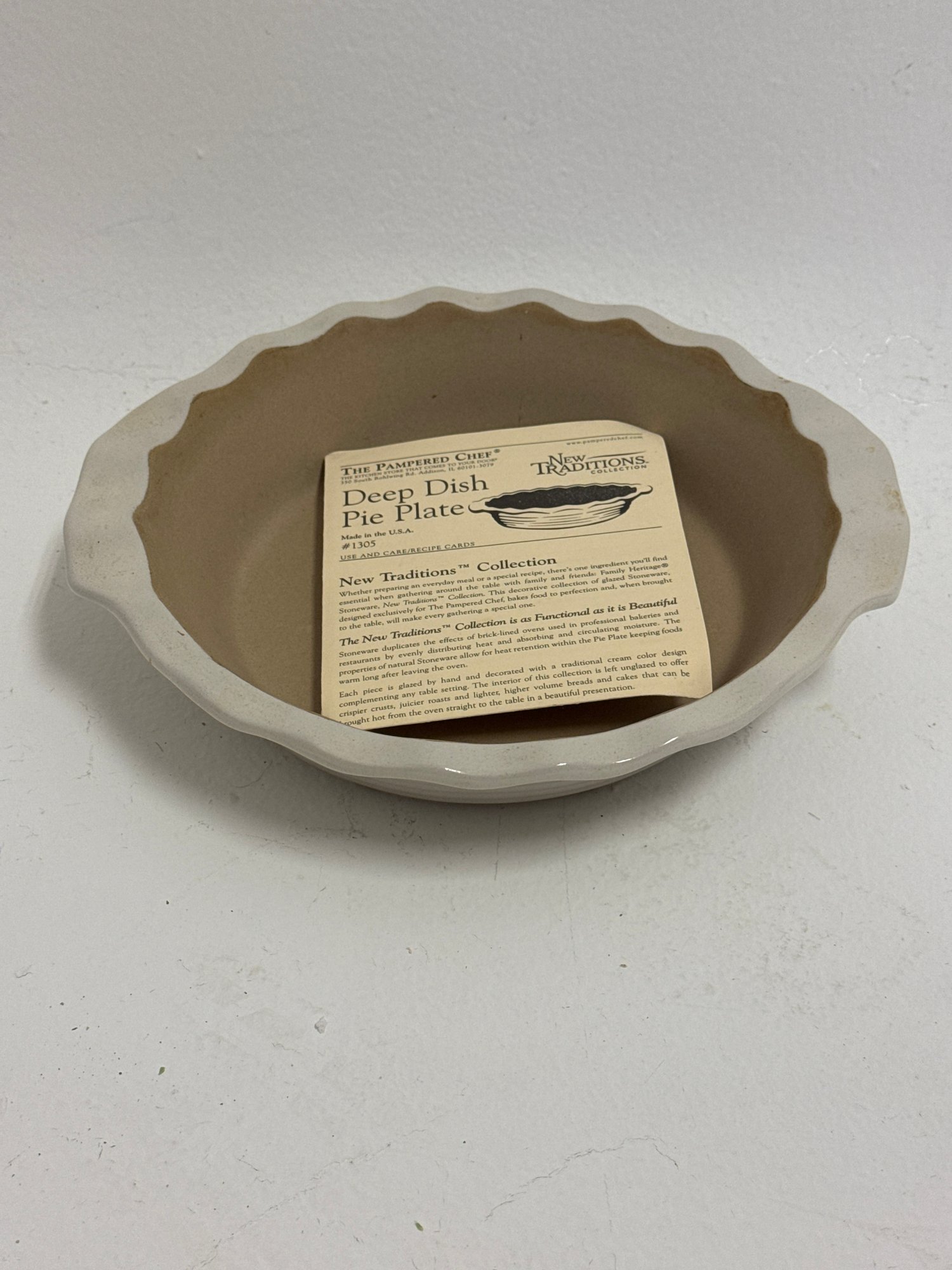 A Pampered Chef New Traditions Stoneware Deep Dish Pie Plate.