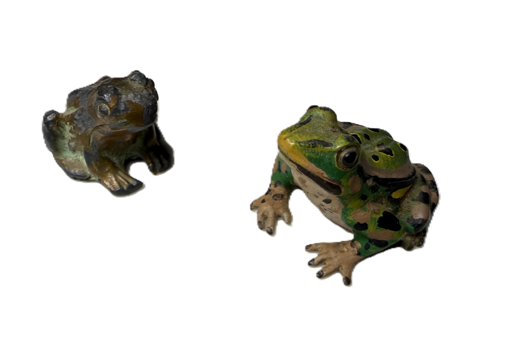 Adorable antique pair of Austrian cold-painted bronze frog figurines.