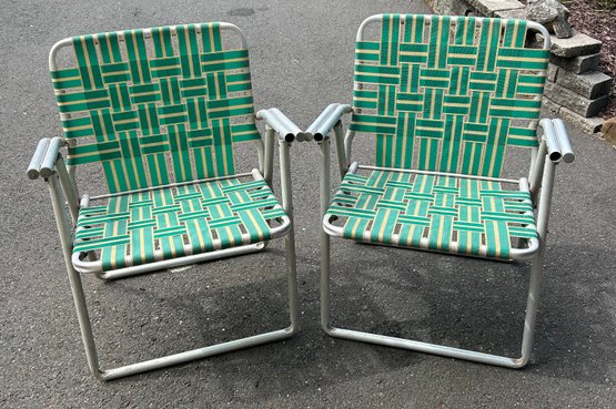 Pair Of Green Vintage Lawn Chairs