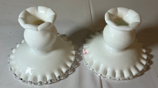 Pair Of Milk Glass Candlestick Holders