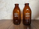 Pair of brown glass vintage UConn milk bottles.