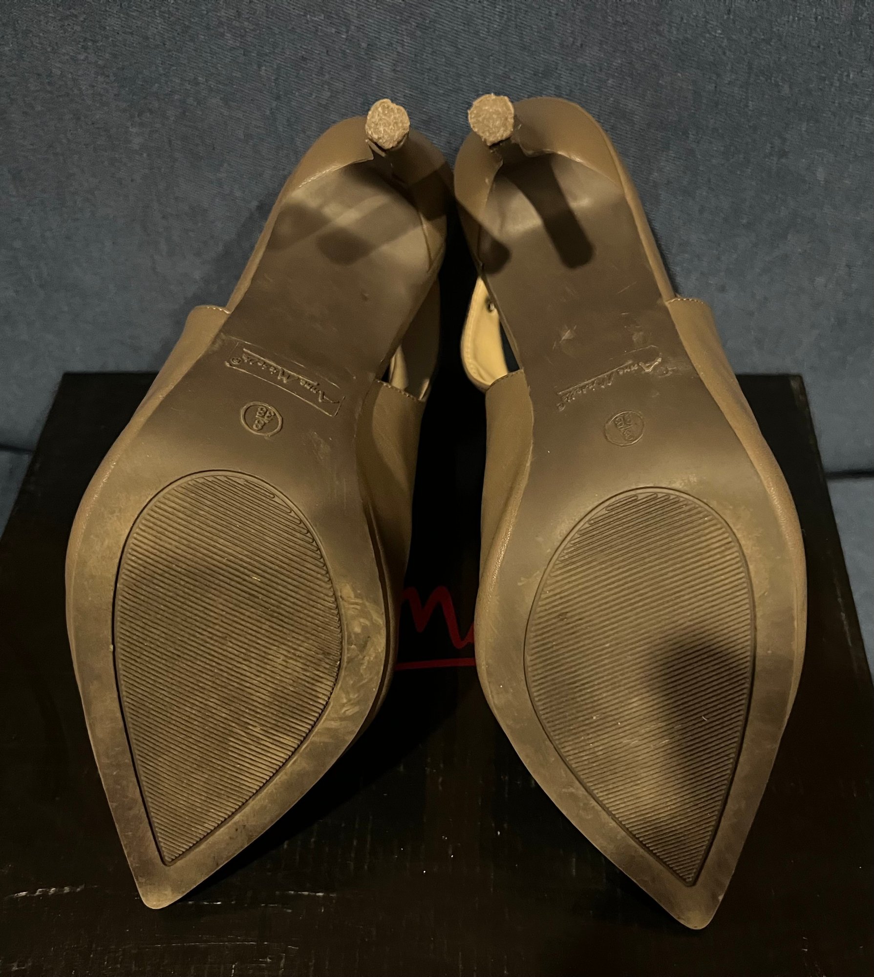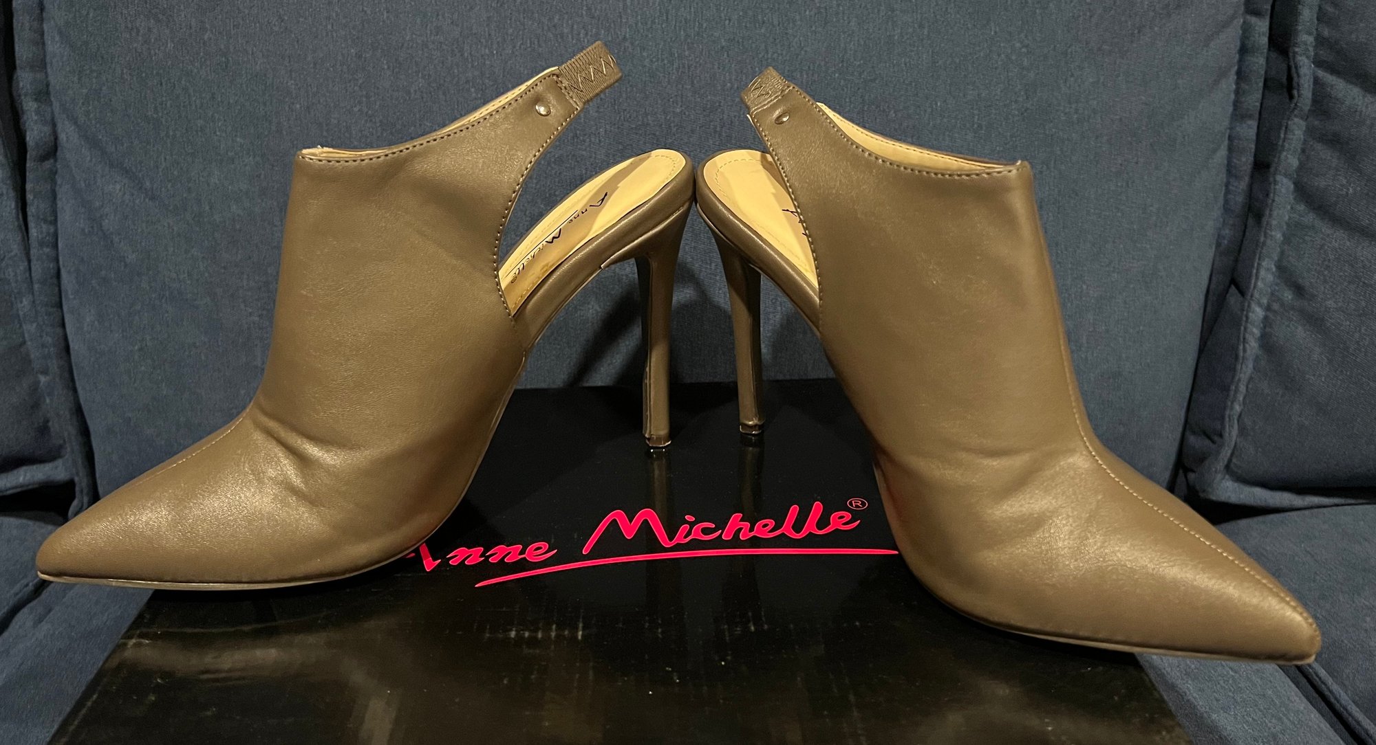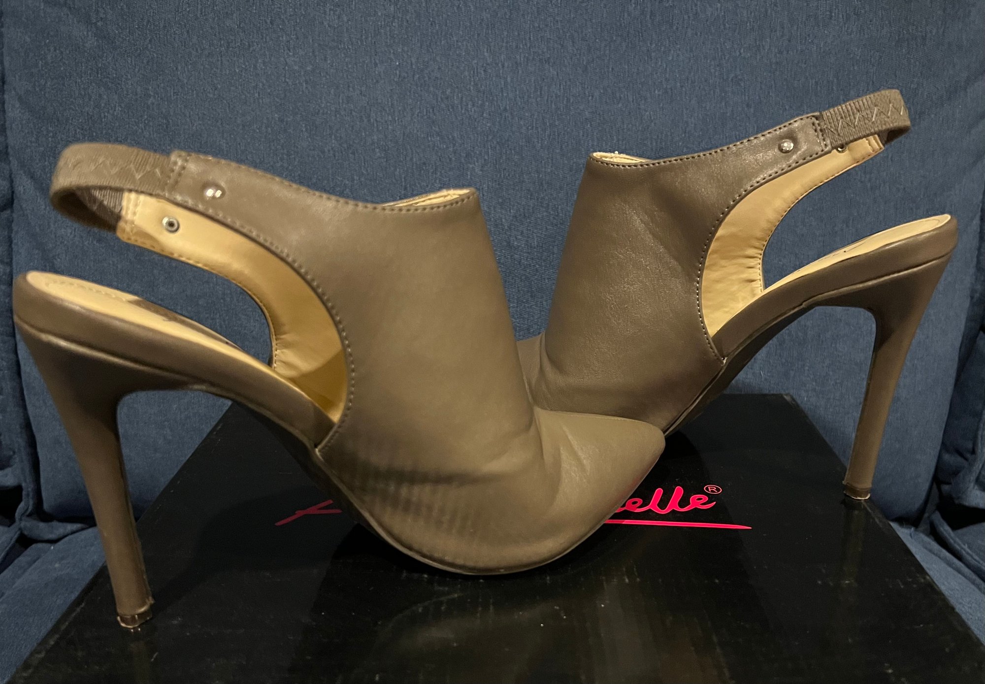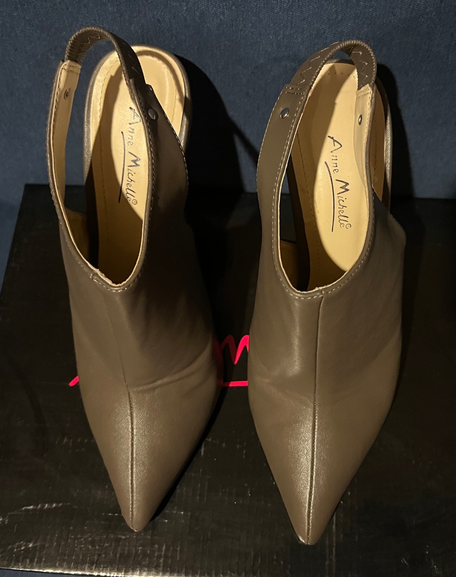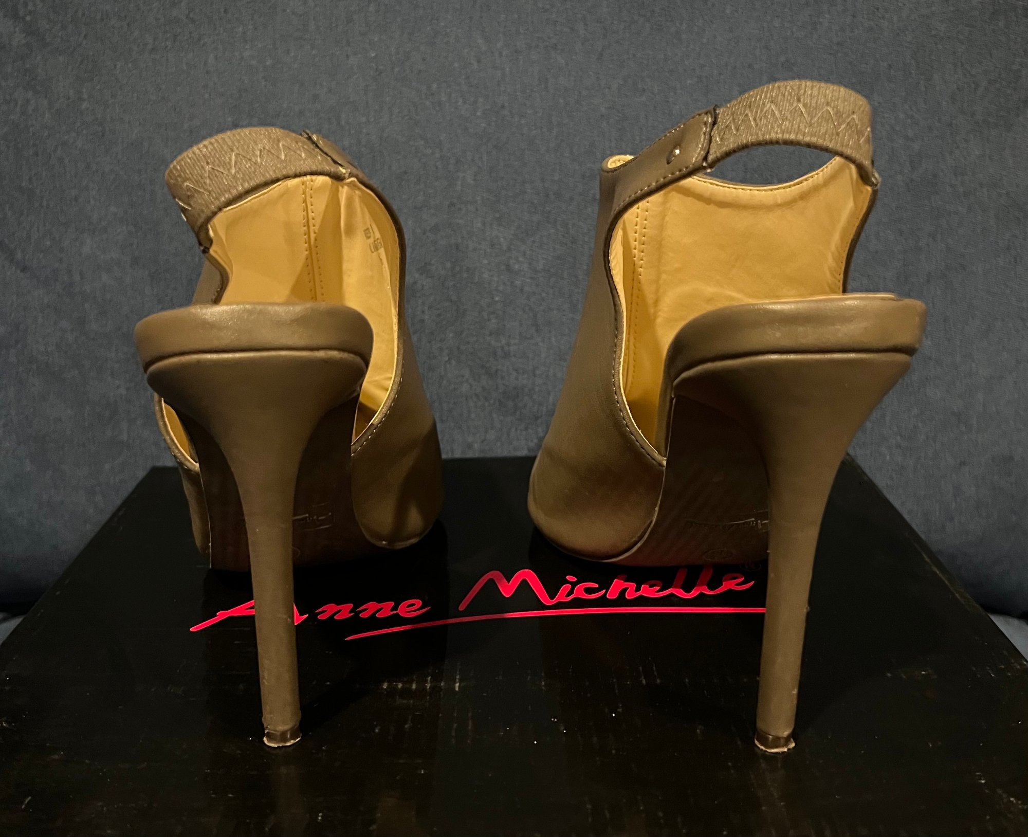 Anne Michelle Taupe Gray Sling Back High HeelShoe Size 8 Heel is about 4.5”