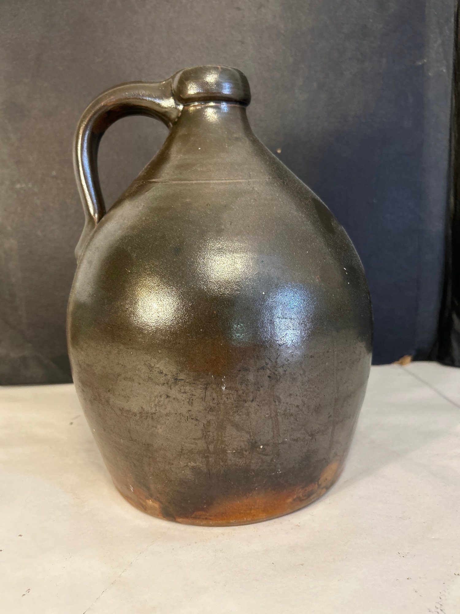 1 Antique Brown Glazed Stoneware Pottery 8" Jug Crock Ovoid Unmarked