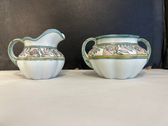 1 Antique Hand Painted Nippon Moriage Porcelain Creamer & Sugar Bowl Set with no lid !