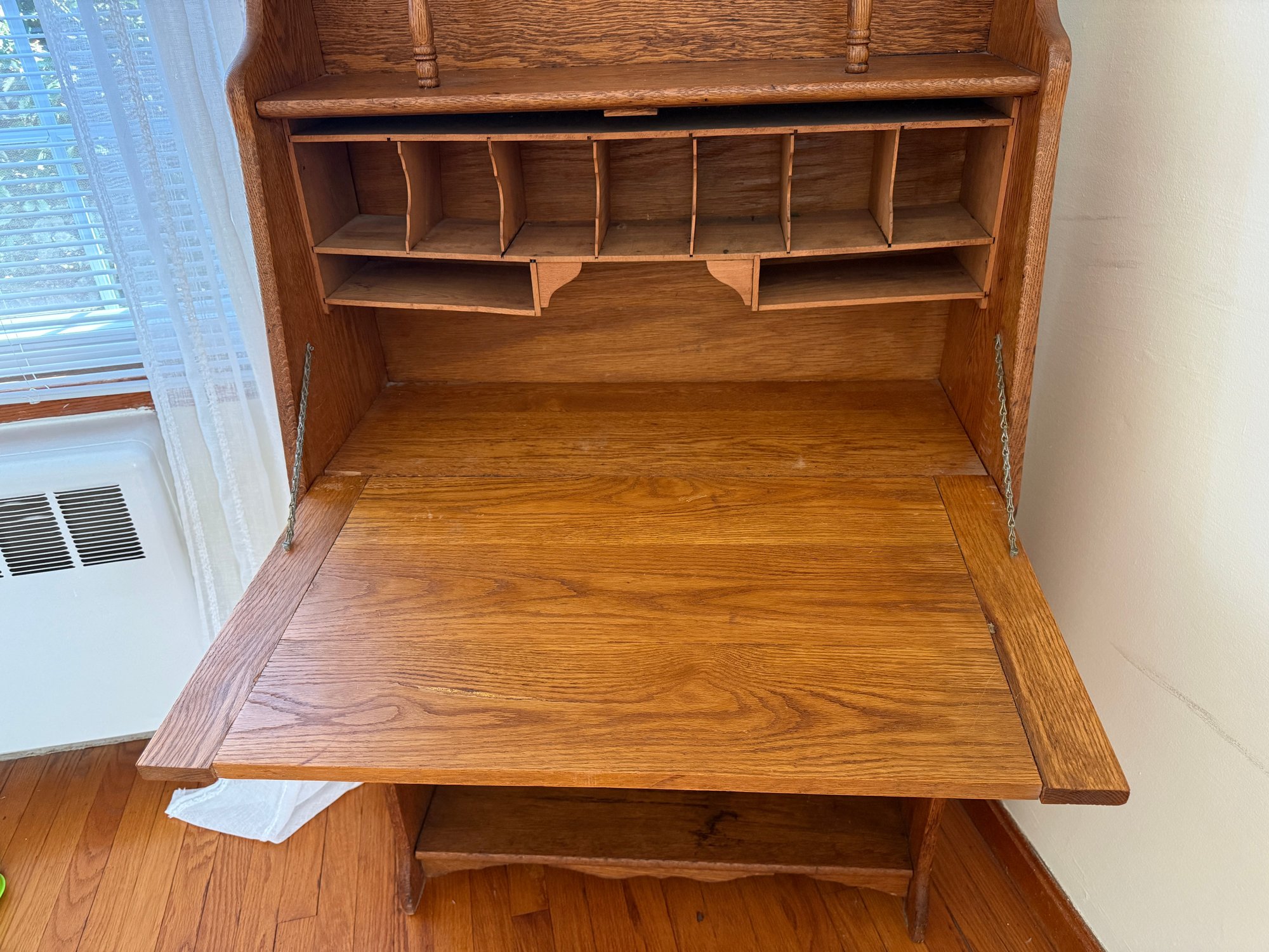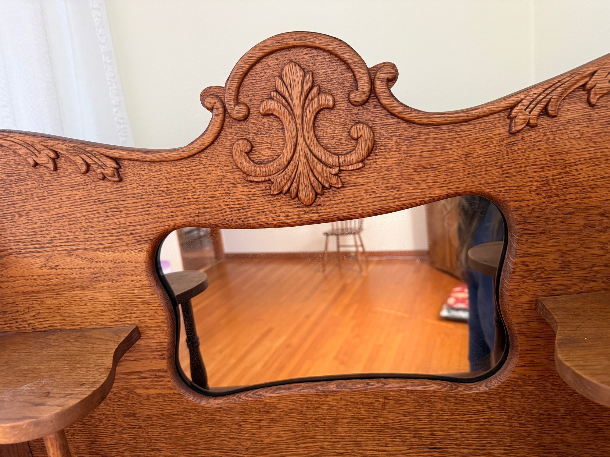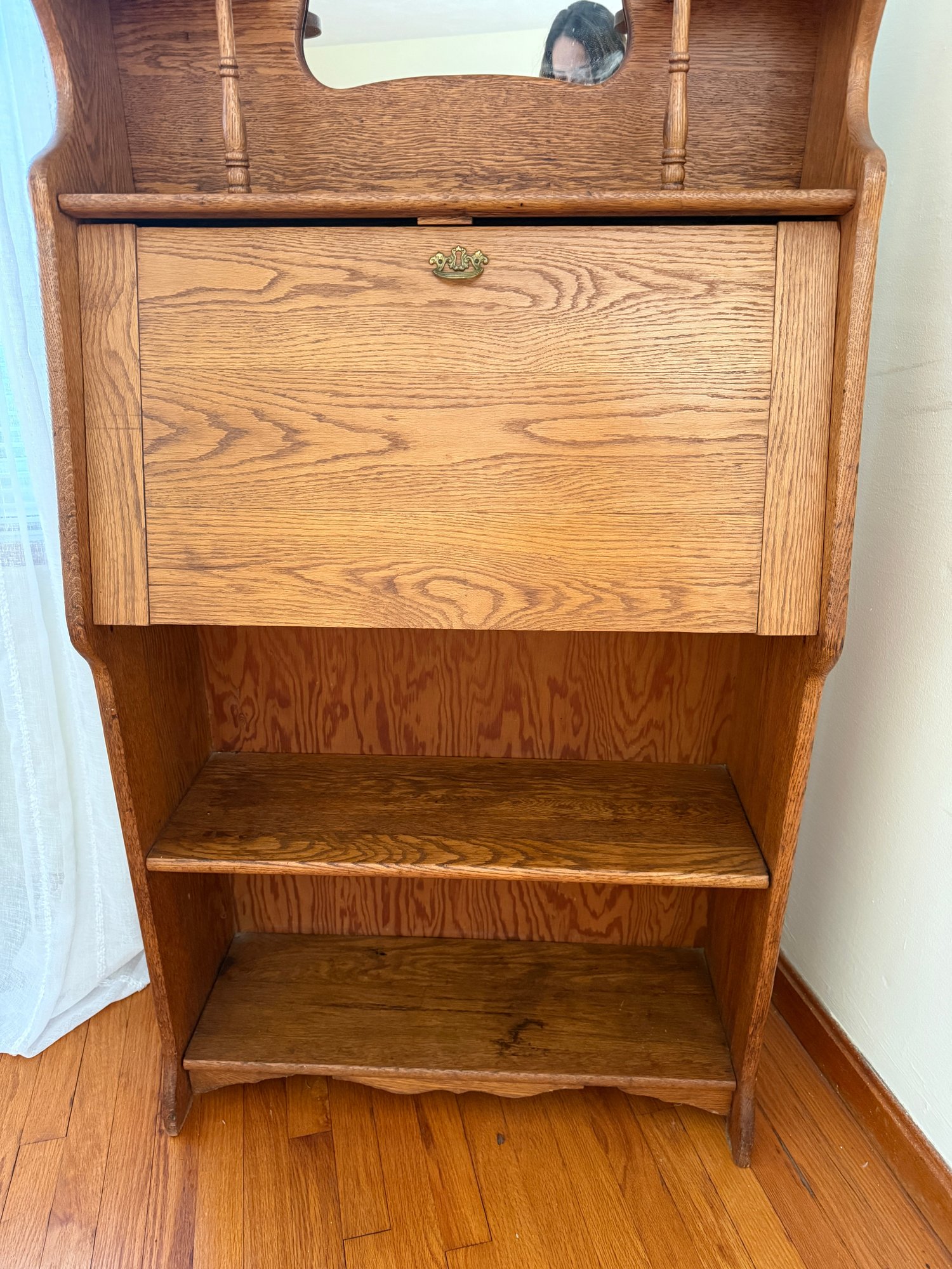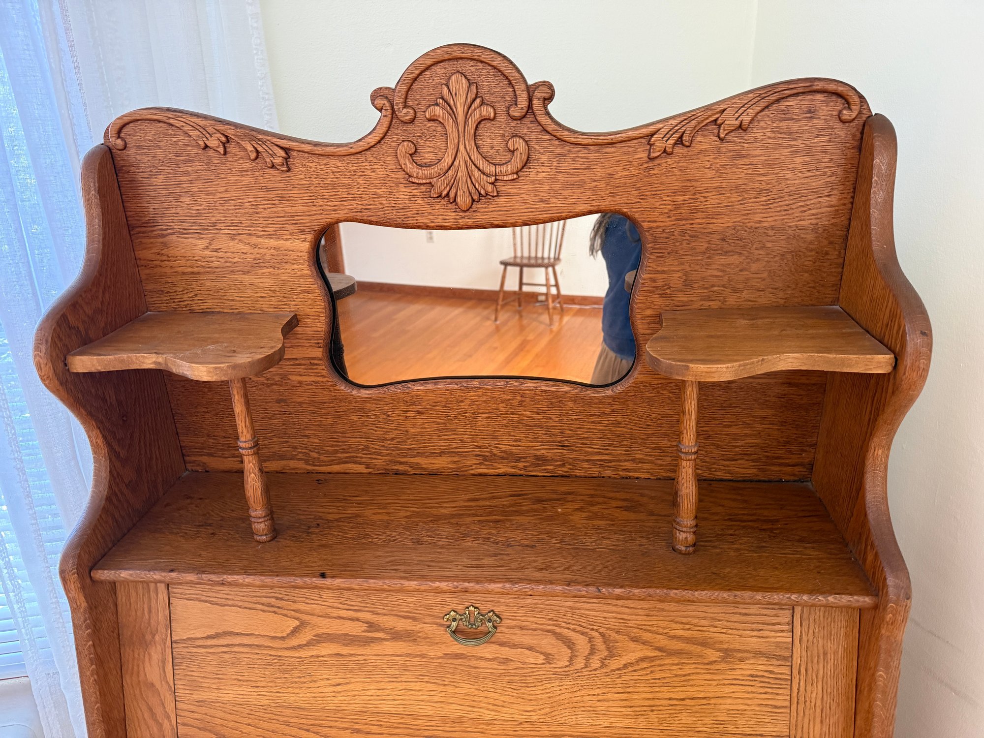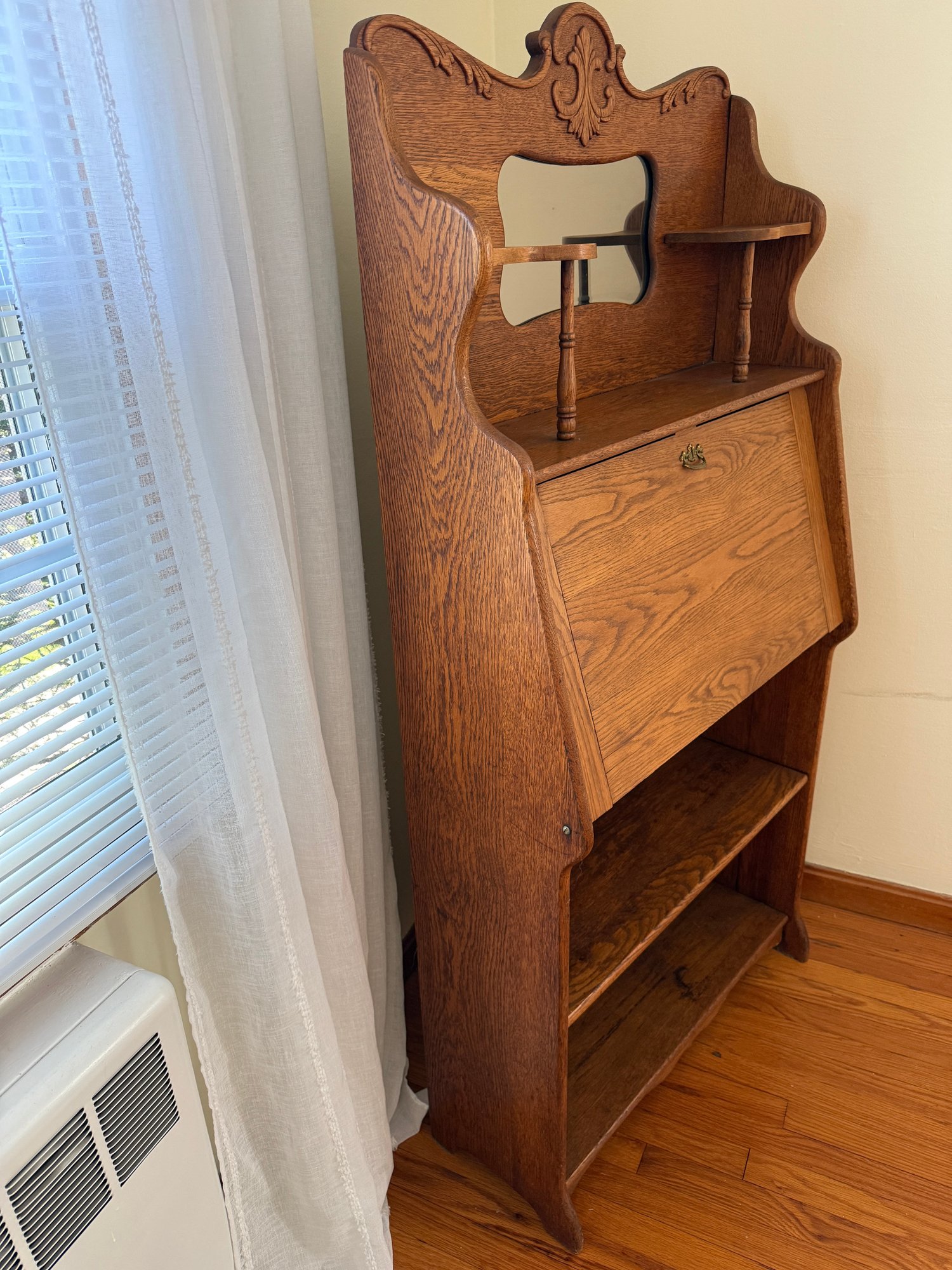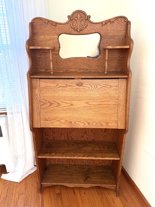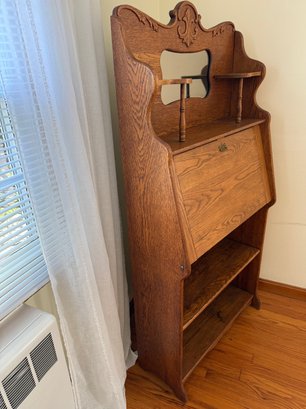Beautiful Art Nouveau era oak Larkin desk with mirror.