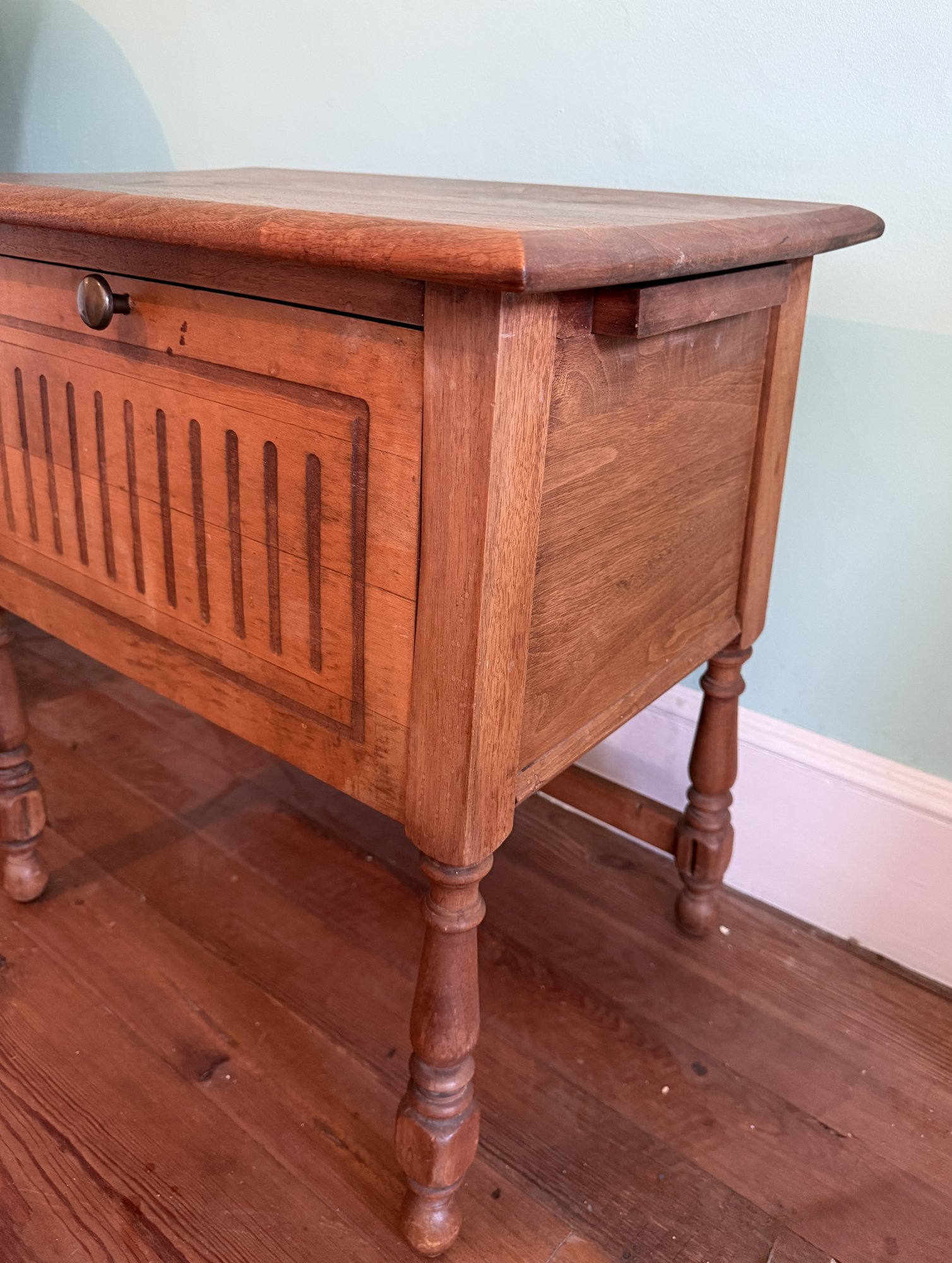 Notes: Has some superficial marks on the top surface that could be refinished out; seems like it originally had stretchers joining each leg, all but the rear stretcher have been removed. Still sturdy and usable.