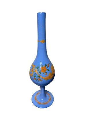 Antique hand-worked Beykoz blue opaline glass rosewater "sprinkler" or "gulabden" in Turkish, where they were made in Istanbul during the 19th century, beautifully hand-painted with gold and green floral motifs.