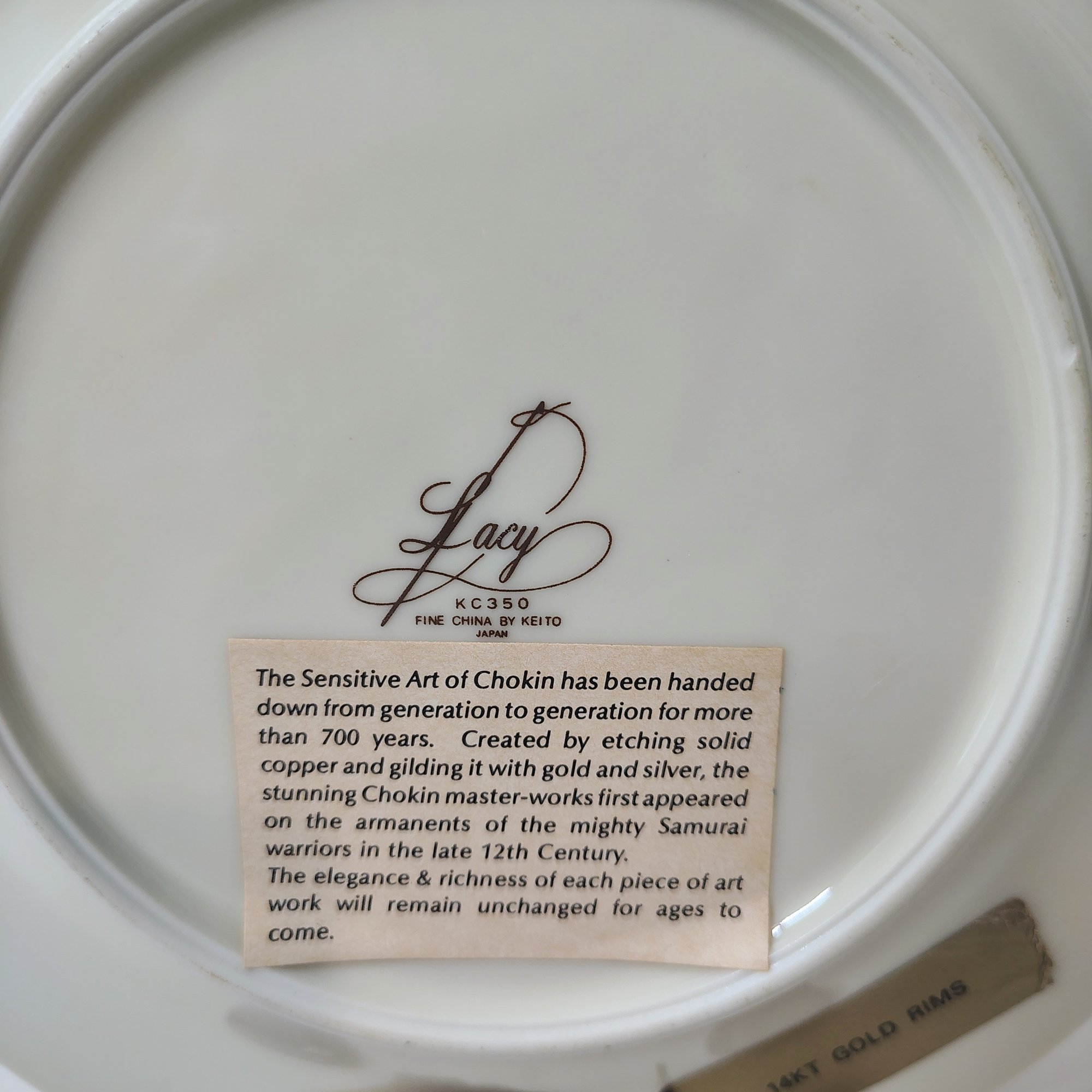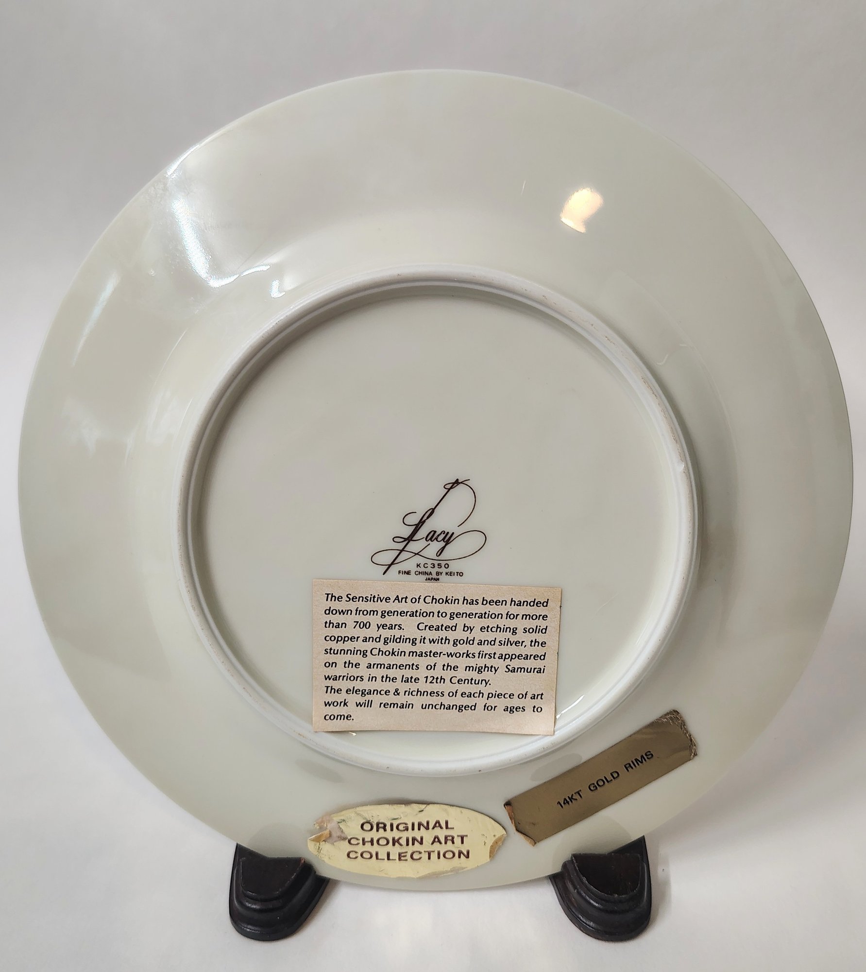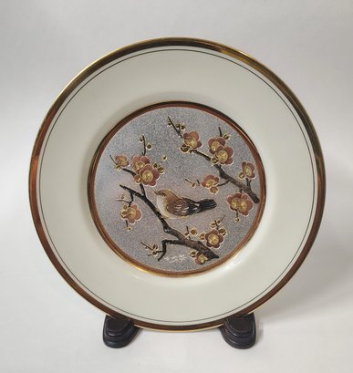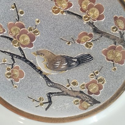 Japanese Art of Chokin 6.5” 24kt Gold Rim & Silver Plate Bird & Blossoms