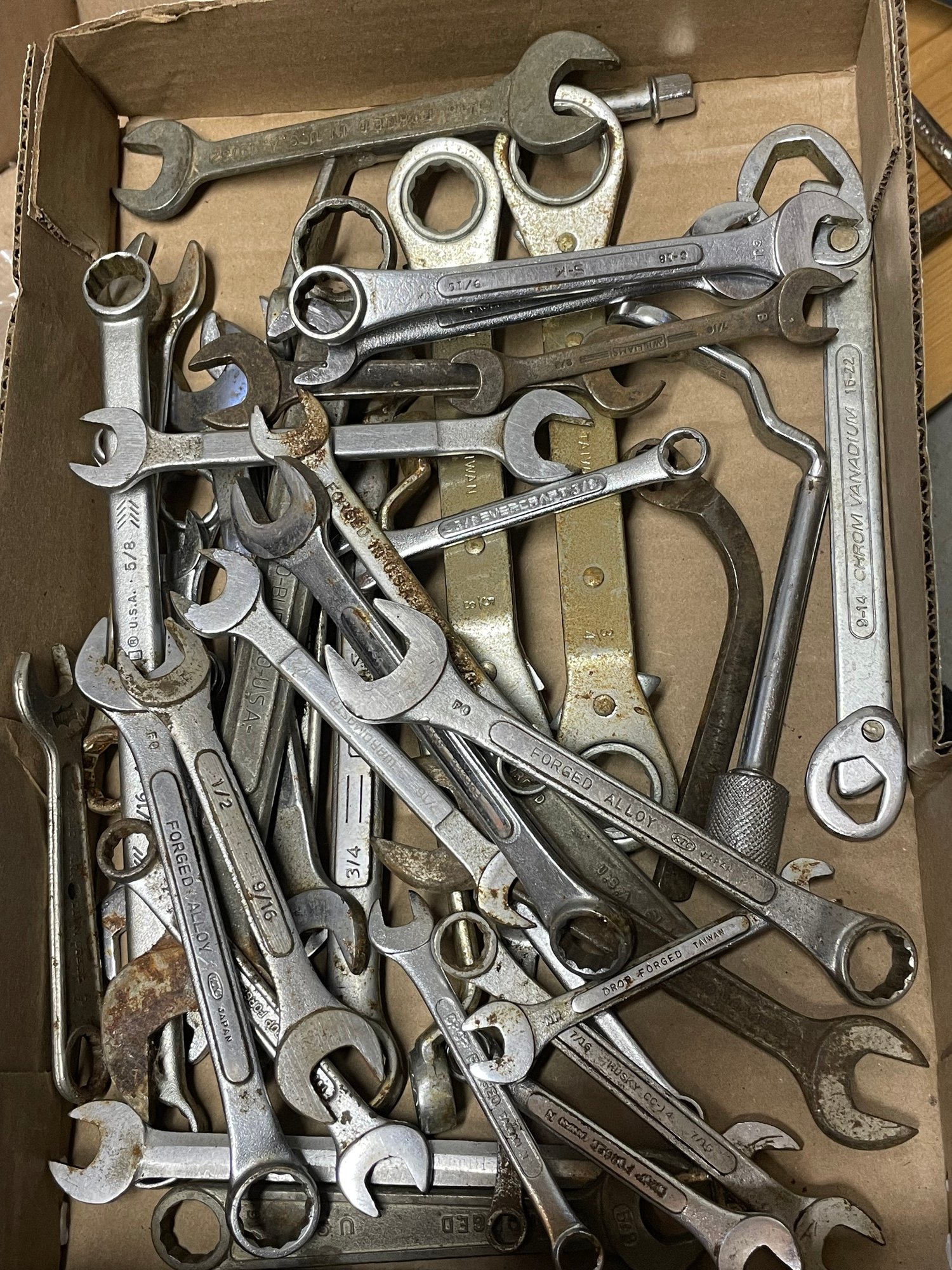 (B) Box Lot Of Over 40 Wrenches