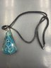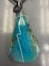 Blue Agate Slice Necklace Featuring Wrapped Design Crafted From A Natural Polished Stone Pendant