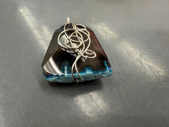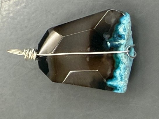 Blue Agate Stone Pendant Wrapped In Sterling Silver