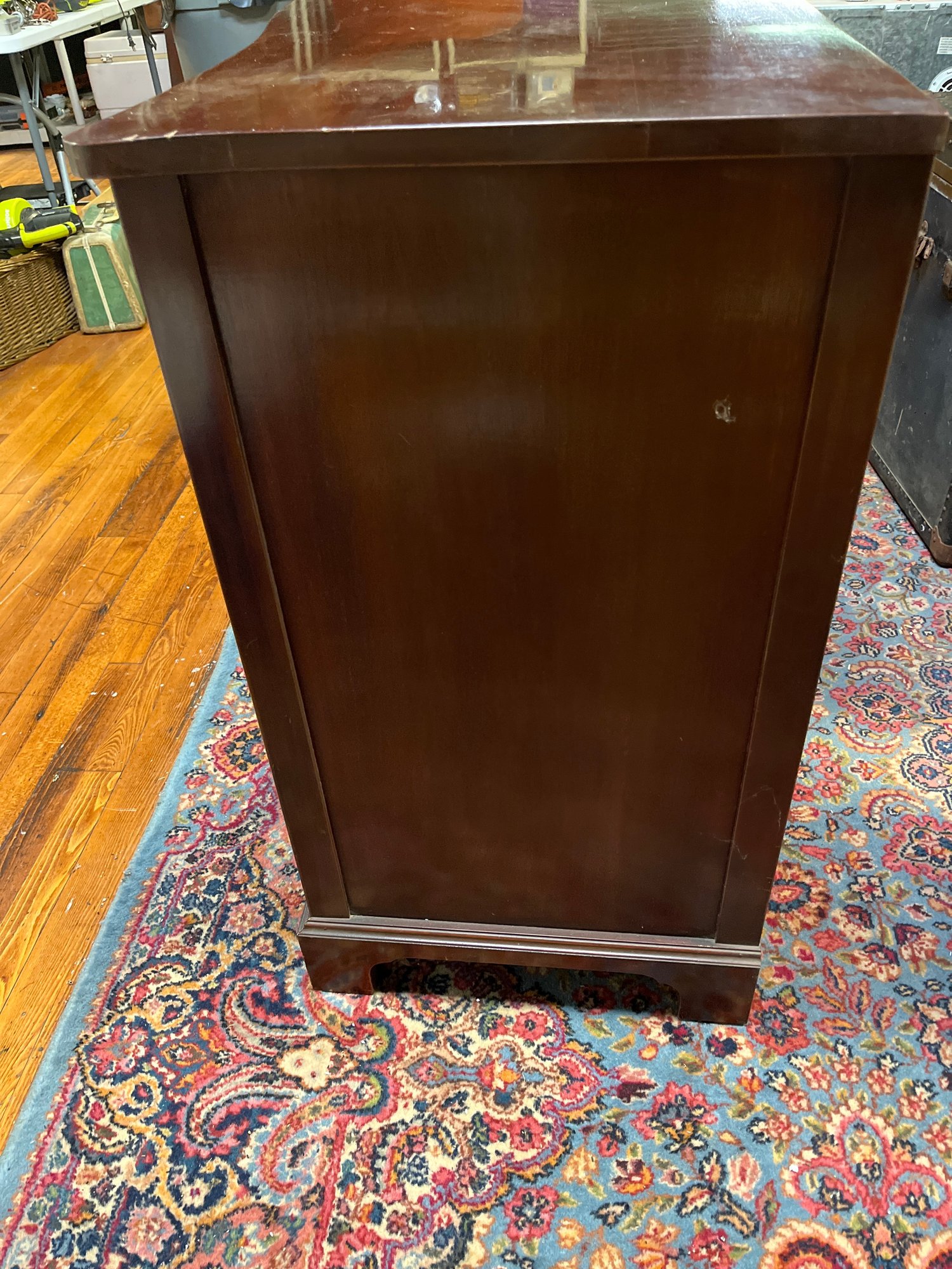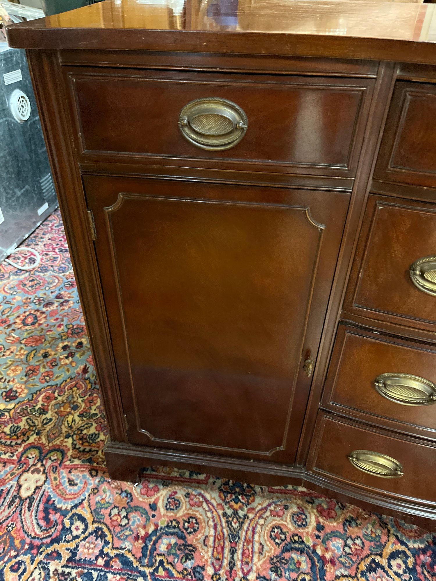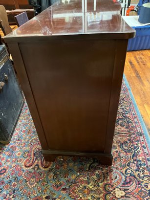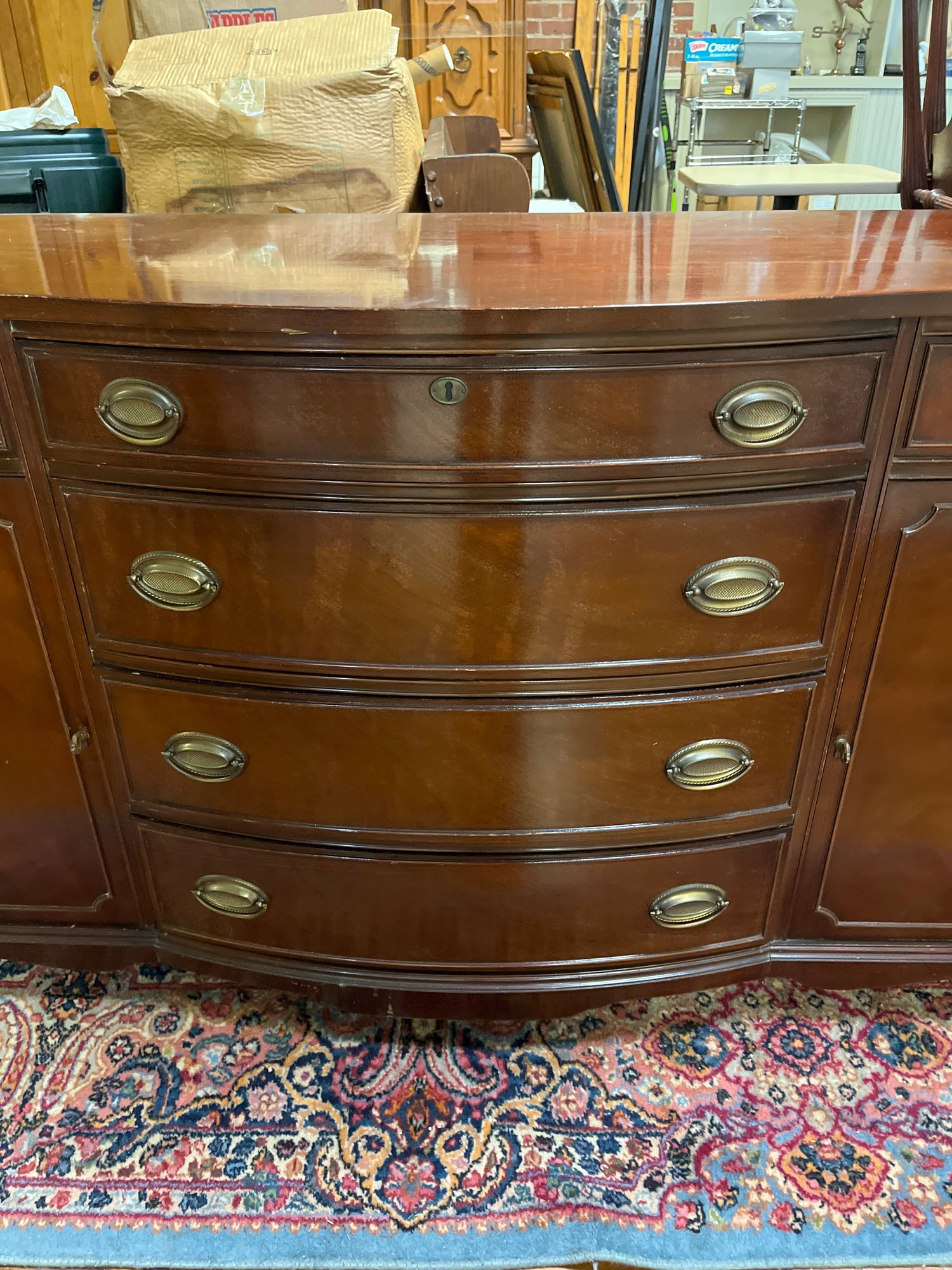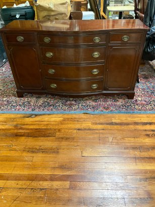 Measurements are 63 inches wide 35 inches tall 21 1/2 inches in depth. See pictures for details some scratches and necks but not bad. Still nice piece.