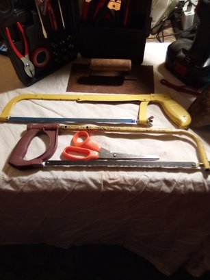 Craftsman Drill With Battery 2 Hacksaws Roadside Kit And Two Old Tools