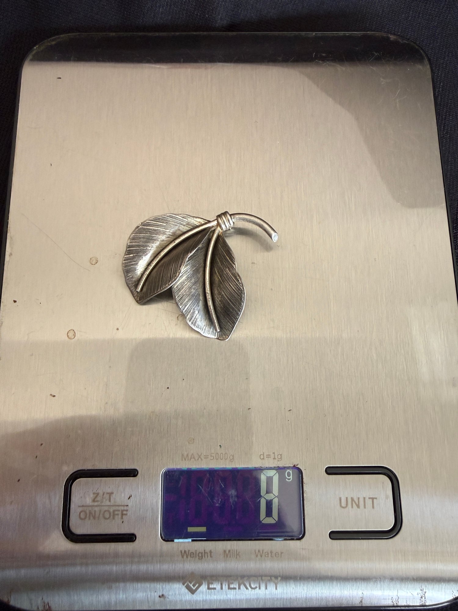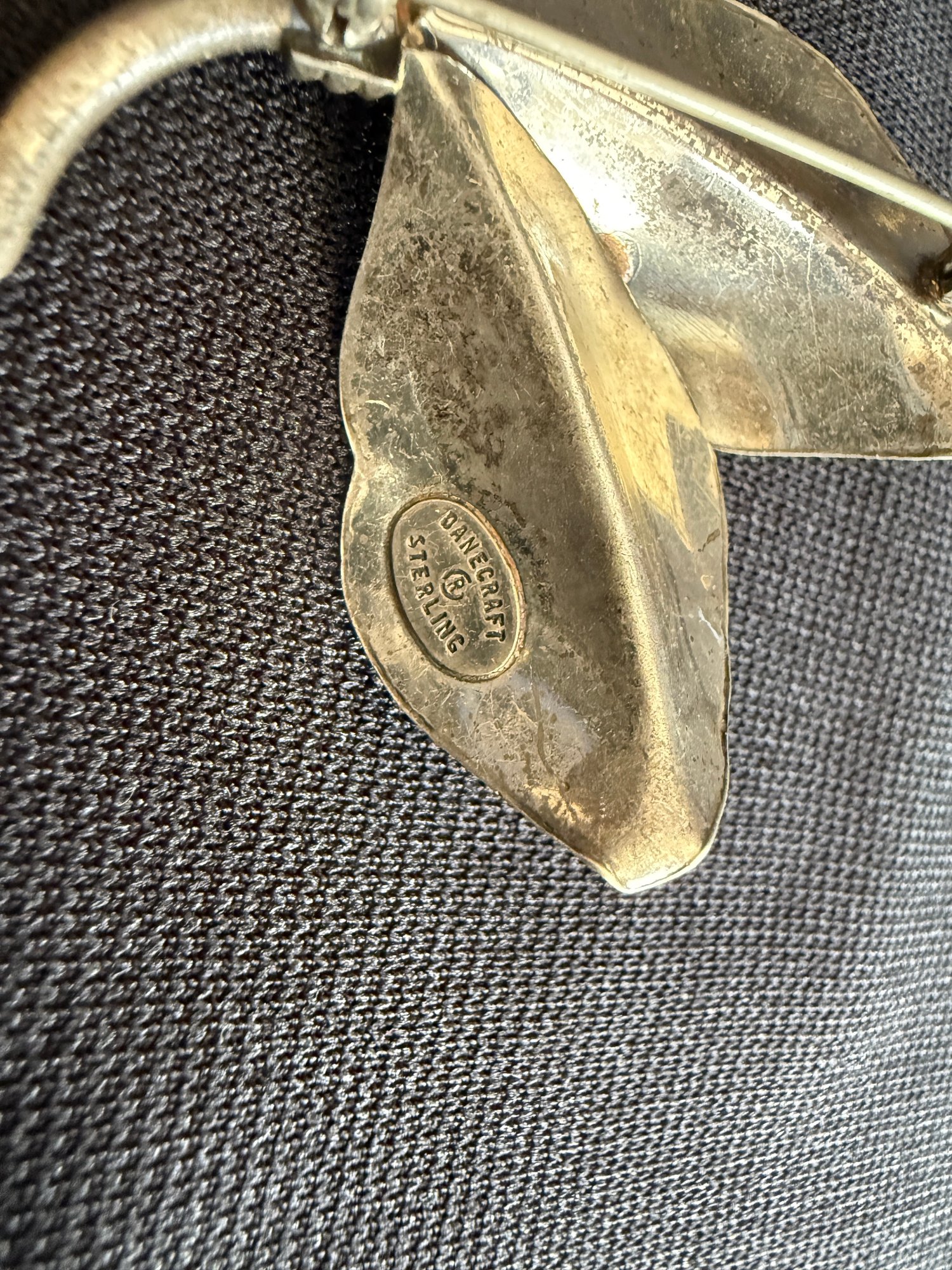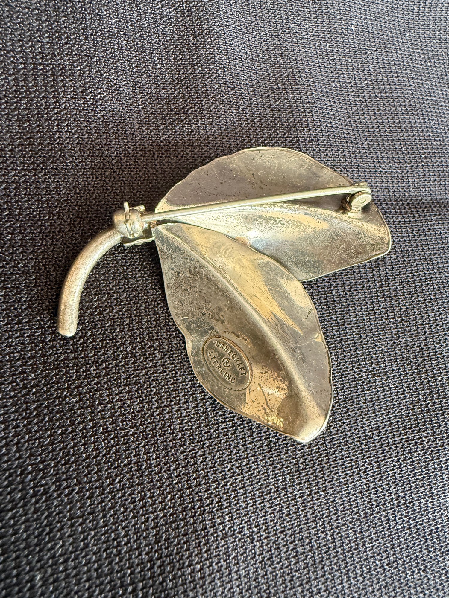 Beautiful vintage (estimated 1950s) sterling silver palm leaf form brooch, by sought-after maker Danecraft.