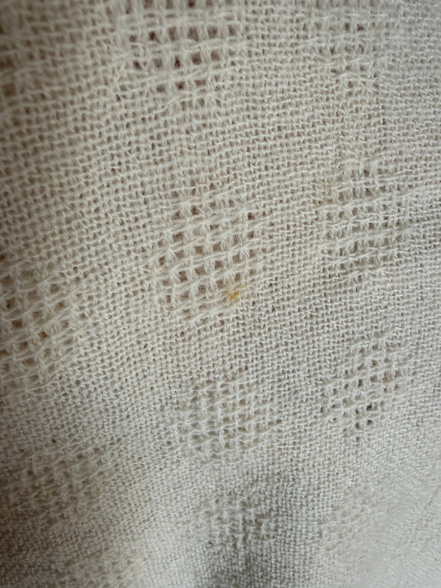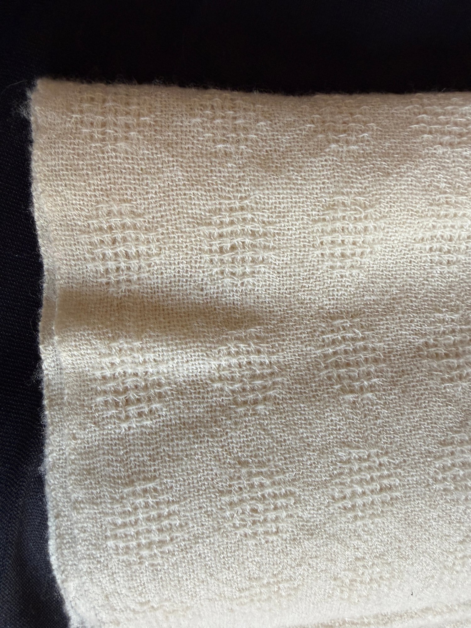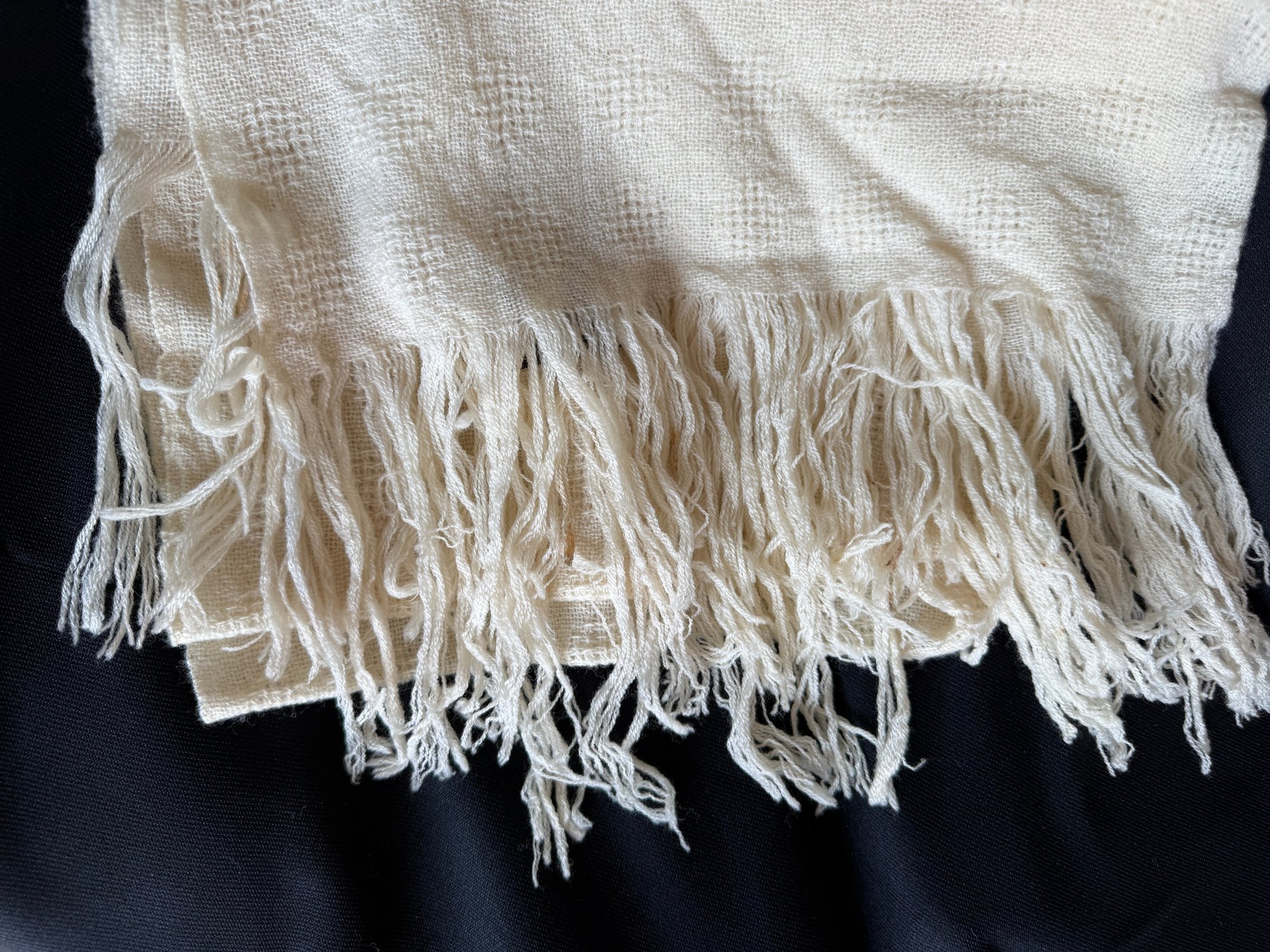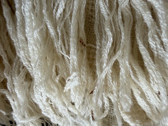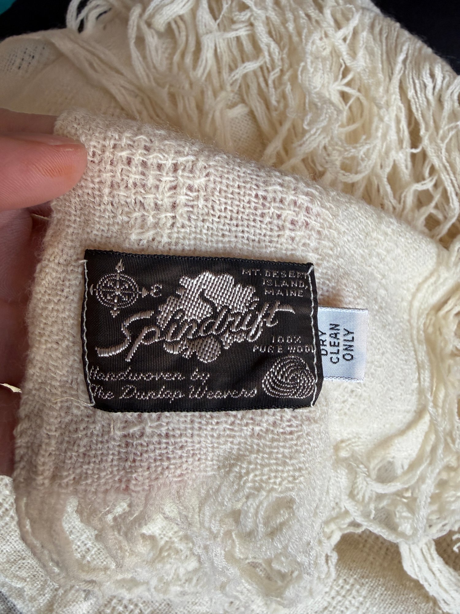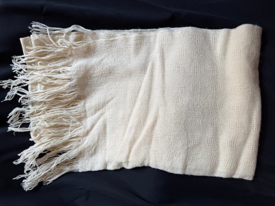 Vintage 1970s era ivory light-spun wool scarf by Dunlop Weavers made in Mt. Desert Island, Maine.