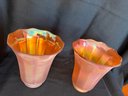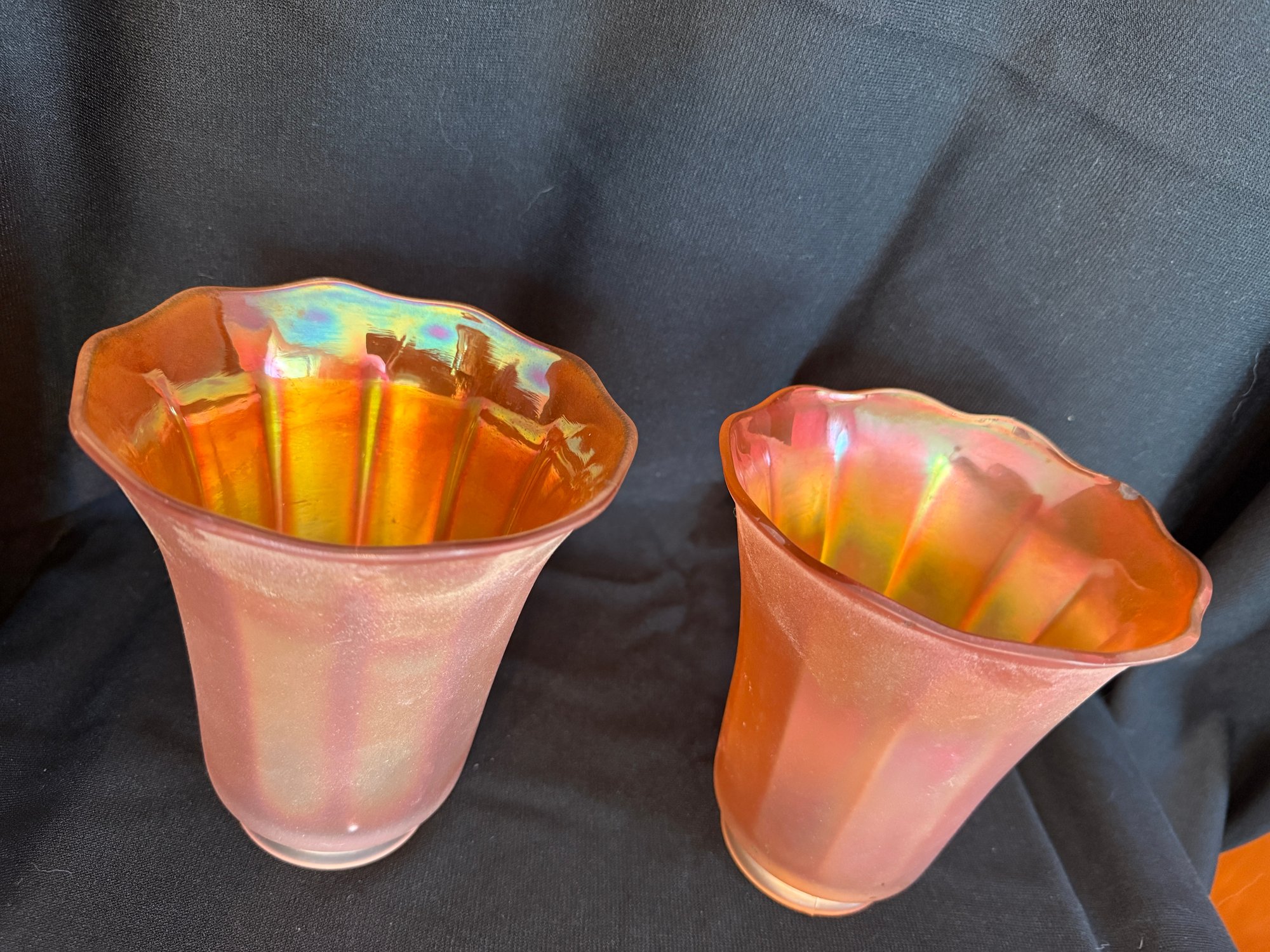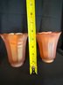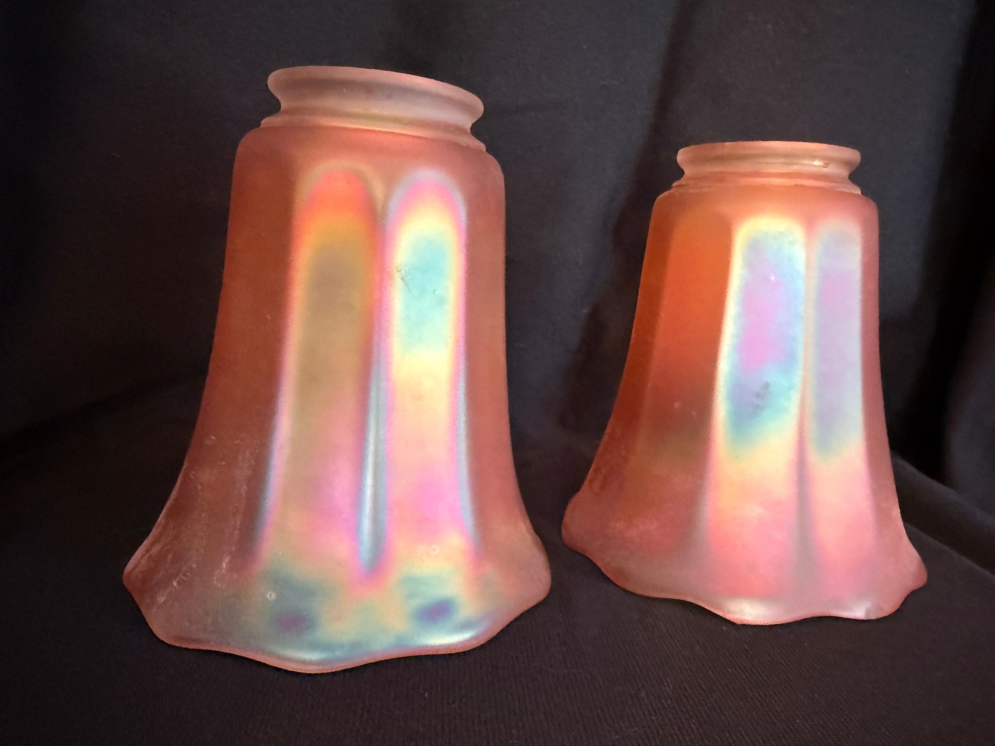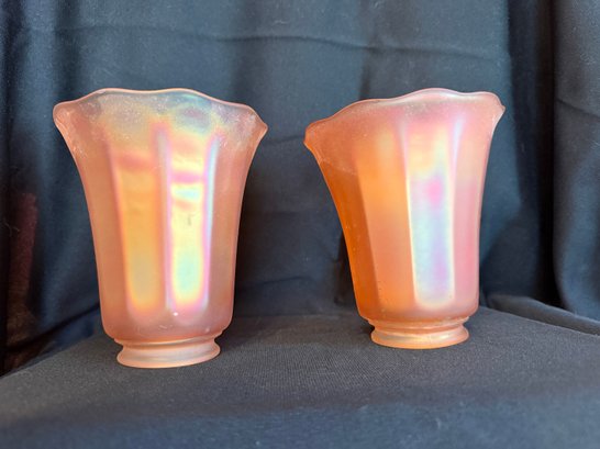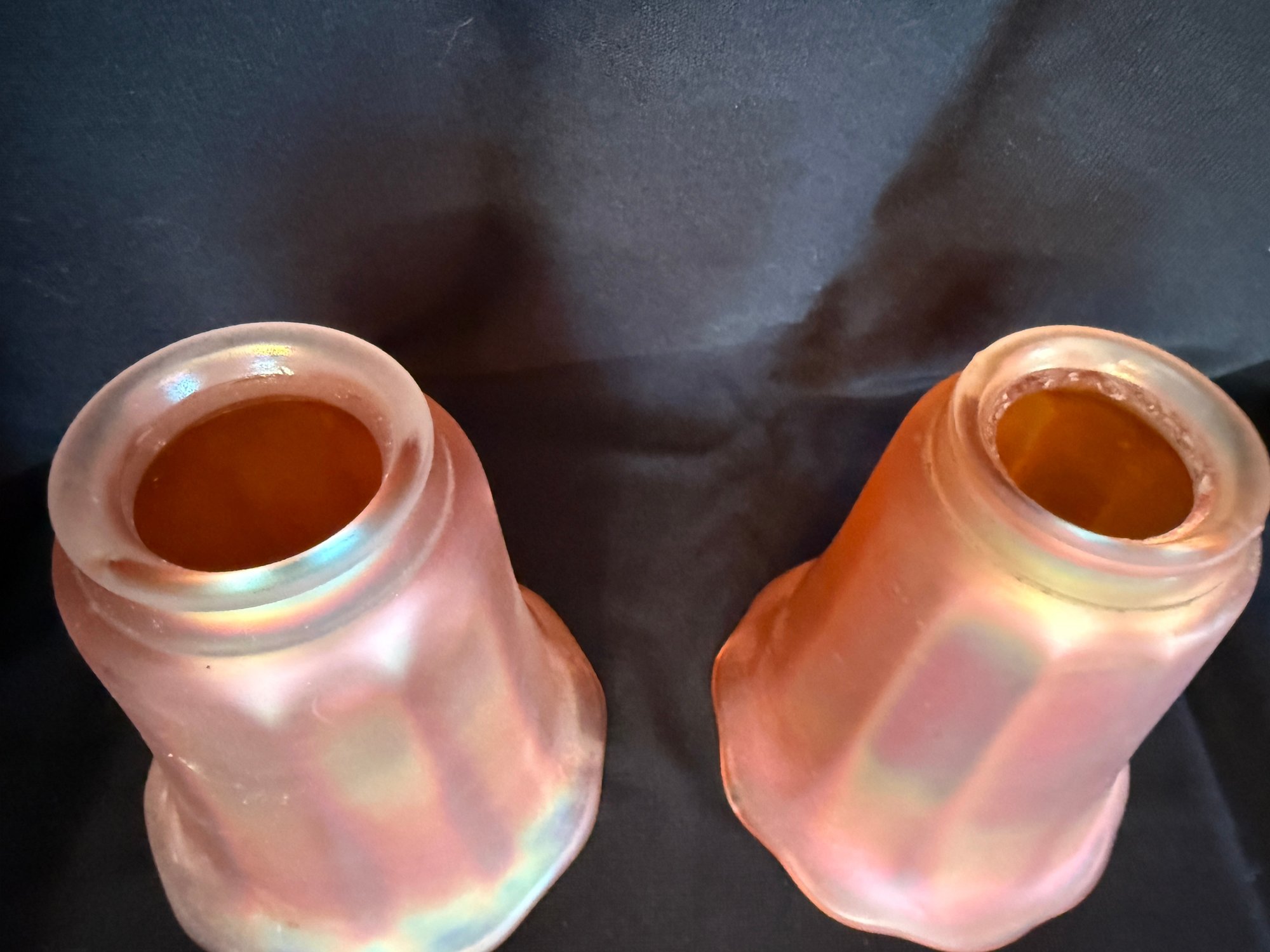 Beautiful frosted iridescent marigold carnival glass light pendant shades.