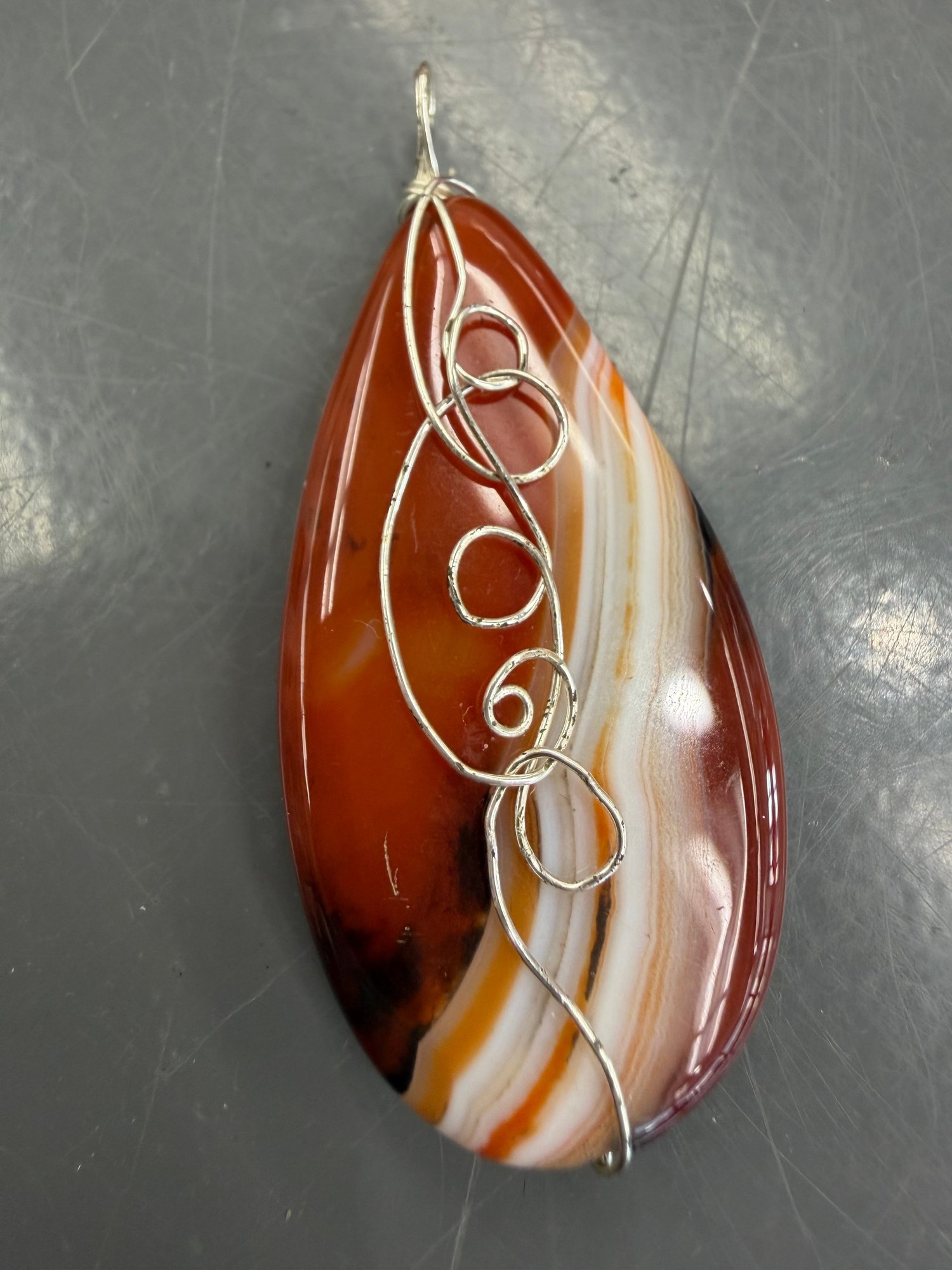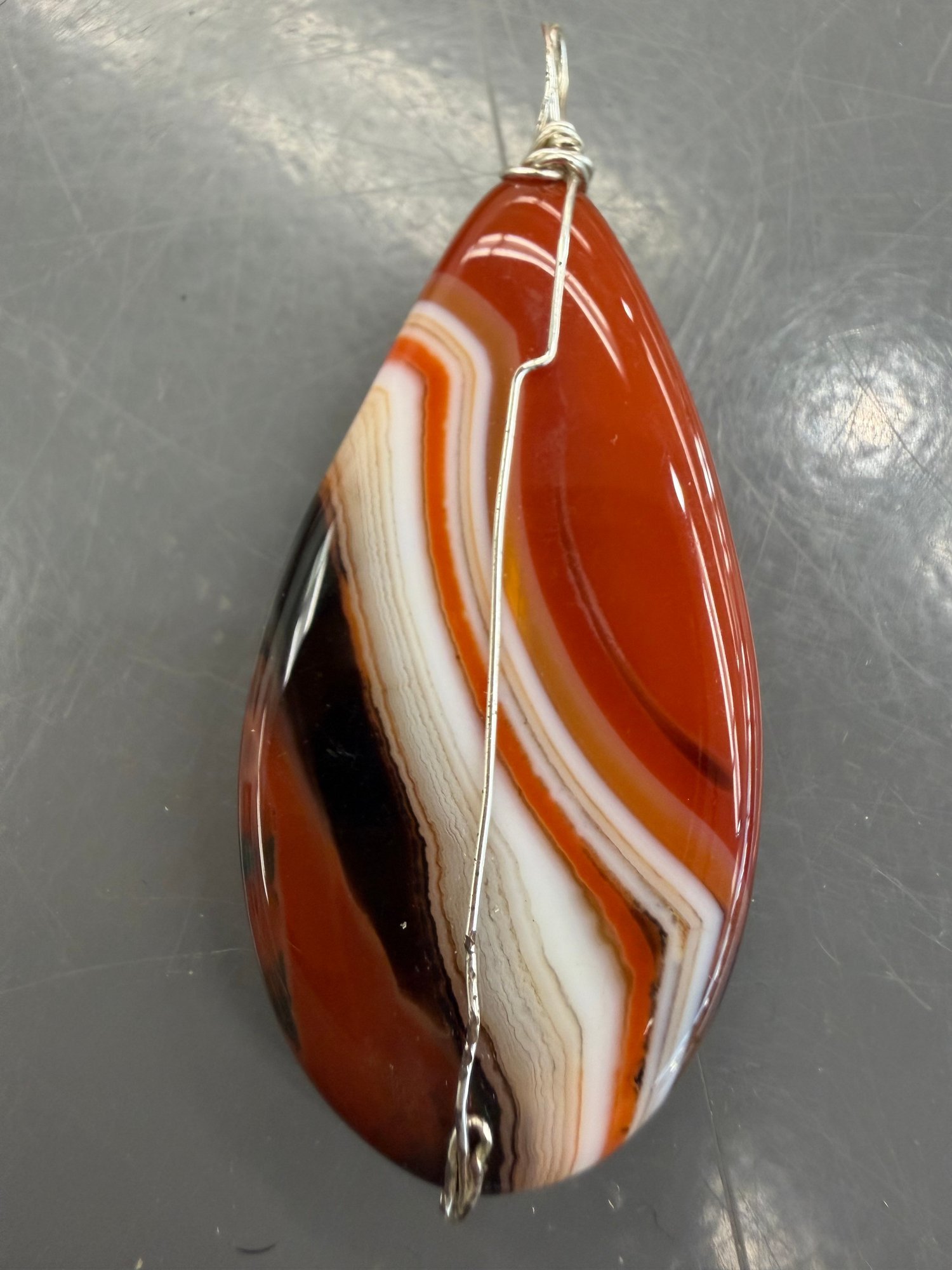 Handcrafted Orange And White Banded Agate Pendant Featuring A Sterling Silver Wire- Wrapped Design
