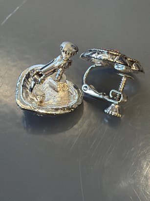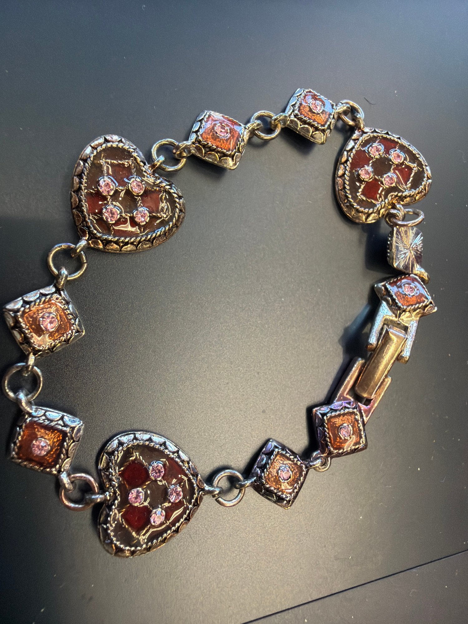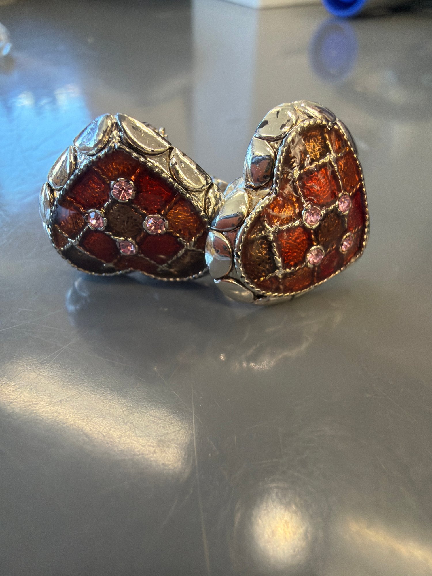 Heart Shaped Enamel Earrings With Screw Backs And Matching Bracelet