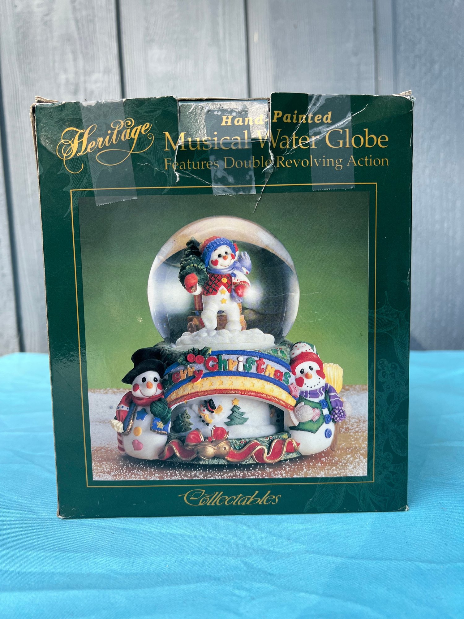 Heritage Handpainted Snowman Musical Water Globe Collectables The box has some wear but the globe has never been used.