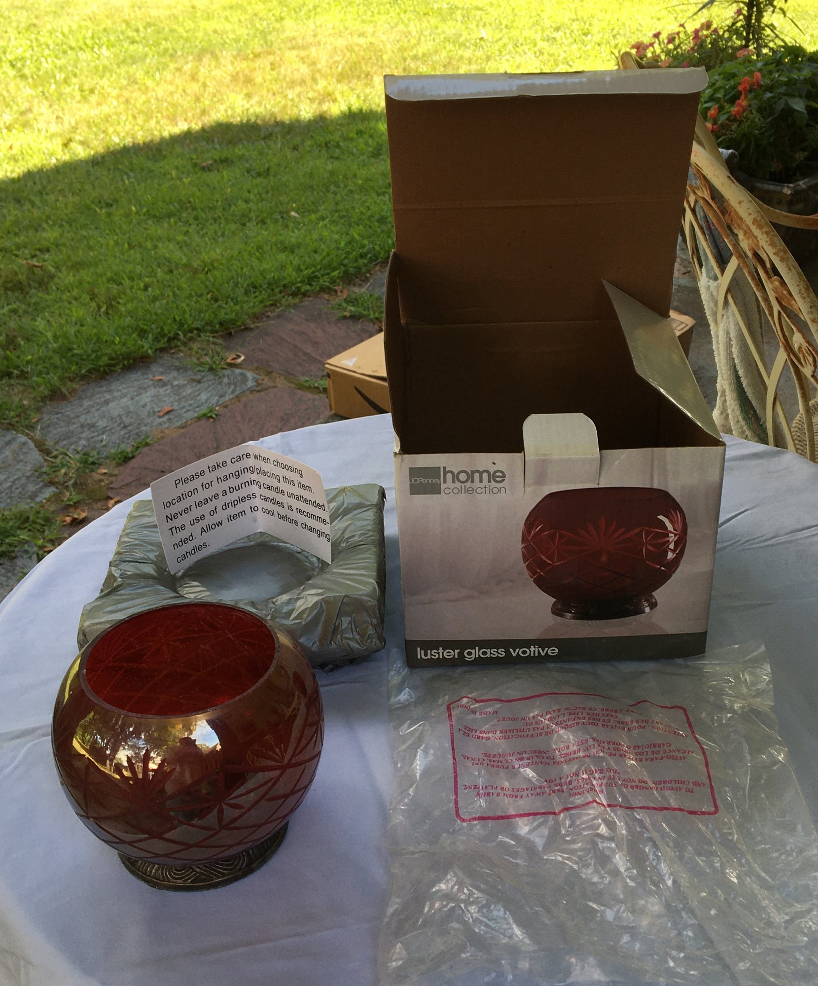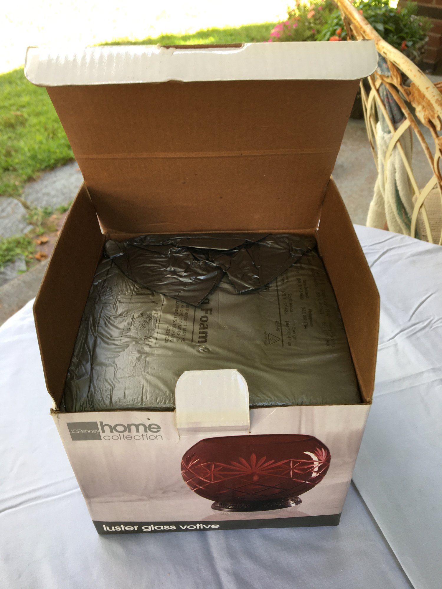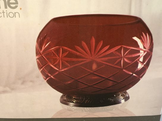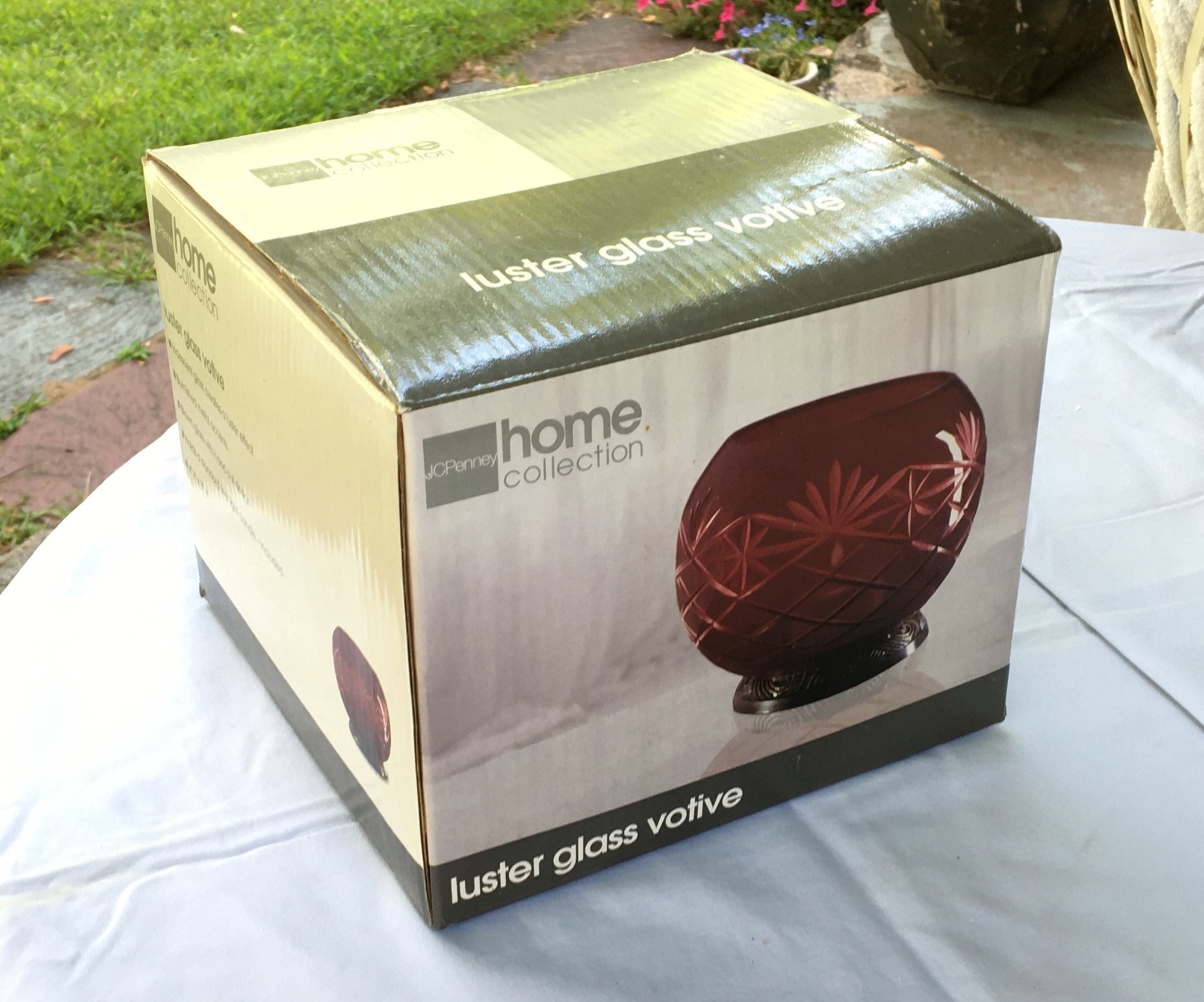 Home Collection Cut Ruby Crystal Luster Glass Candle Votive. - Item was Estate found, in box never used. Only taken out for photo. - Would make great Christmas gift! - See photos for overall condition.