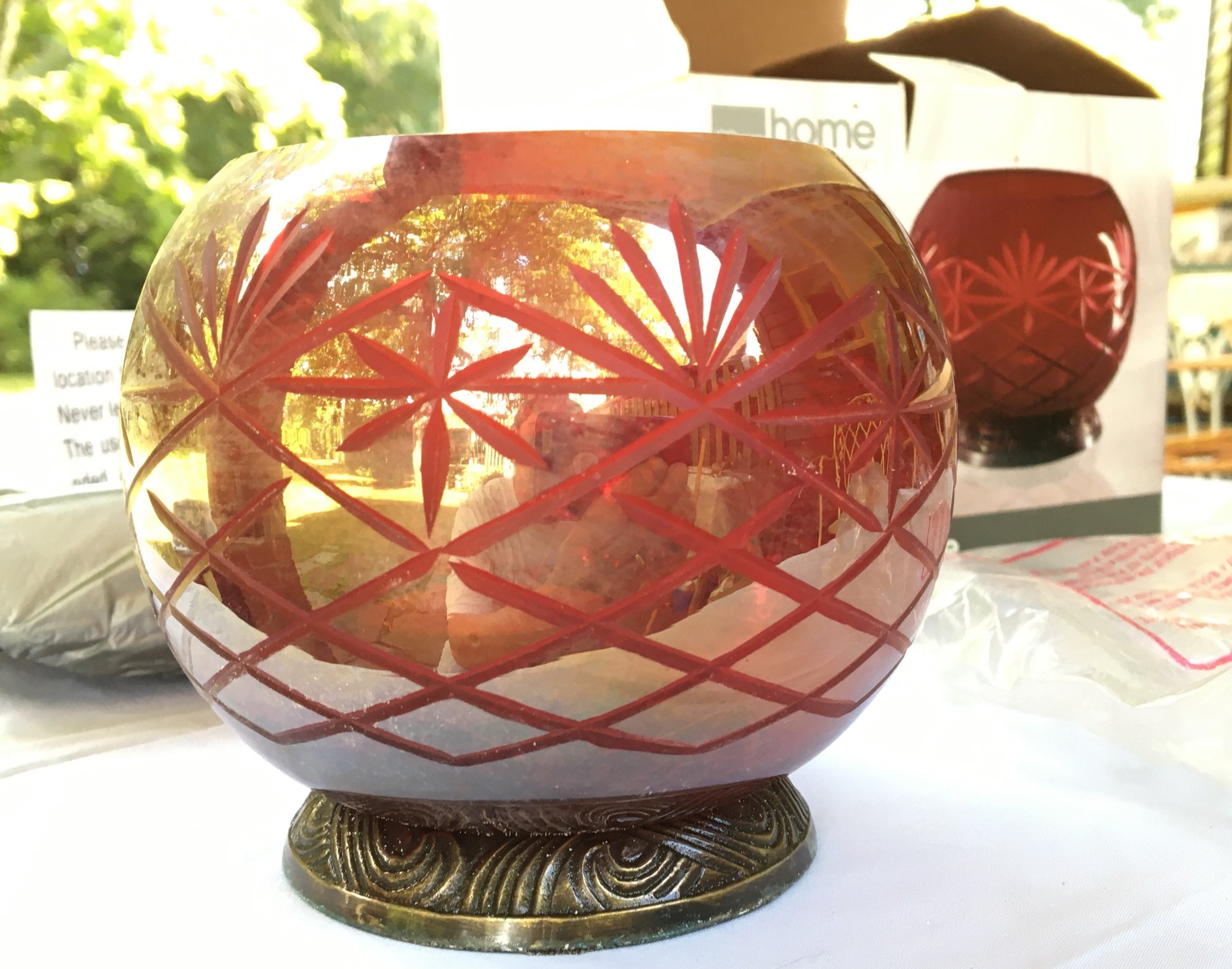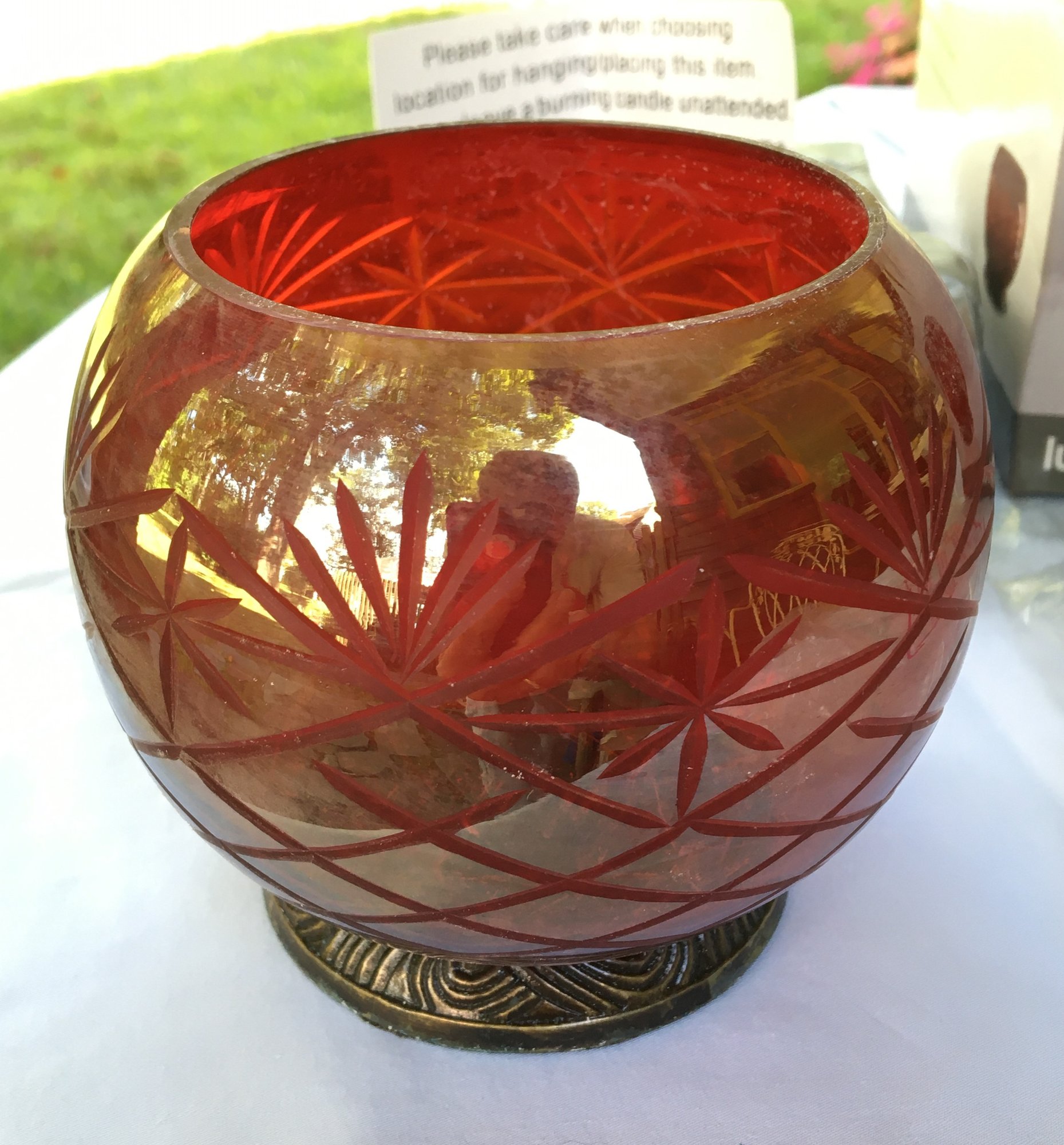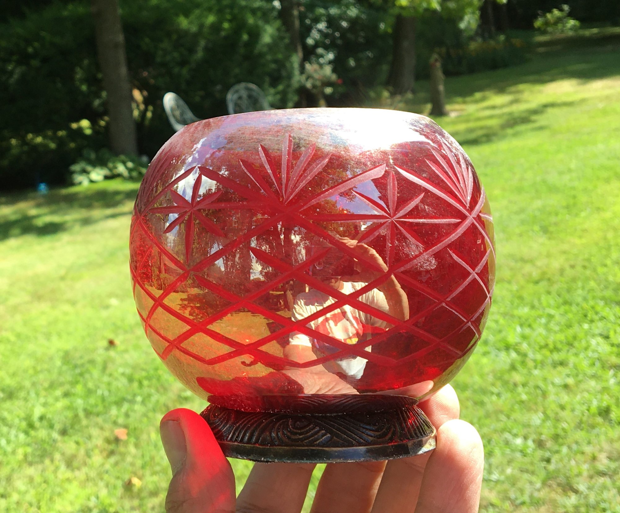Home Collection Cut Ruby Crystal Luster Glass Candle Votive. - Item was Estate found, in box never used. Only taken out for photo. - Would make great Christmas gift! - See photos for overall condition.