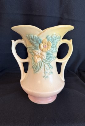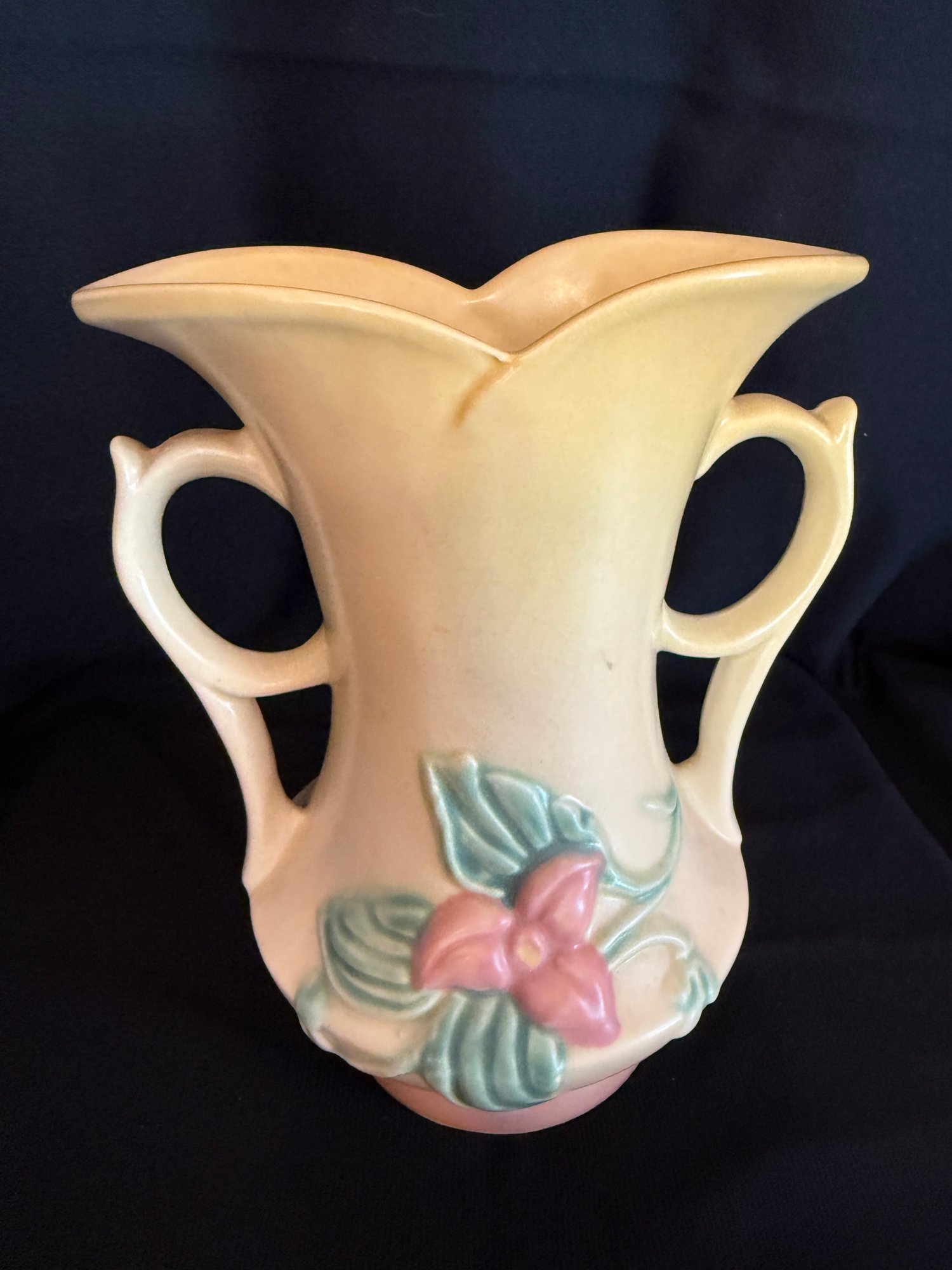 Beautiful Hull Pottery double-handled Wildflower pattern vase, 7.5".