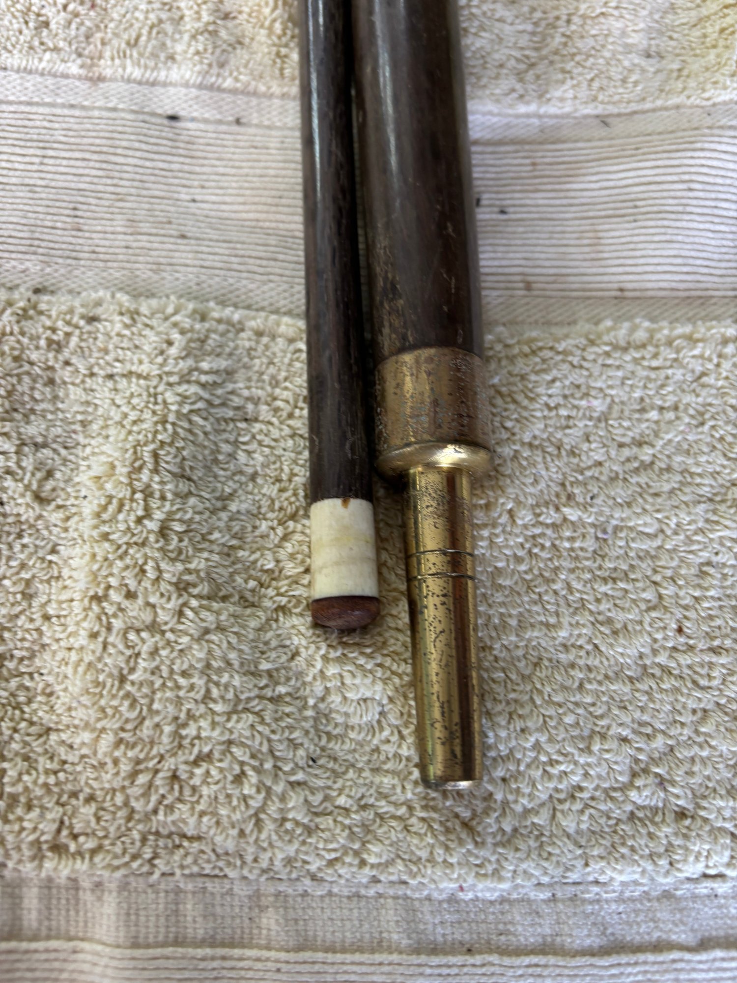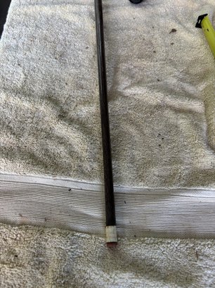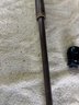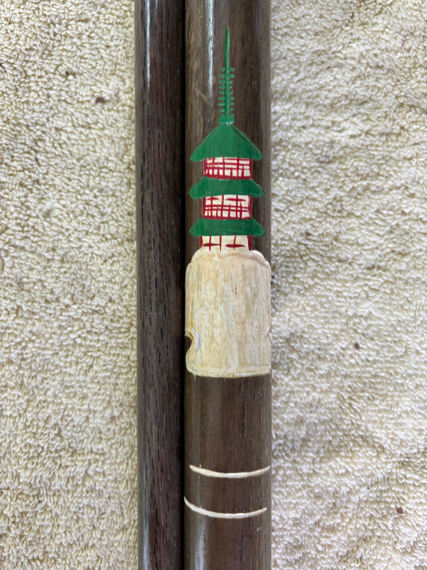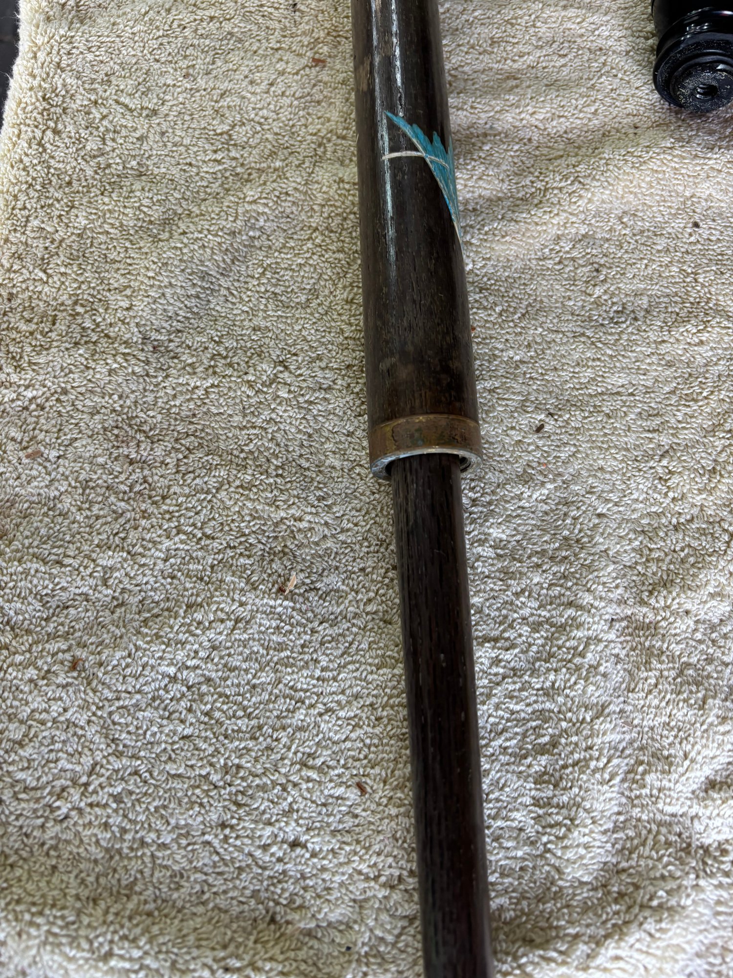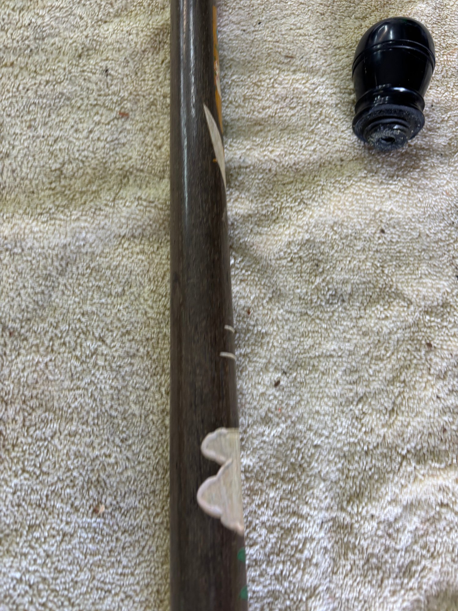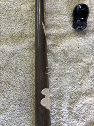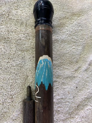 Japanese themed combo walking stick/pool cue with cap needs minor repair small plastic threaded spacer needs to be unscrewed and re-glued so cue can slide into handle