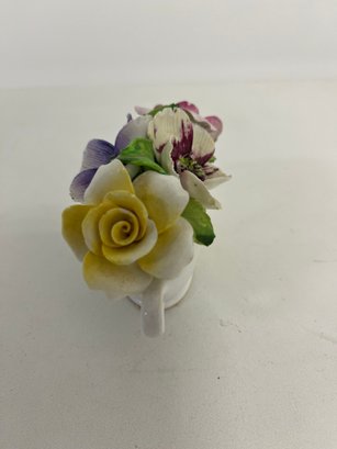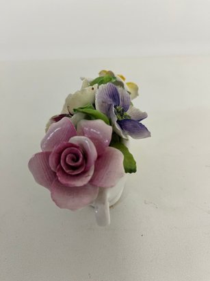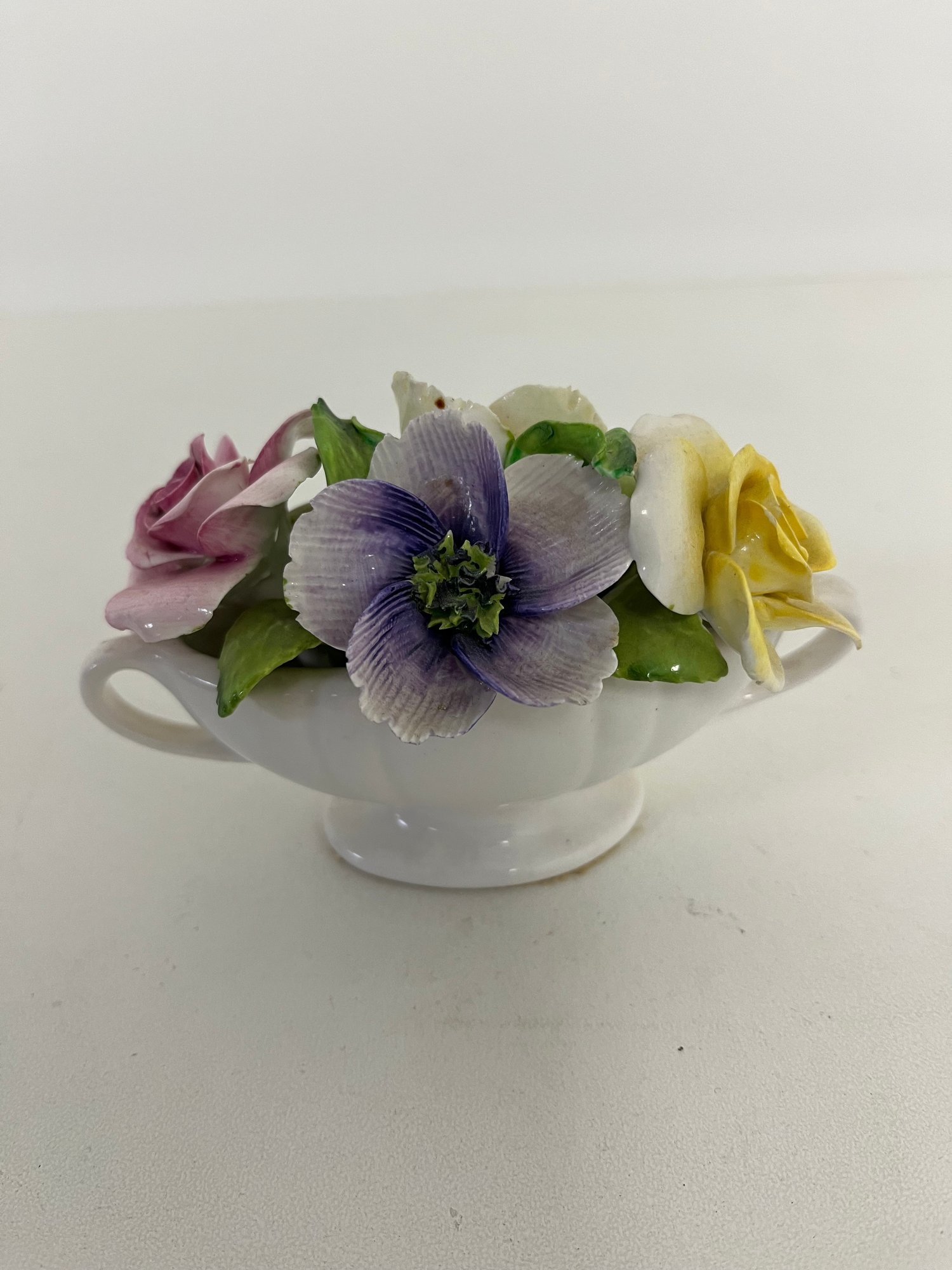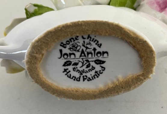 Jon Anton bone china flower vase ornament. See photos for details and imperfections. Size: 5” wide x 3” high.