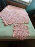 pink and beige crocheted Tablecloth, with centerpiece