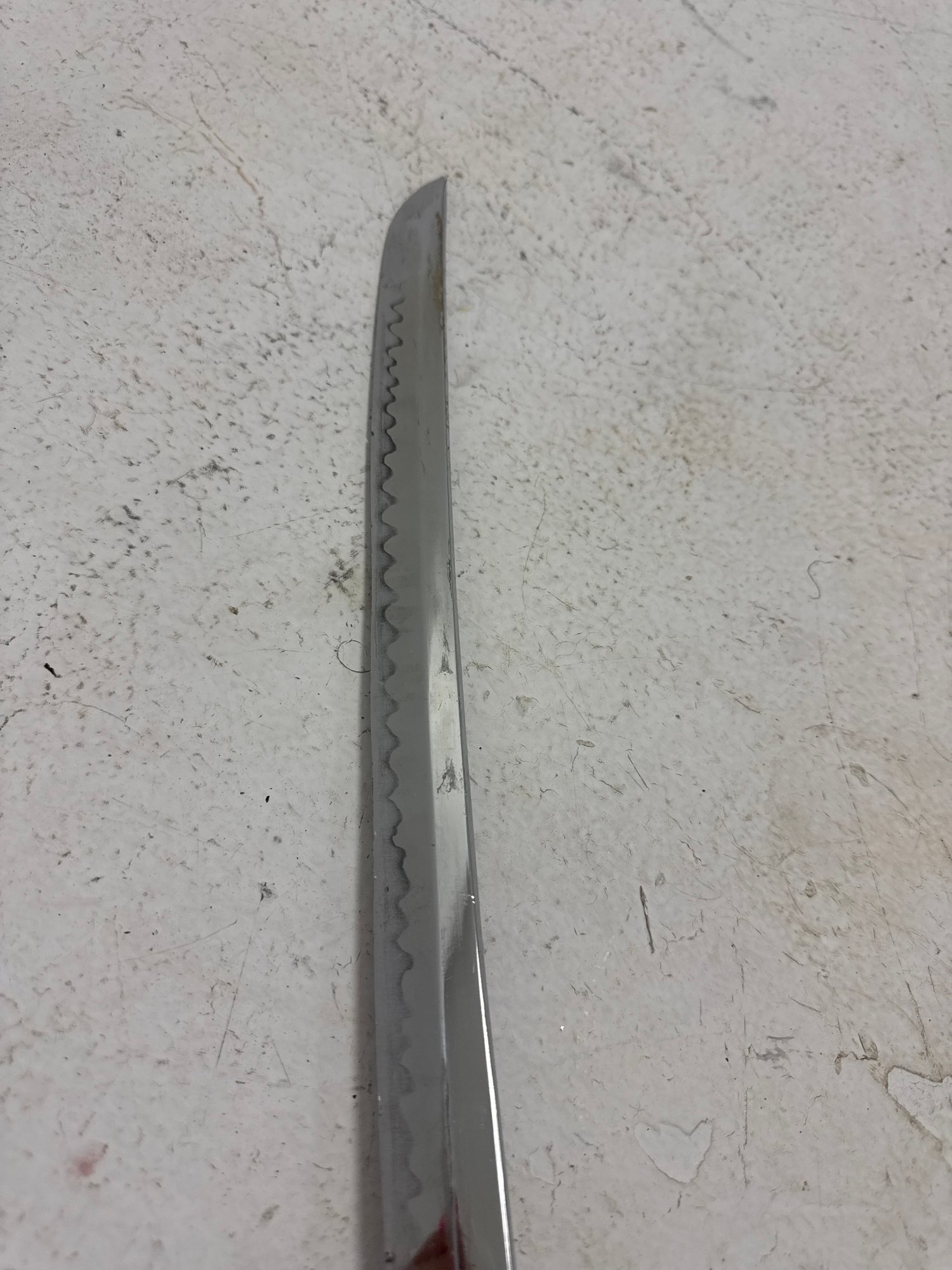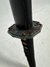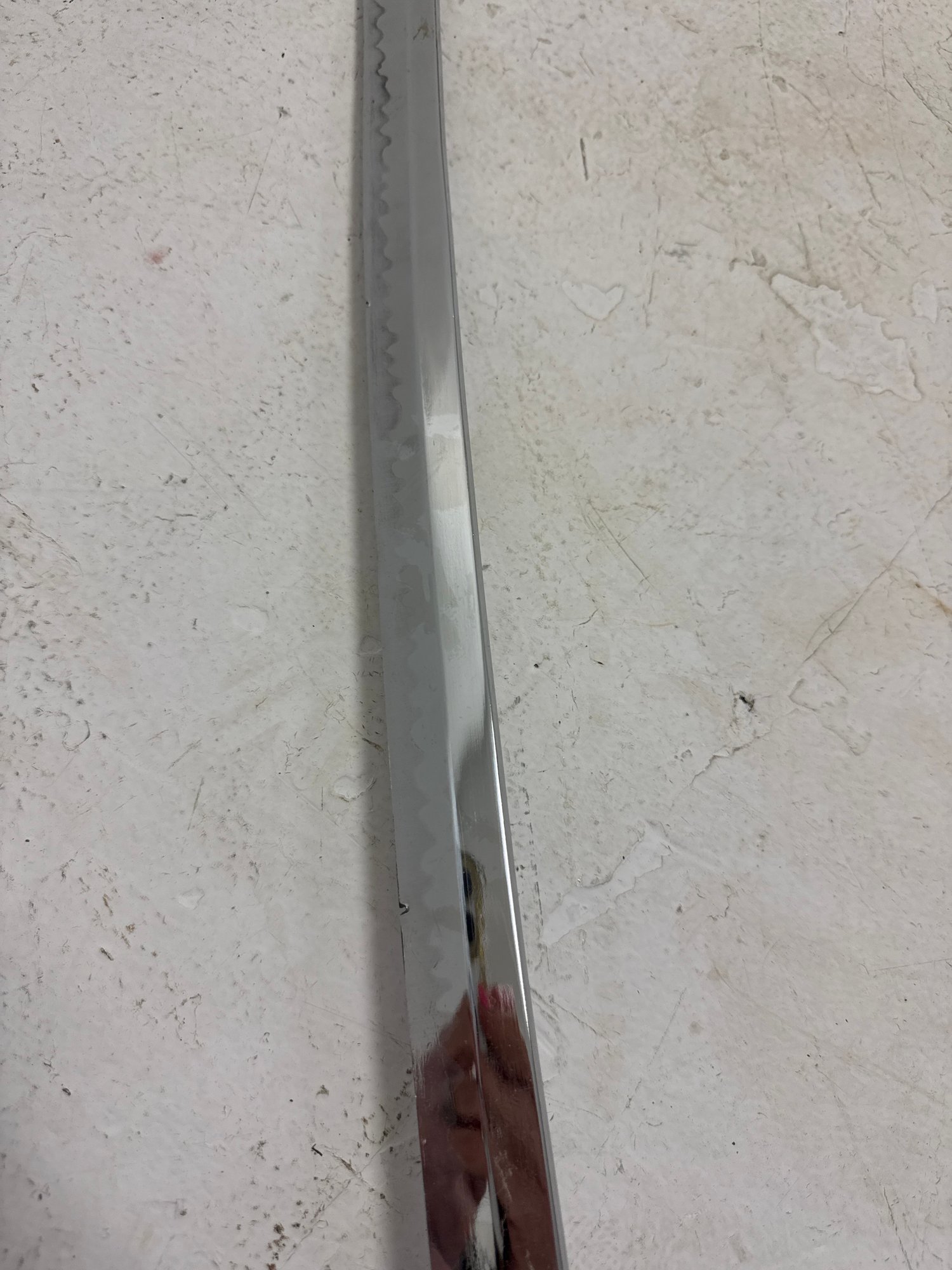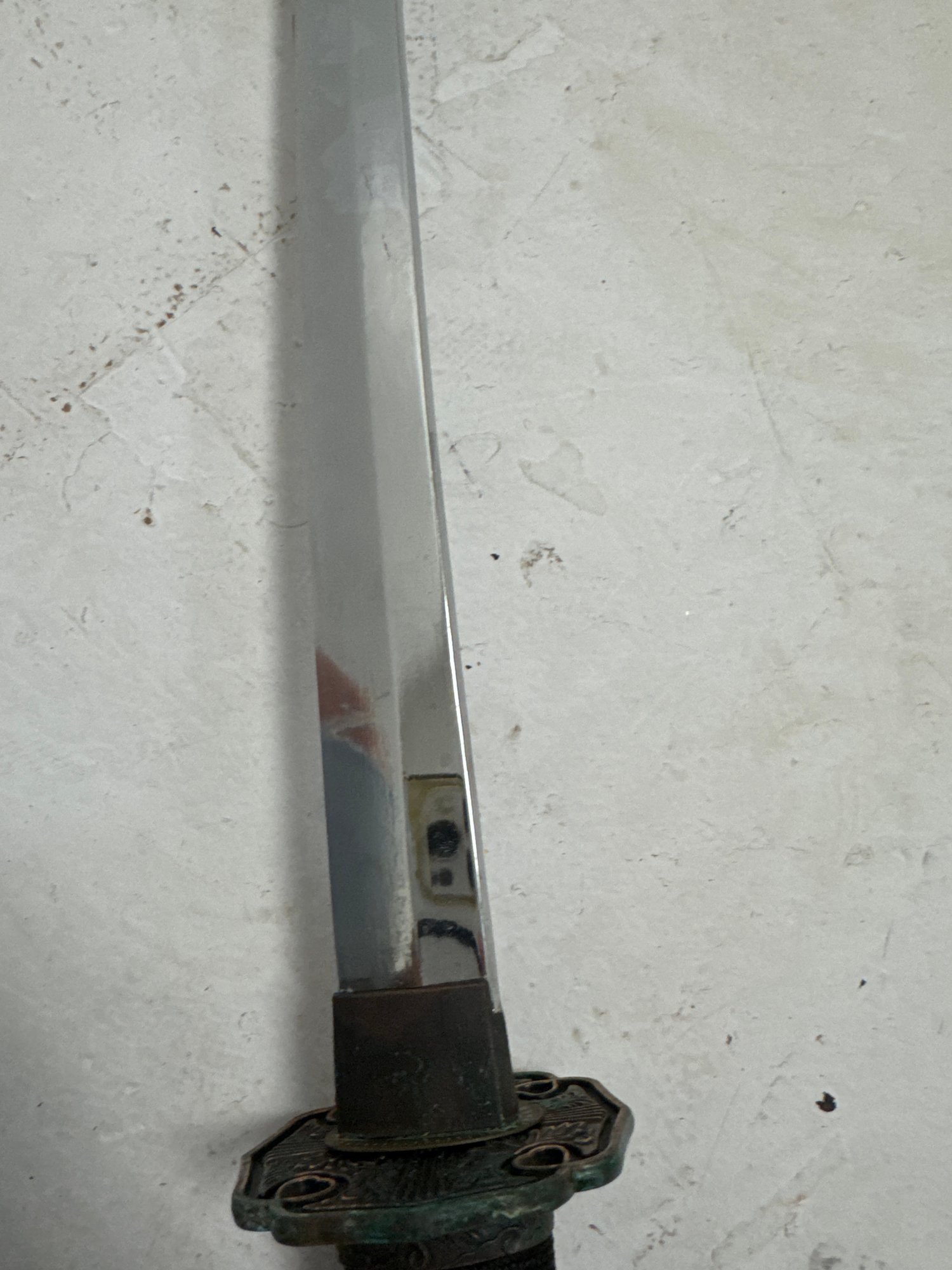 Katana, A Type Of Japanese Samurai Sword, Featuring A Traditional Black Handle Wrap Over A White Rayskin Textu
