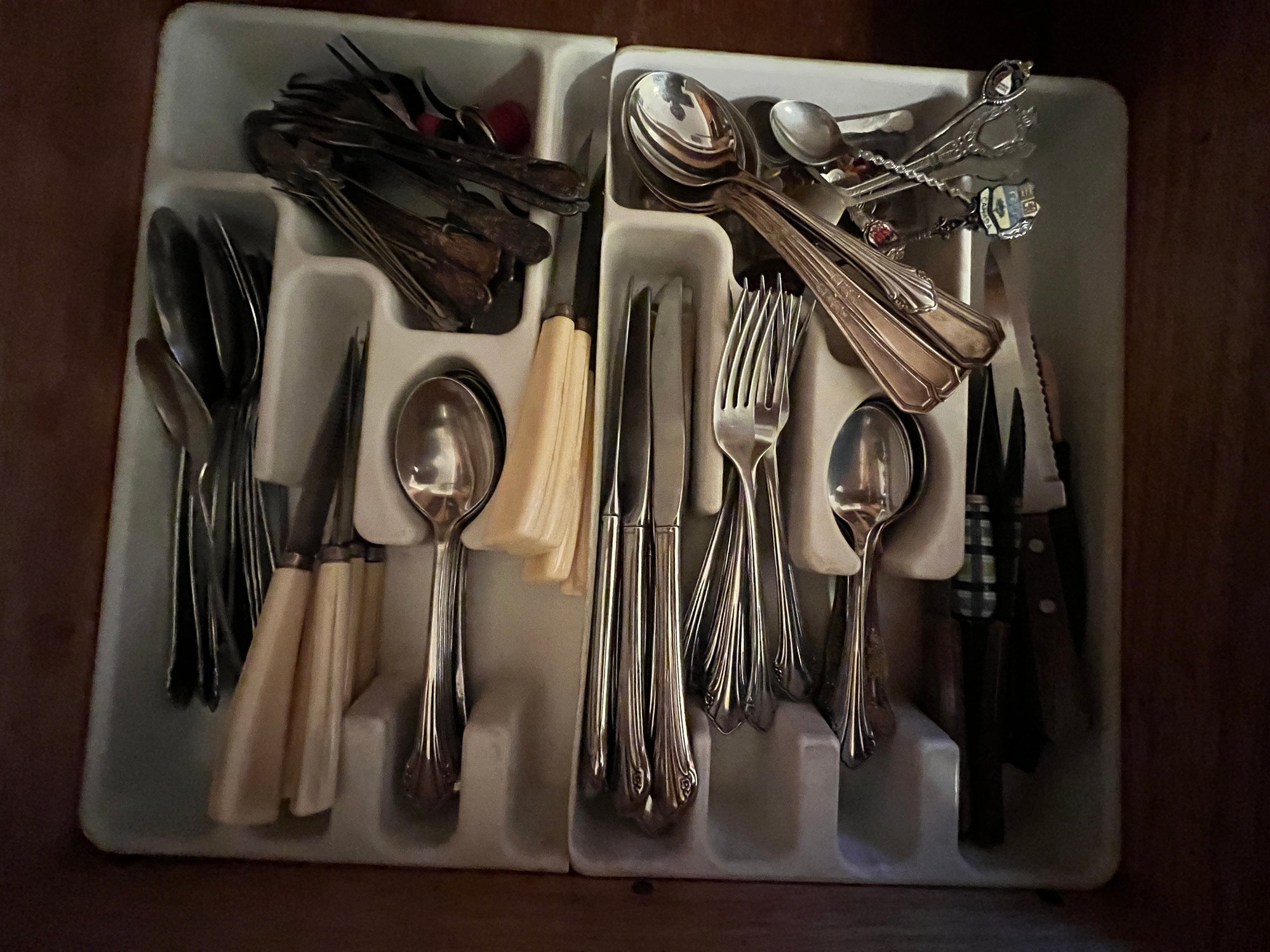 kitchen flatware, with knives, spoons, forks, iced tea spoons, and more