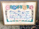 Large Framed Very Old (1920s-1940s) Hand Made Needlepoint "Home Sweet Home" type Swiss Traditional Saying. Measures 26" x 20". - See photos for overall condition.