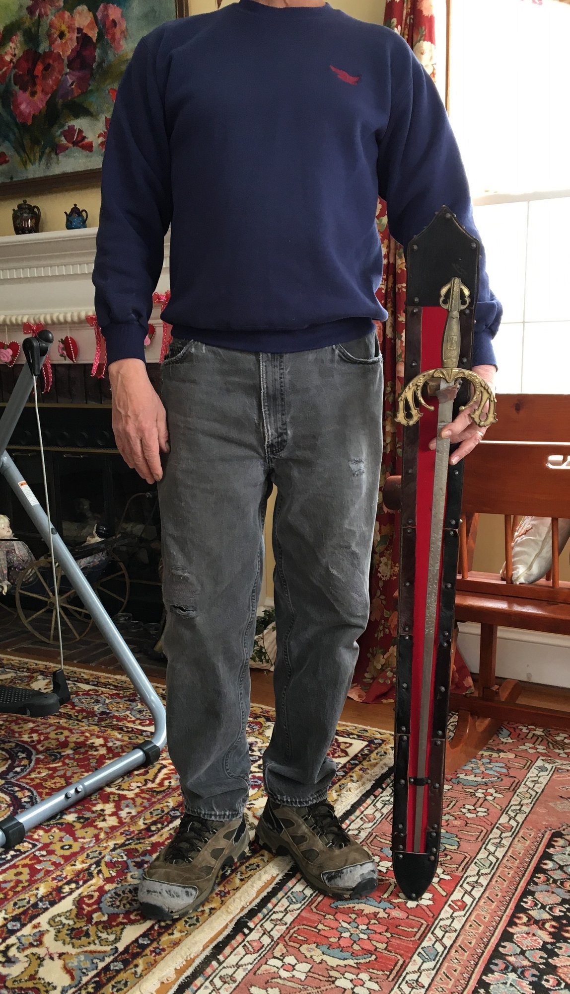 Large Old 44" Tall Ornate Medieval Sword Mount Wall Hanging Display. - Estate found condition, decent with one leather loop on the display needing stitching, otherwise great shape and ready to display. - It is made of Steel and Brass, with custom wood and leather display. It is approximately 44" tall (long).