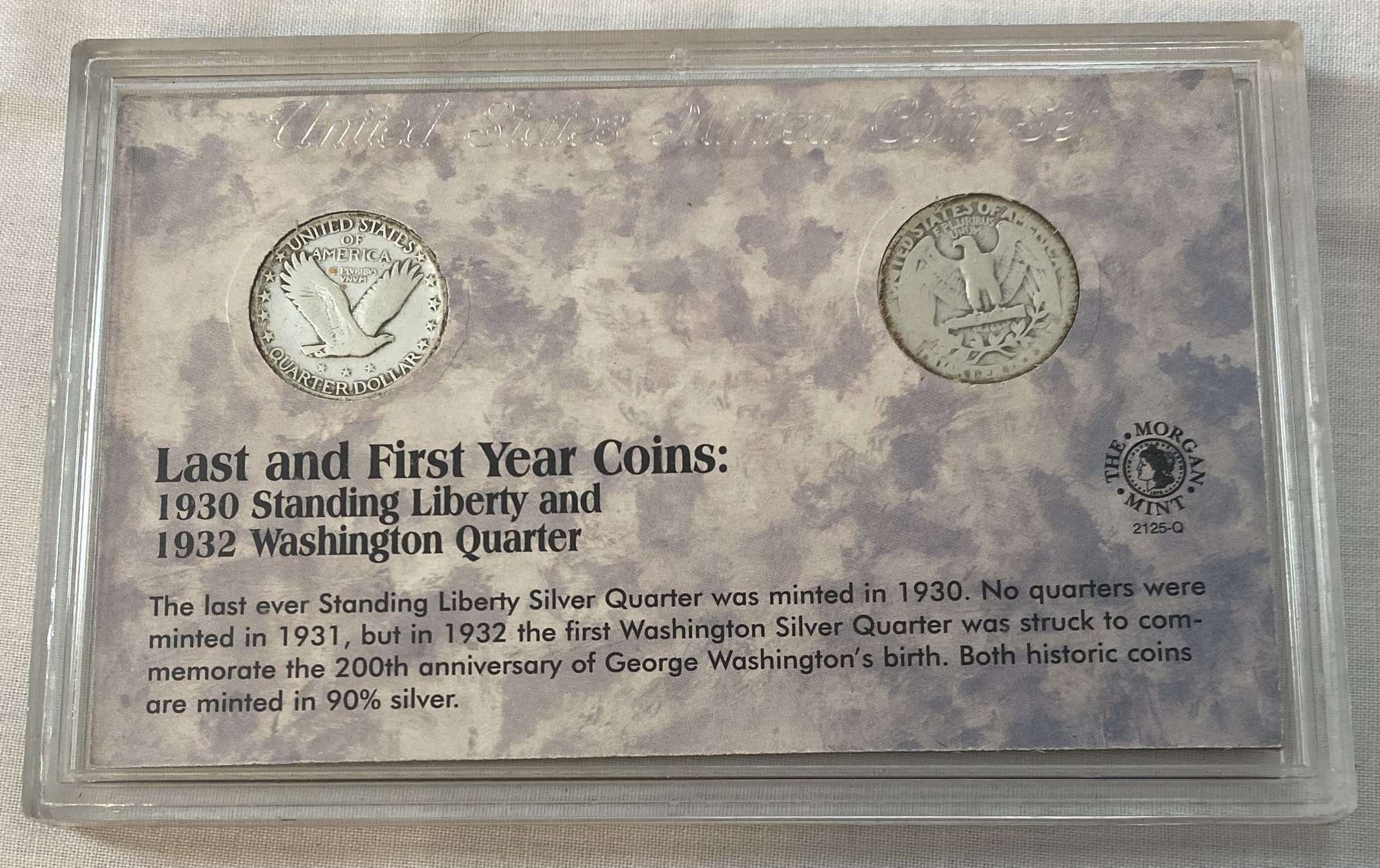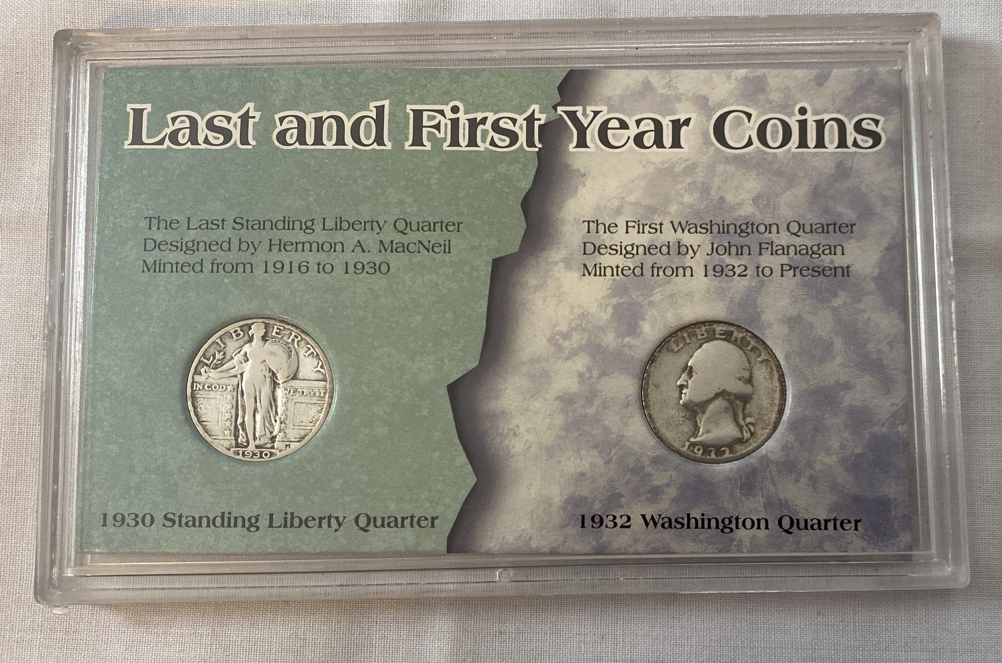 Last and First Year Coins 1930 Silver Standing Liberty Quarter & 1932 Silver Washington Quarter 90% Silver