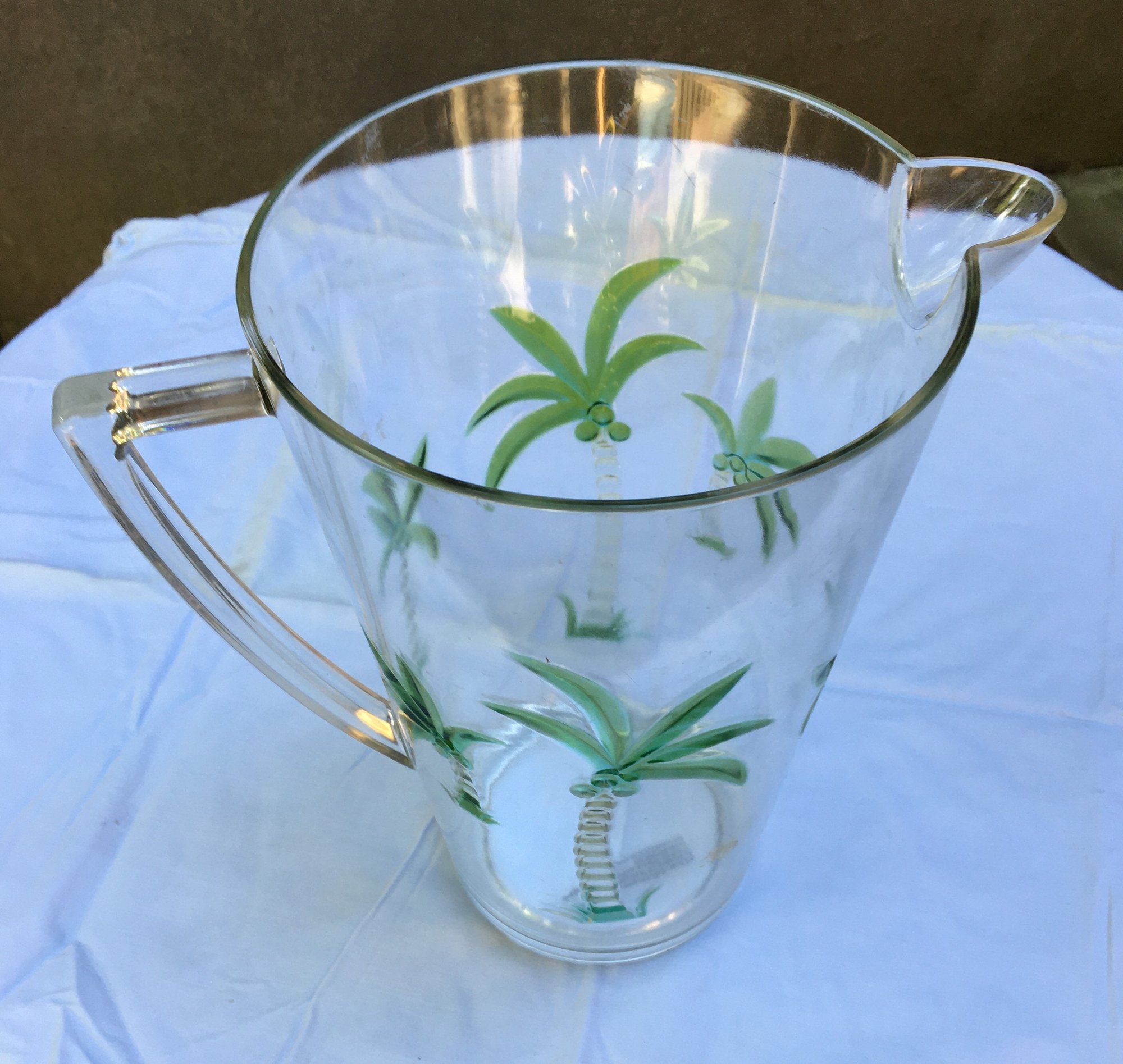 Leadingware Palm Tree Design Cinco De Mayo Margarita Beverage Pitcher. - The Pitcher was Estate found, with no chips or cracks, looks hardly used, was displayed in Cabinet. - Can be used or displayed in Retro Kitchen or collection. - See photos for overall condition.