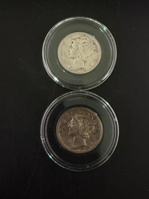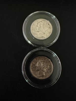 Lot Of 2 Mercury Silver Dimes 1943, 1943-S