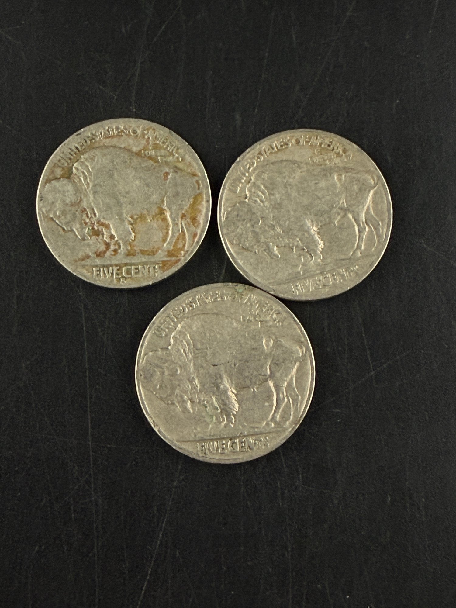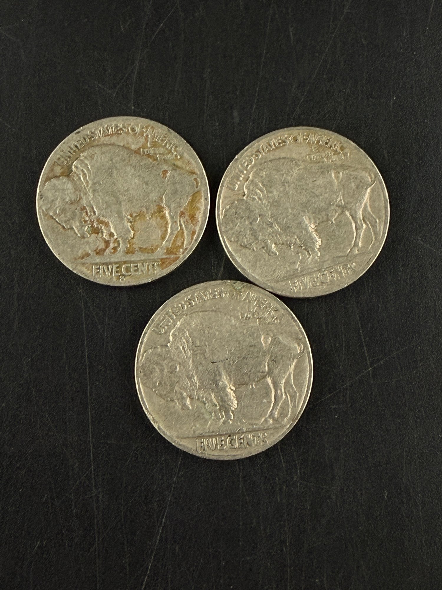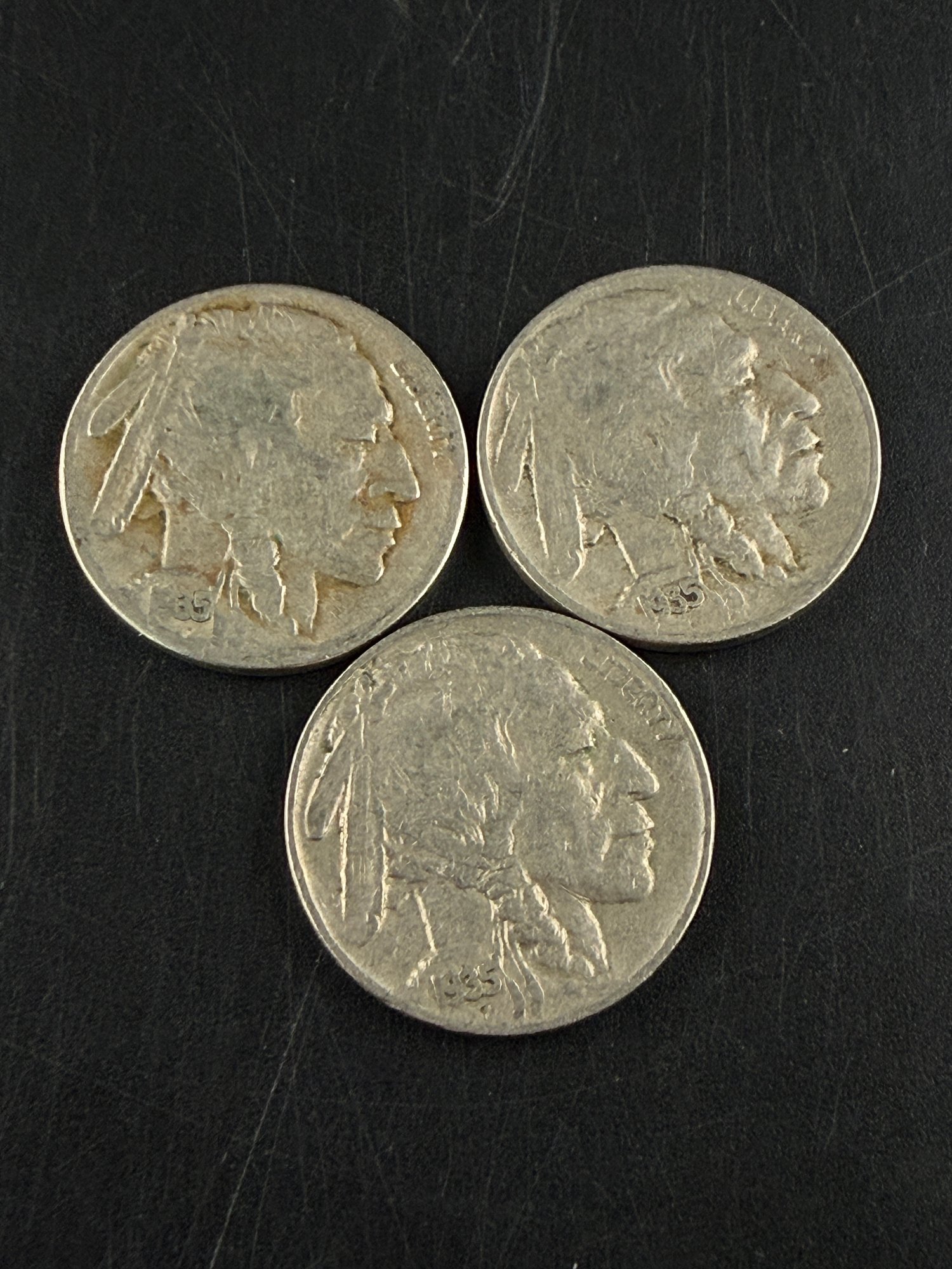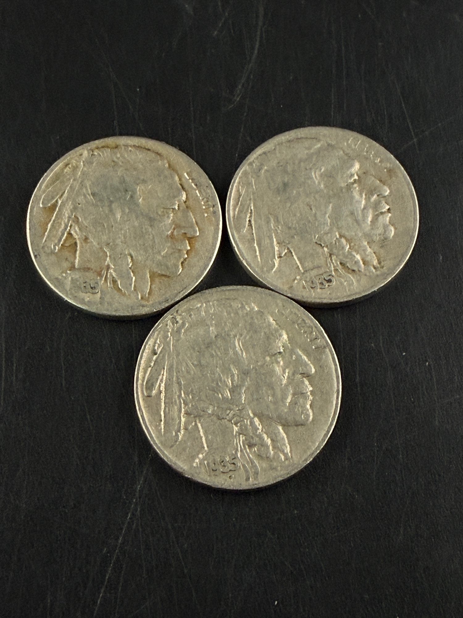 Lot Of 3 Buffalo Nickels 1935, 1935-D, 1935-S