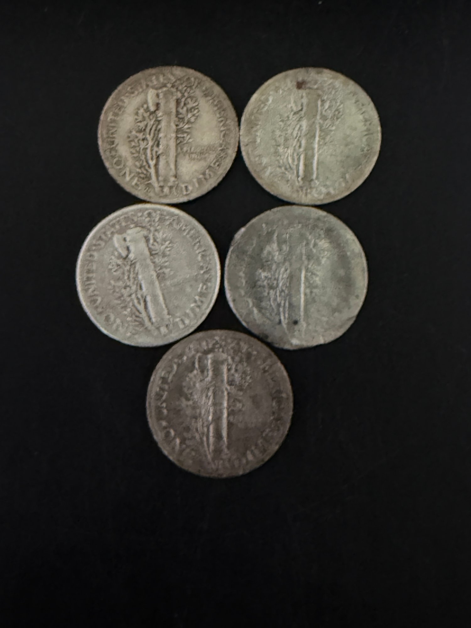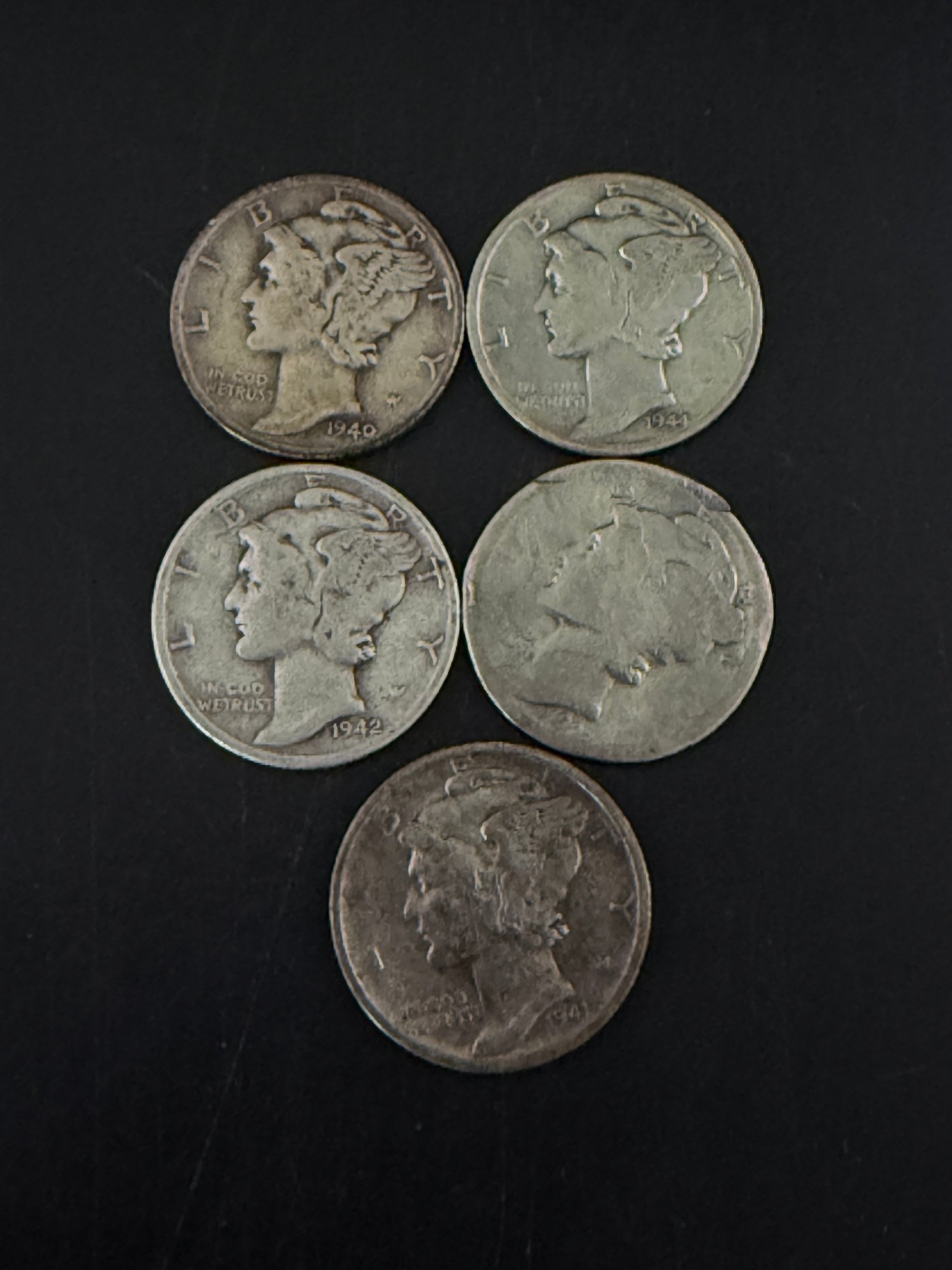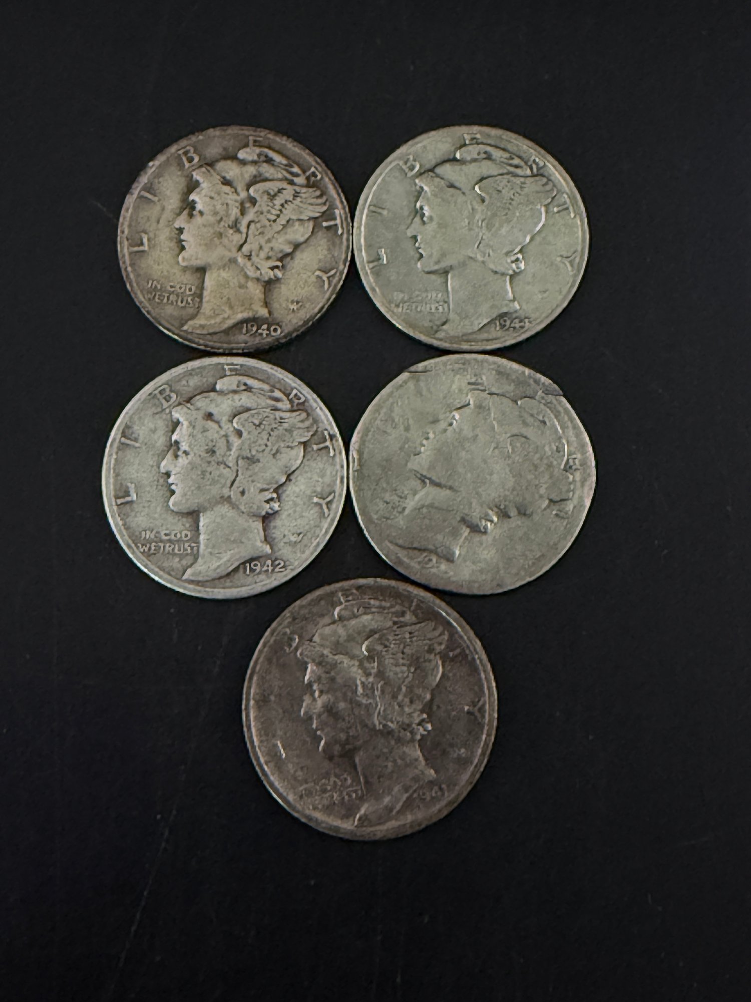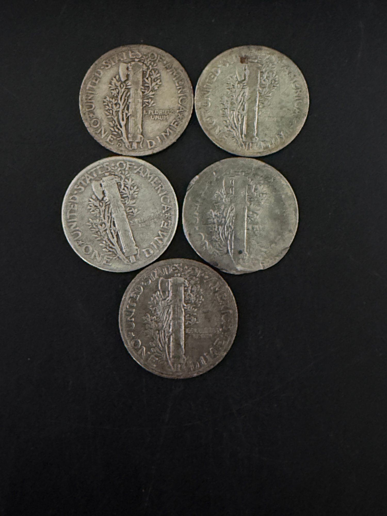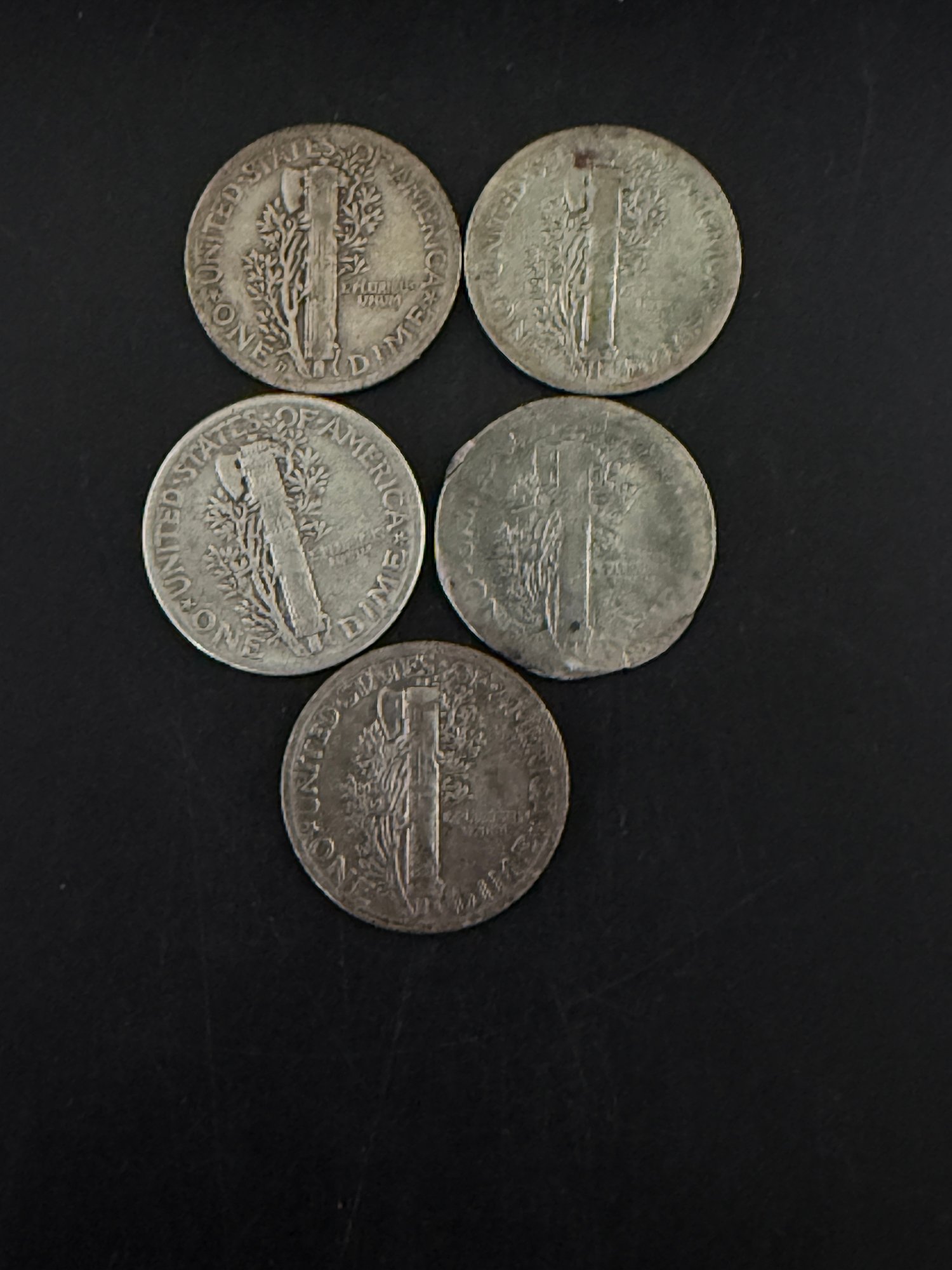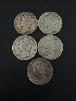 Lot Of 5 Mercury Silver Dimes Miscellaneous Dates