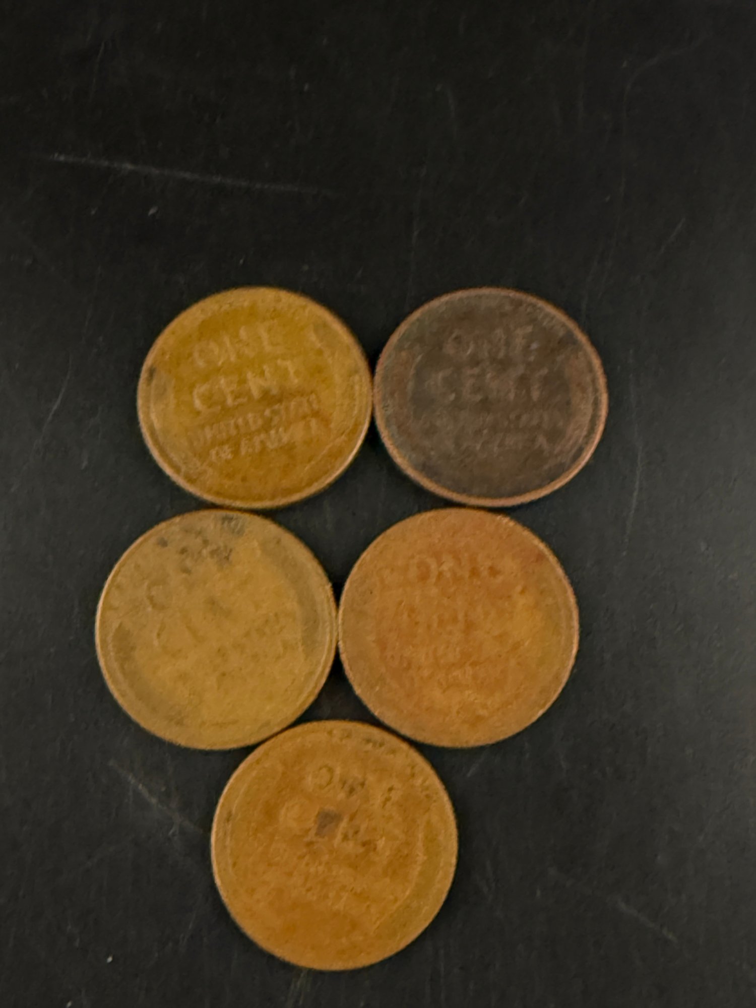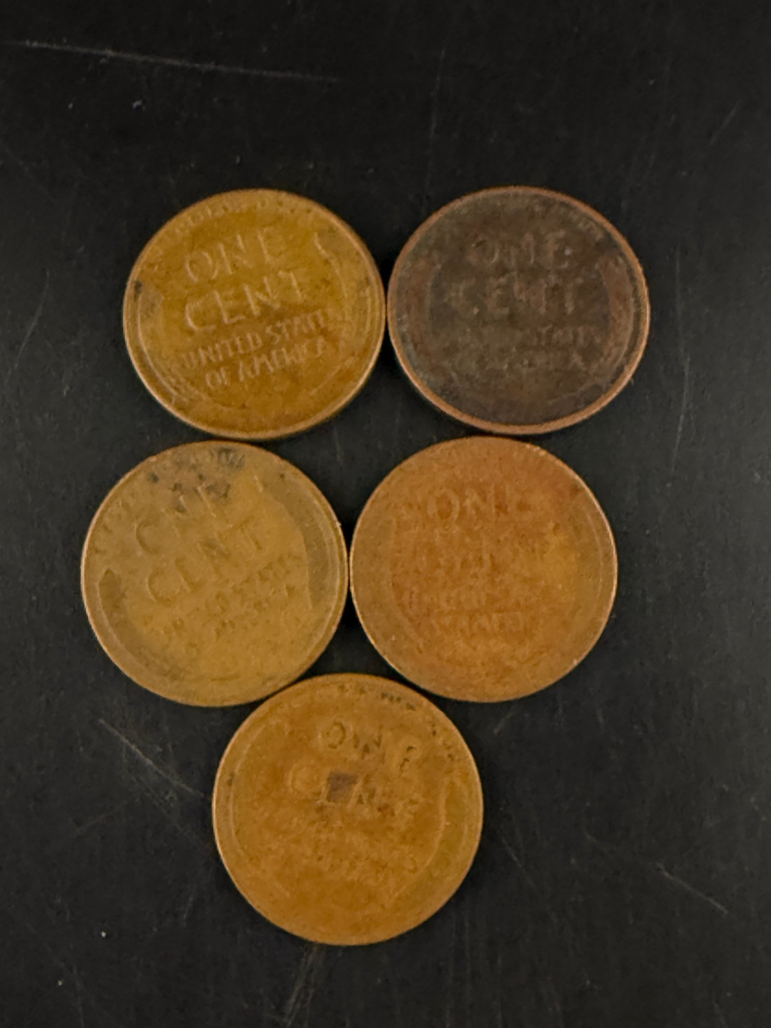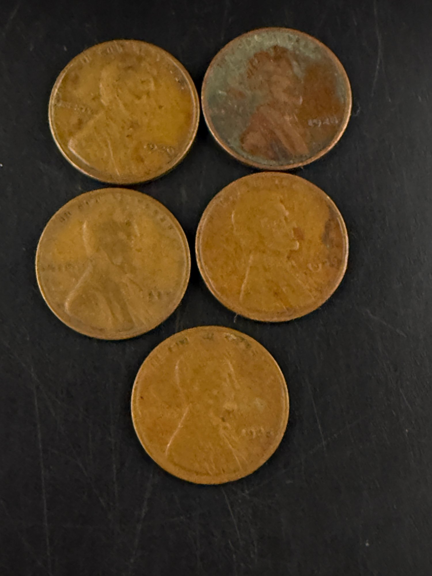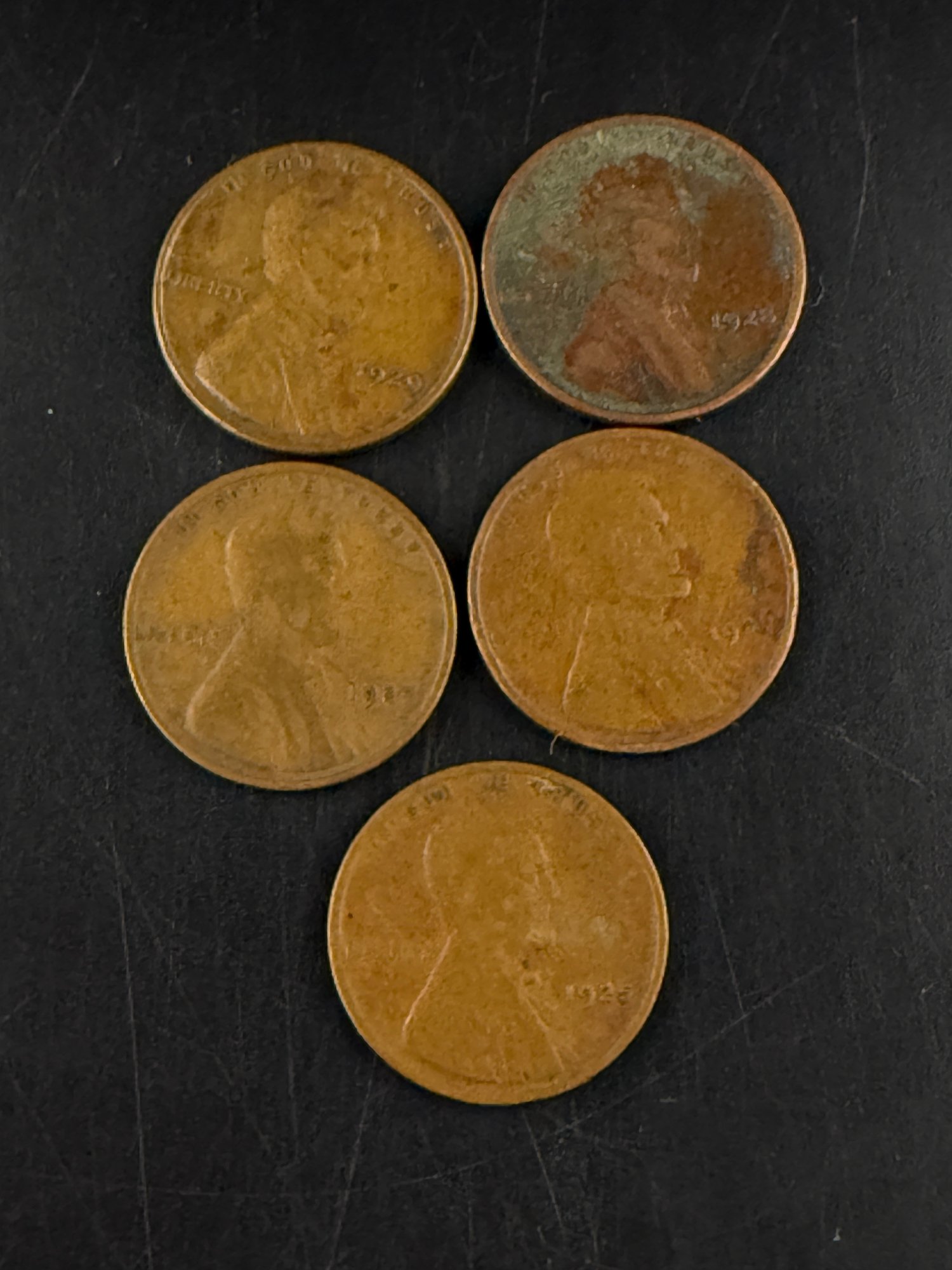 Lot Of 5 Wheat Pennies 1925, 1926, 1927, 1928, 1929